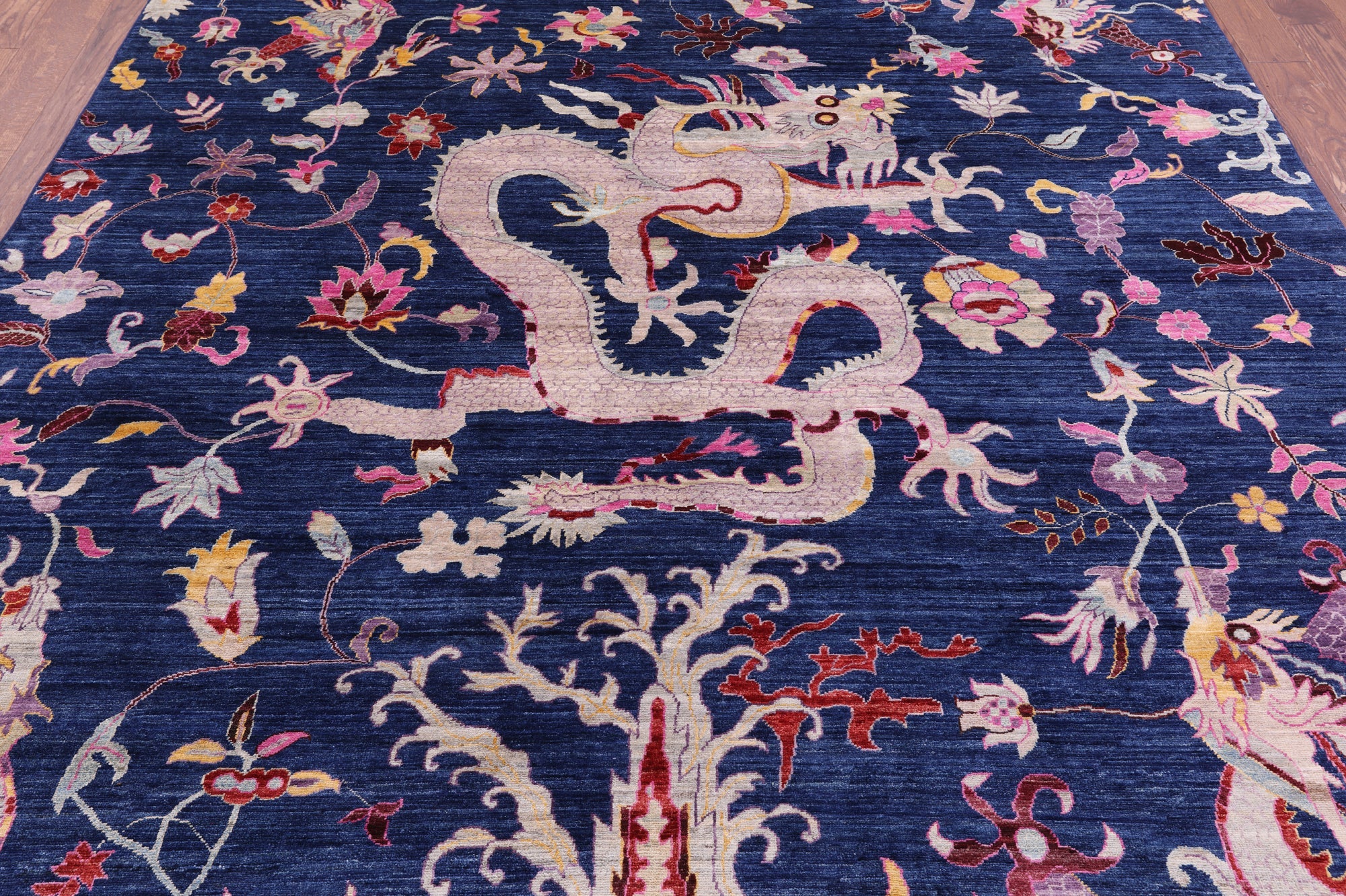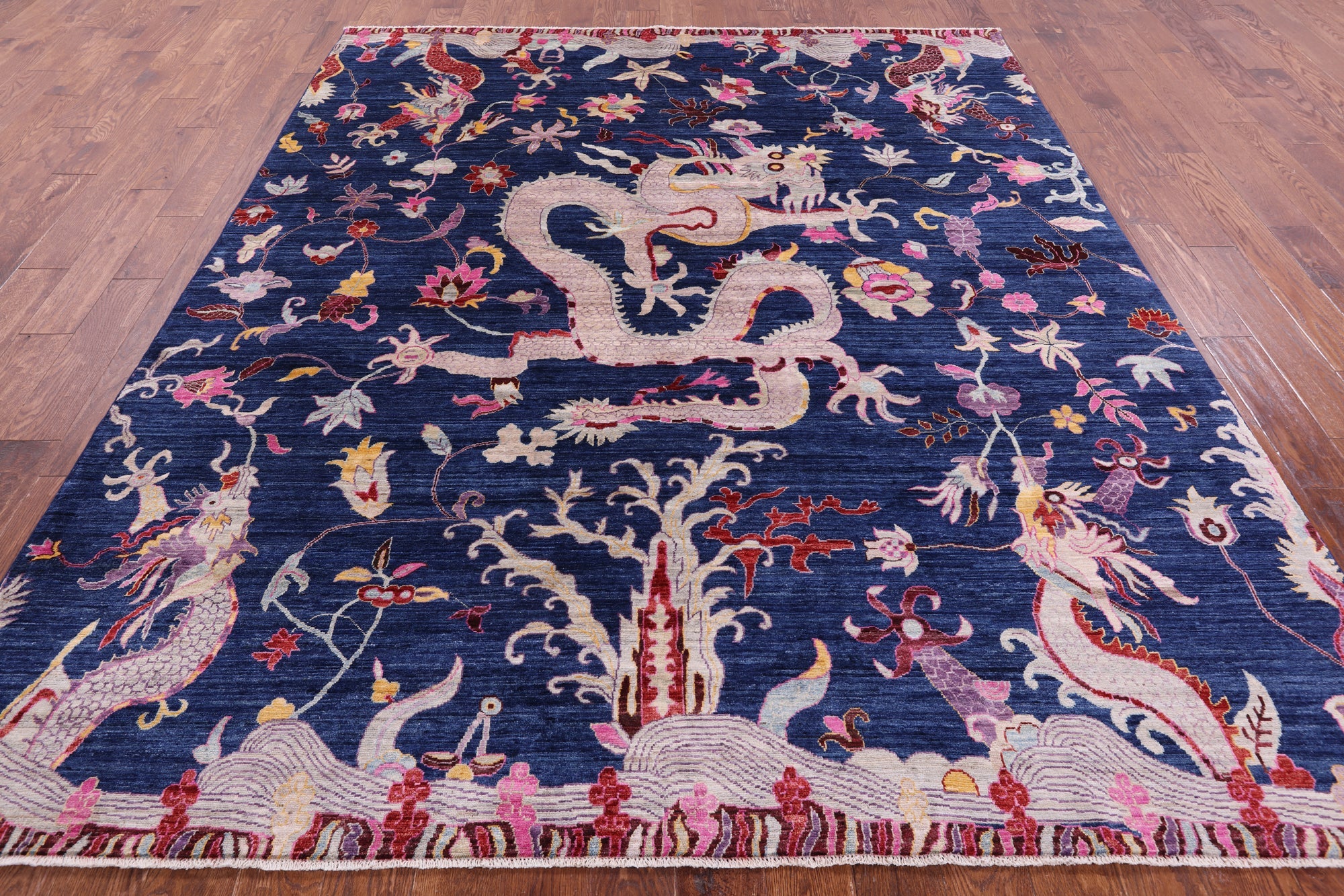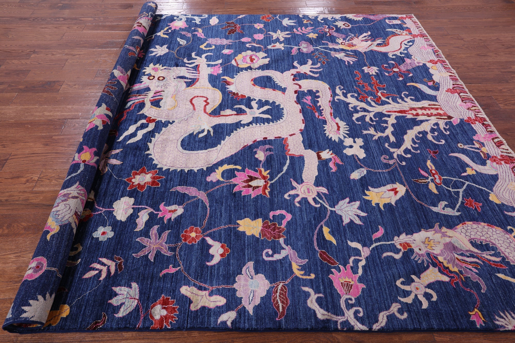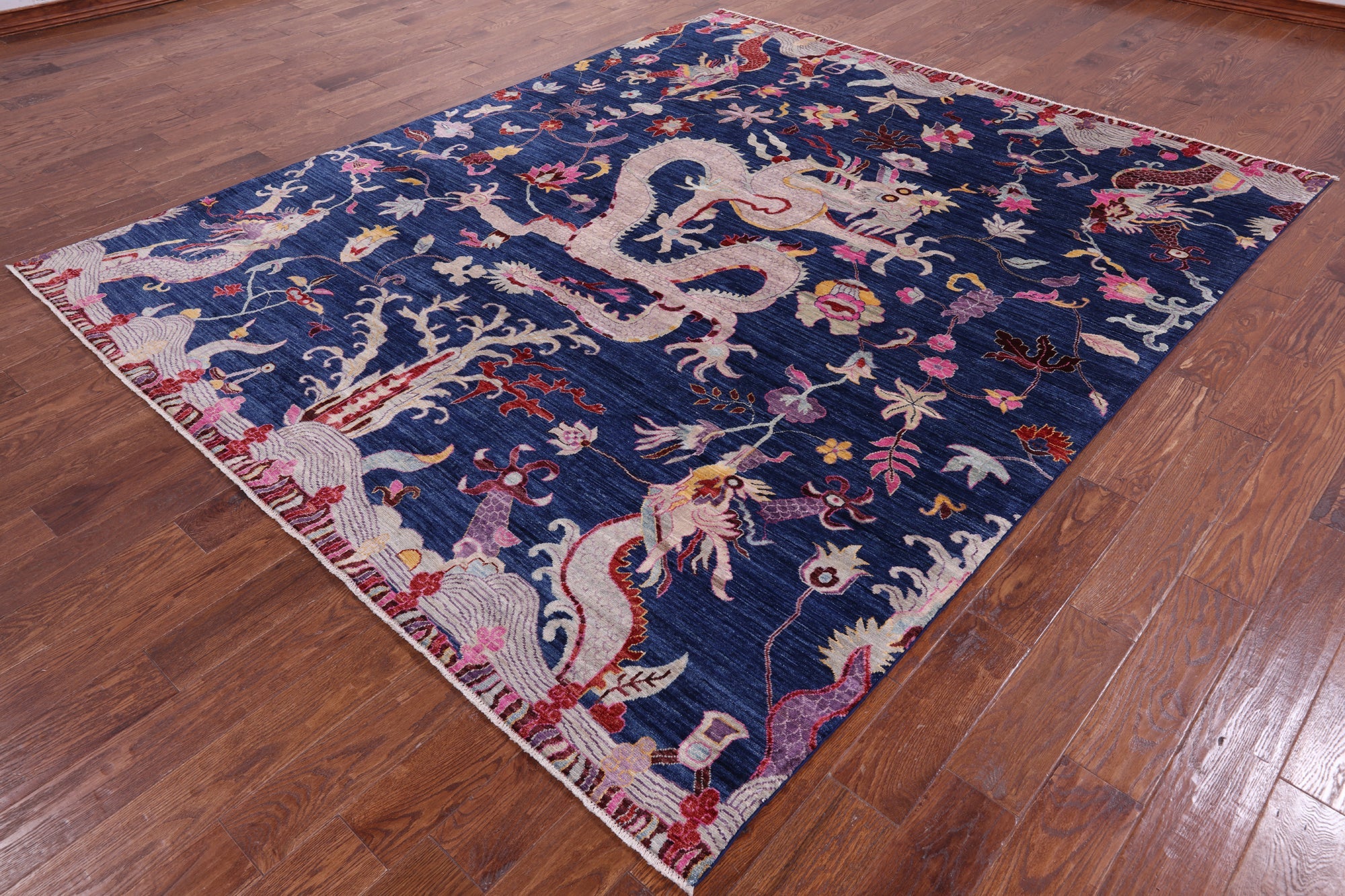 Blue Hand Knotted Dragon Design Wool Rug 8' 0" X 9' 7" - Q12662 is backordered and will ship as soon as it is back in stock.