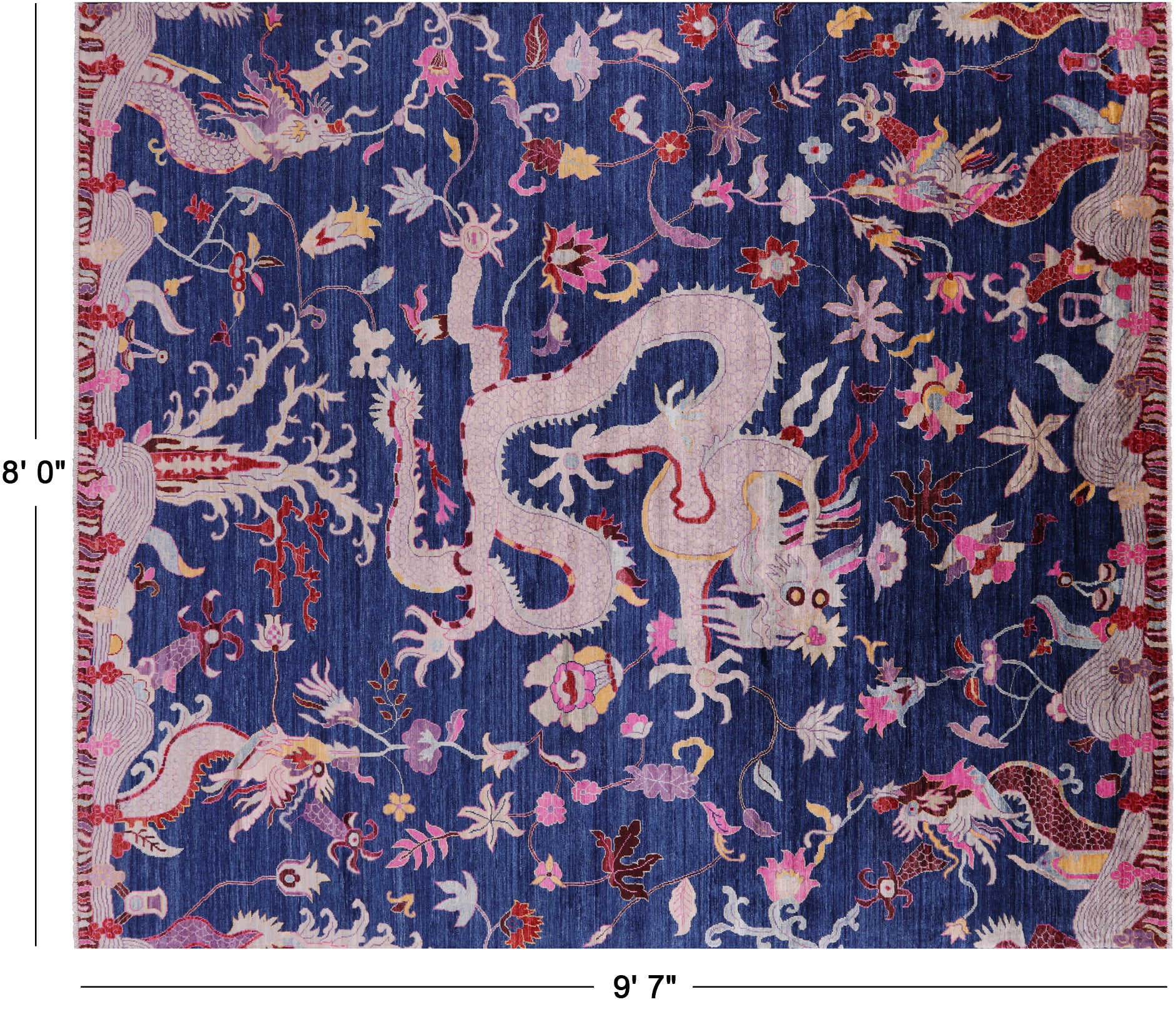 Blue Hand Knotted Dragon Design Wool Rug 8' 0" X 9' 7" - Q12662