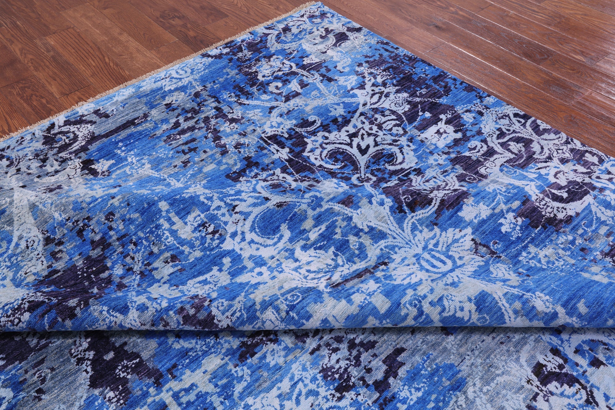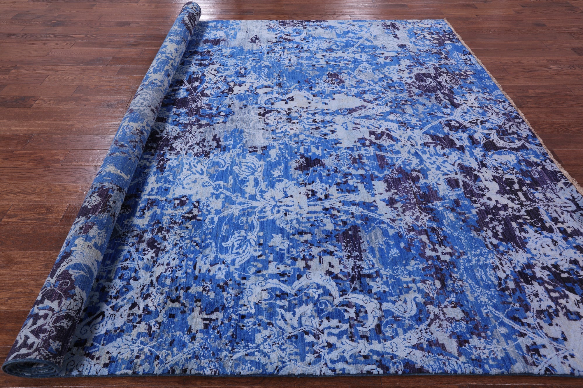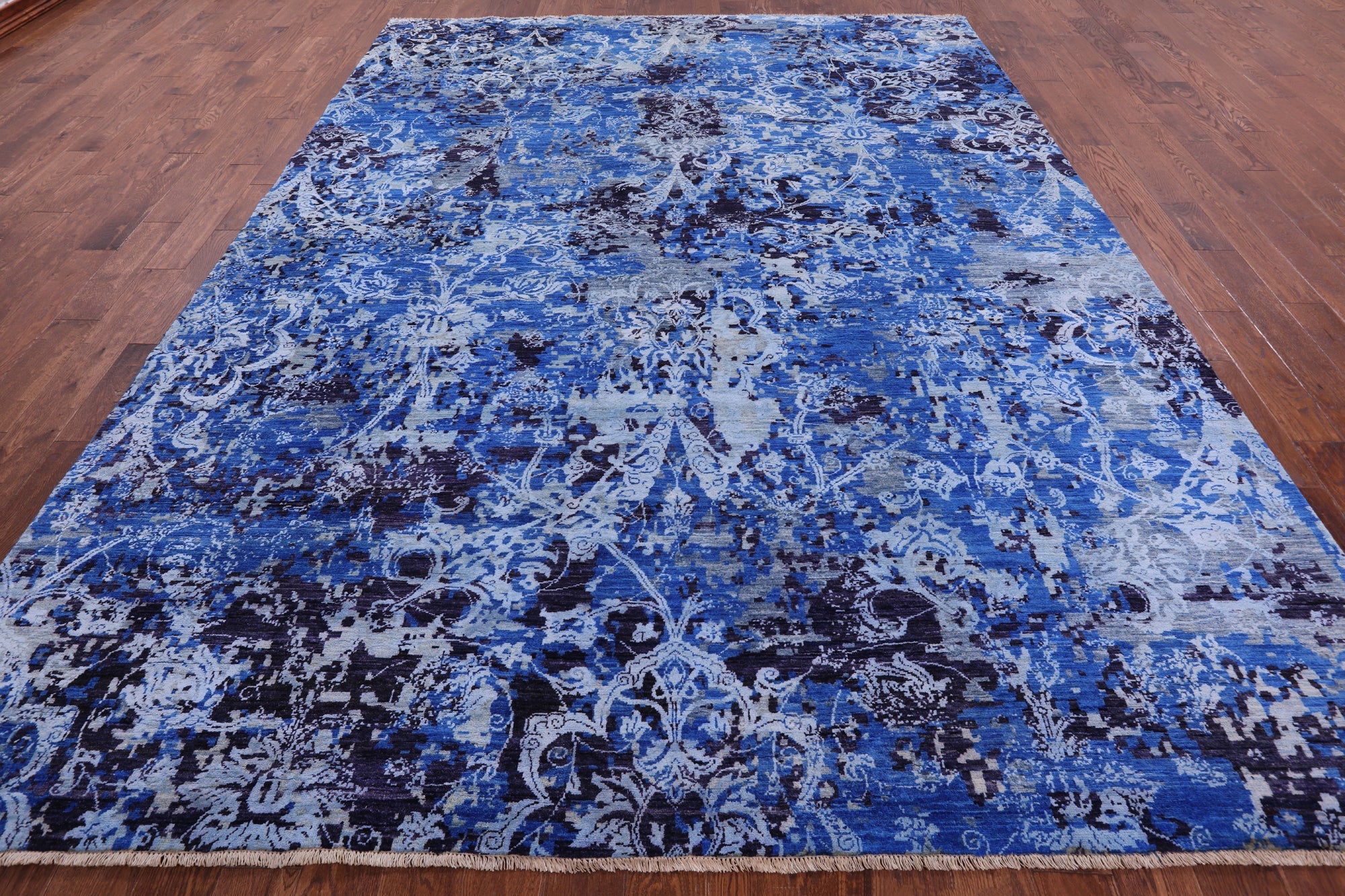 Blue Modern Wool & Silk Hand Knotted Rug 9' 1" X 12' 1" - Q10322 is backordered and will ship as soon as it is back in stock.