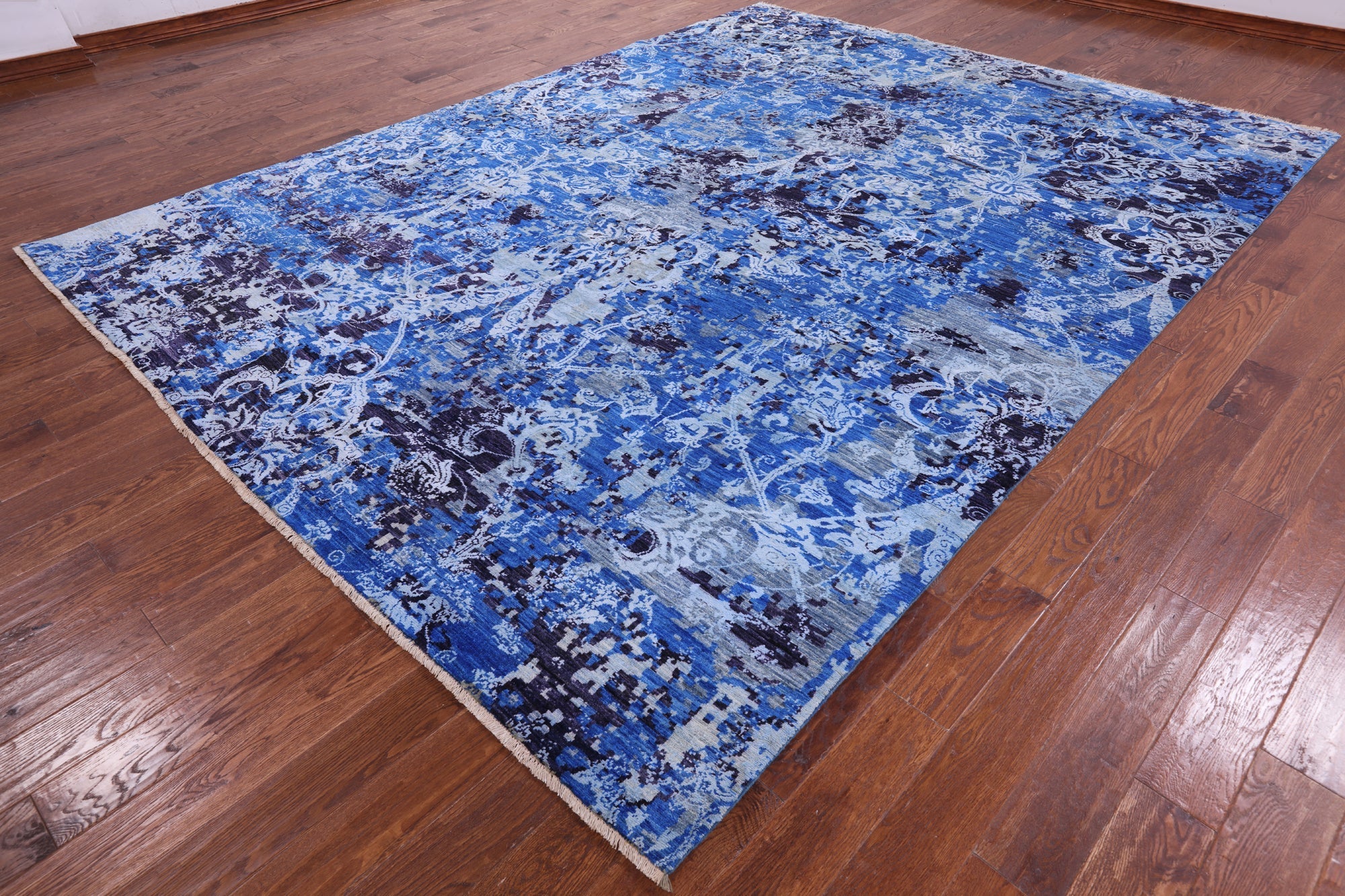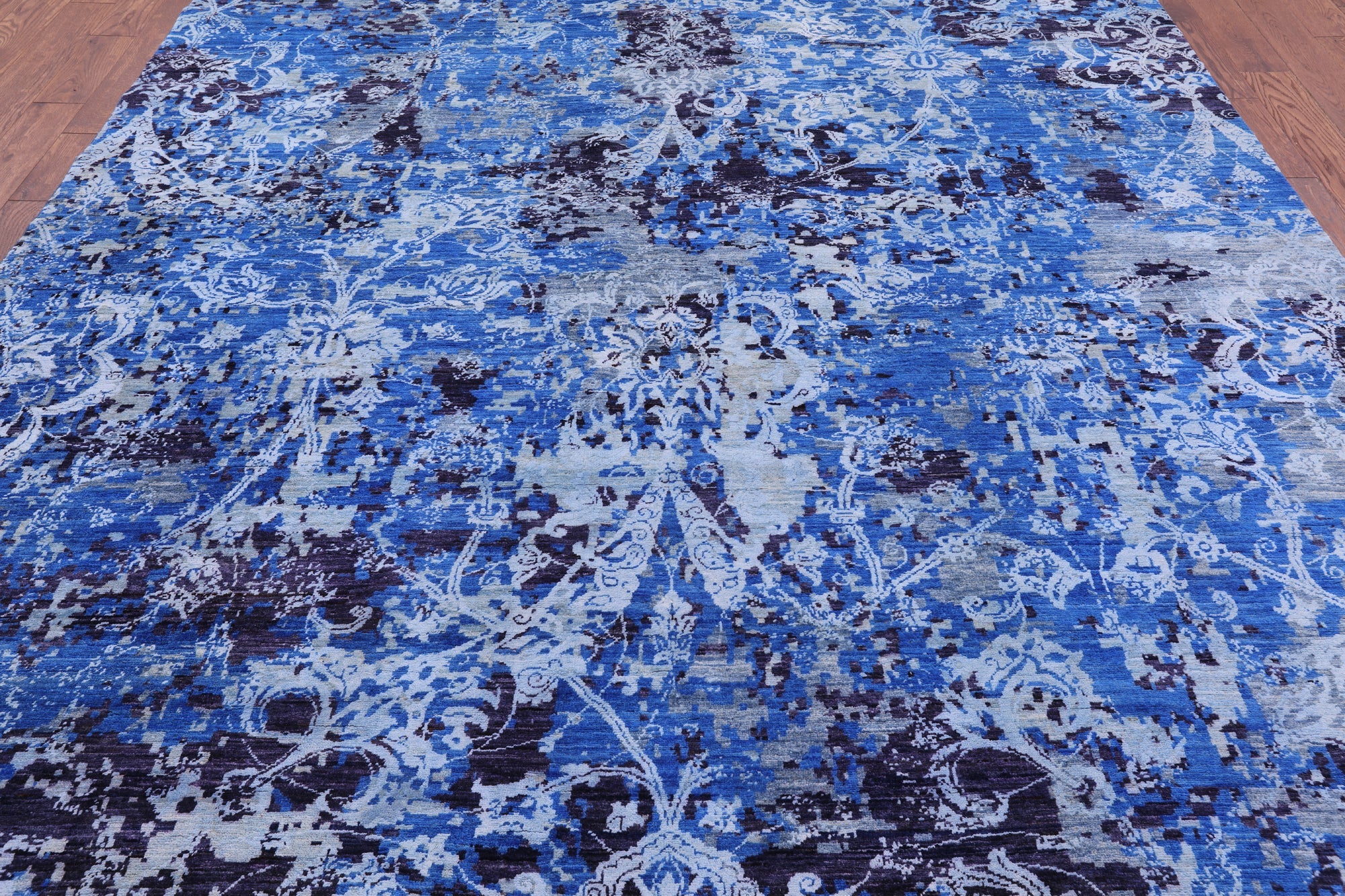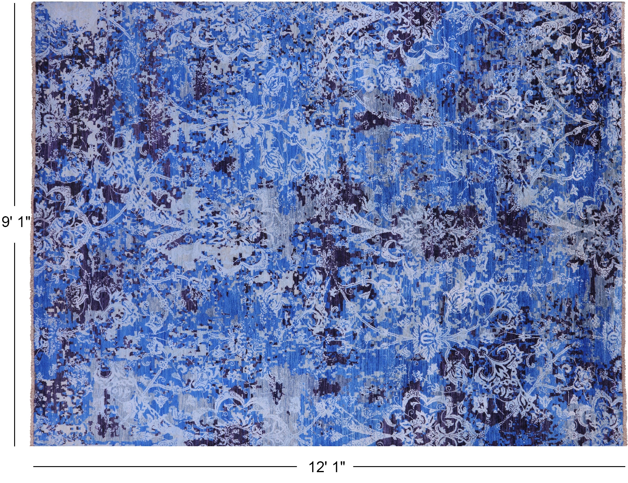 Blue Modern Wool & Silk Hand Knotted Rug 9' 1" X 12' 1" - Q10322