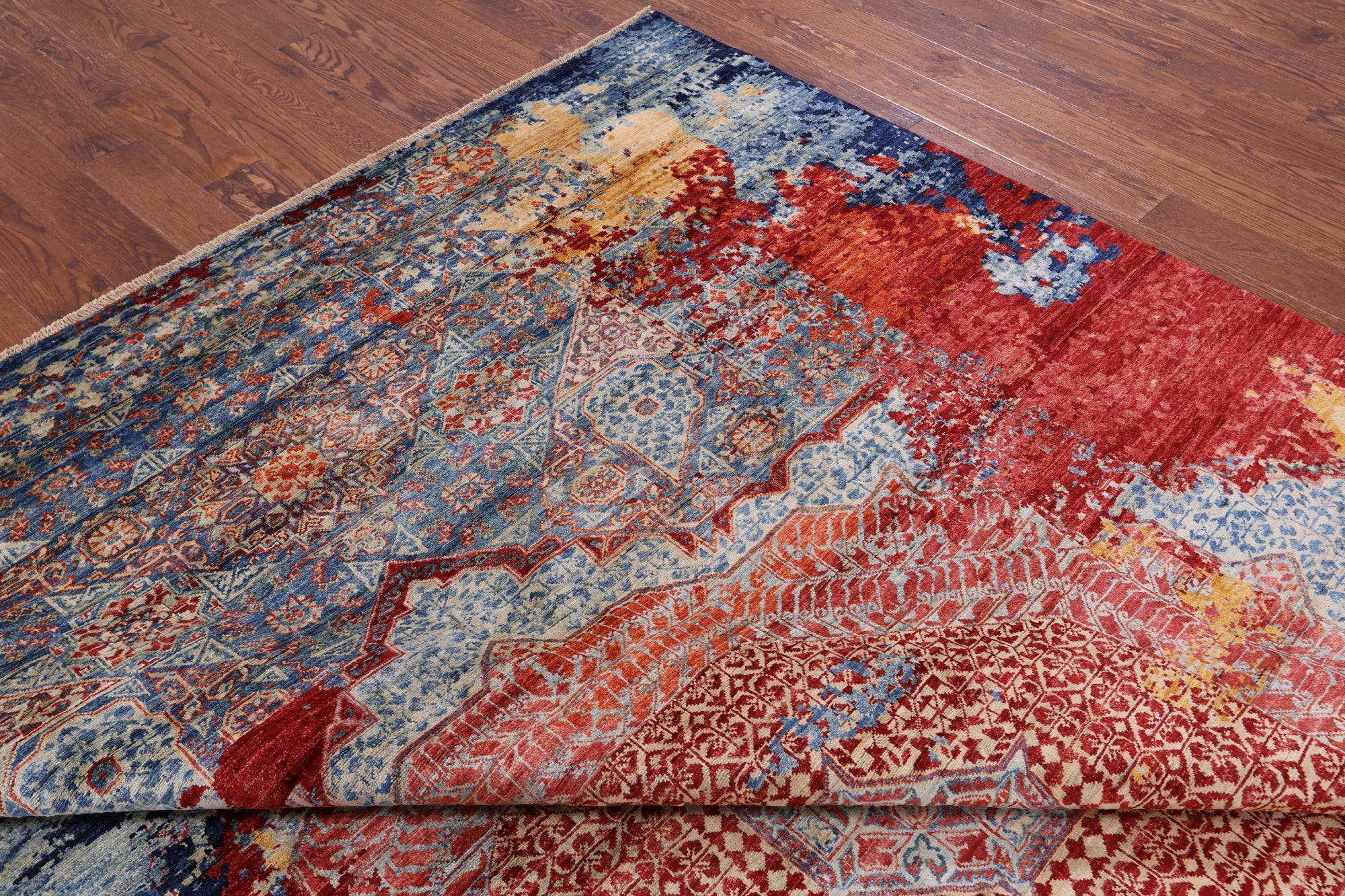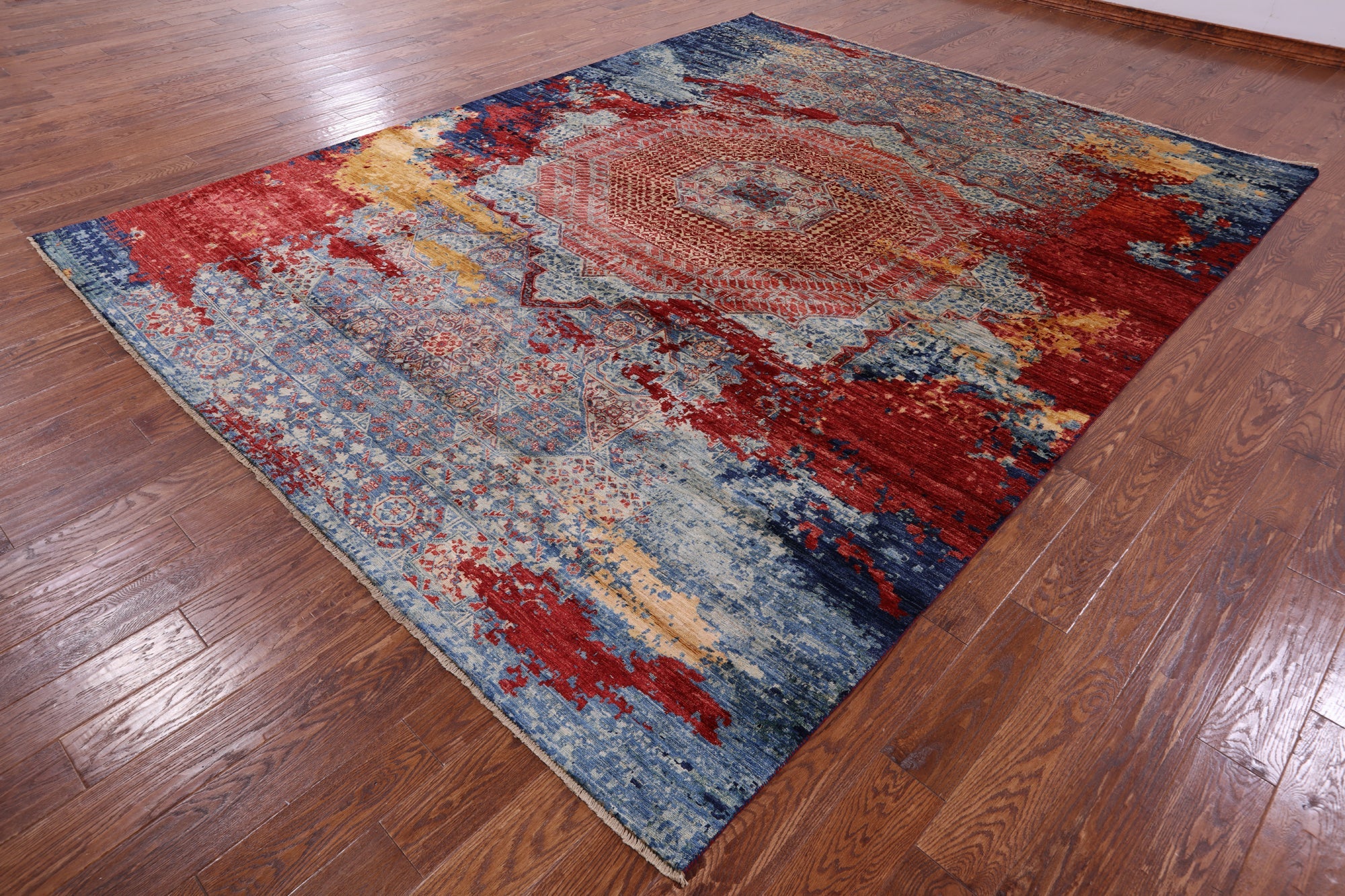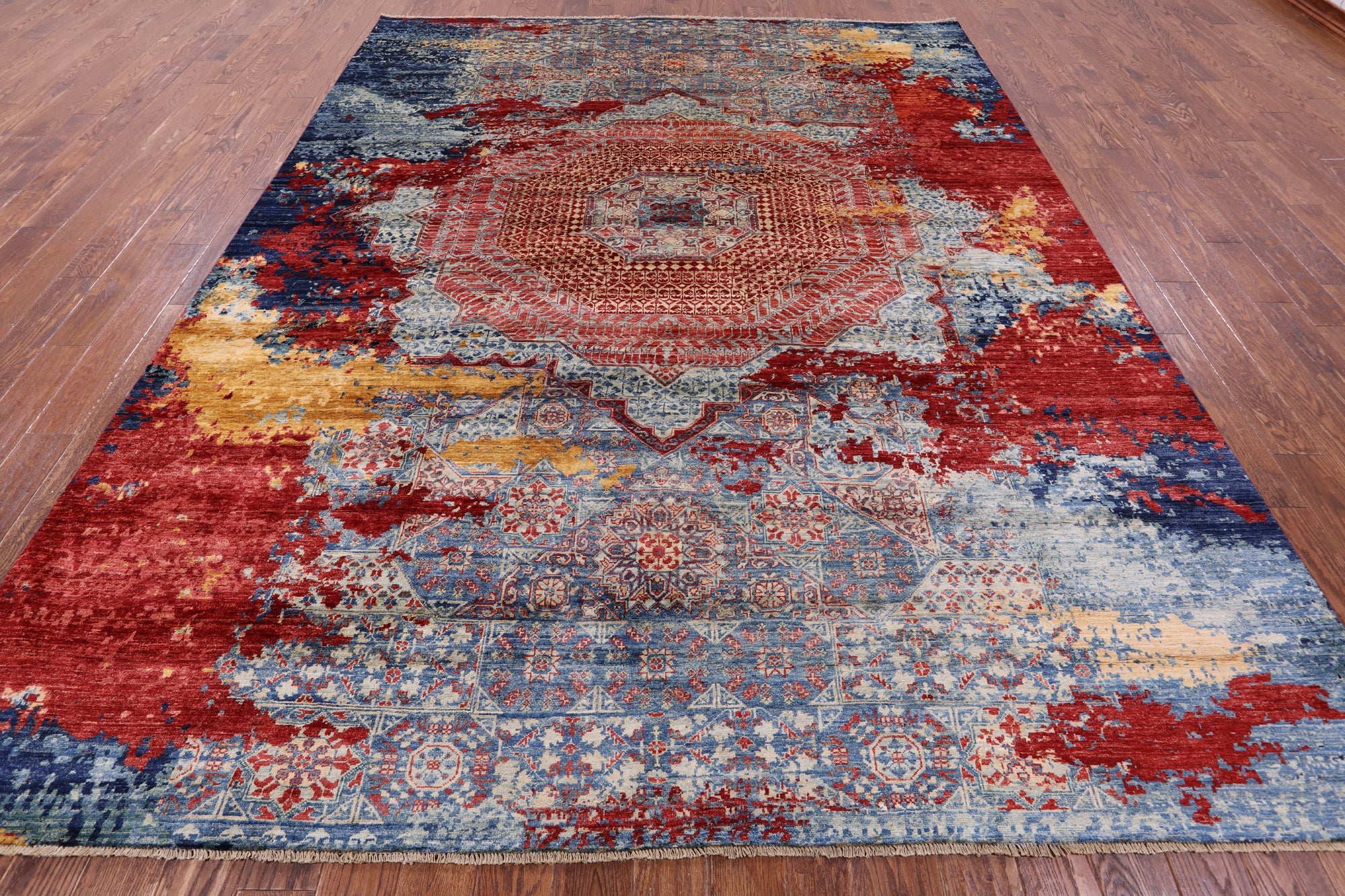 Originating in Cairo, Egypt, Mamluk rugs are prominent for their amazing ability to have extremely symmetrical designs. This creates a splendid mirror-like effect. The medallions can be seen as interlacing stars and polygons, with other geometric patterns surrounding. The colors commonly used for these traditional rugs are blues, rich reds, ivory, and greens.