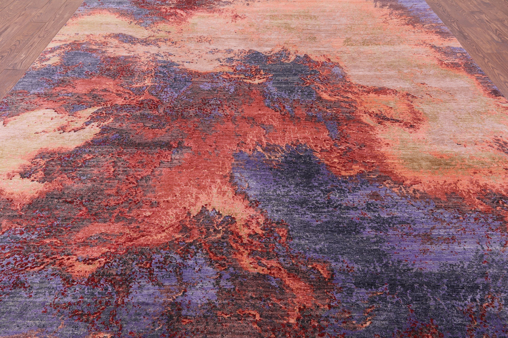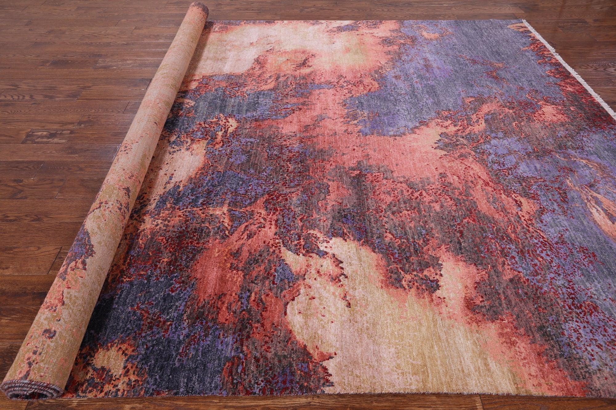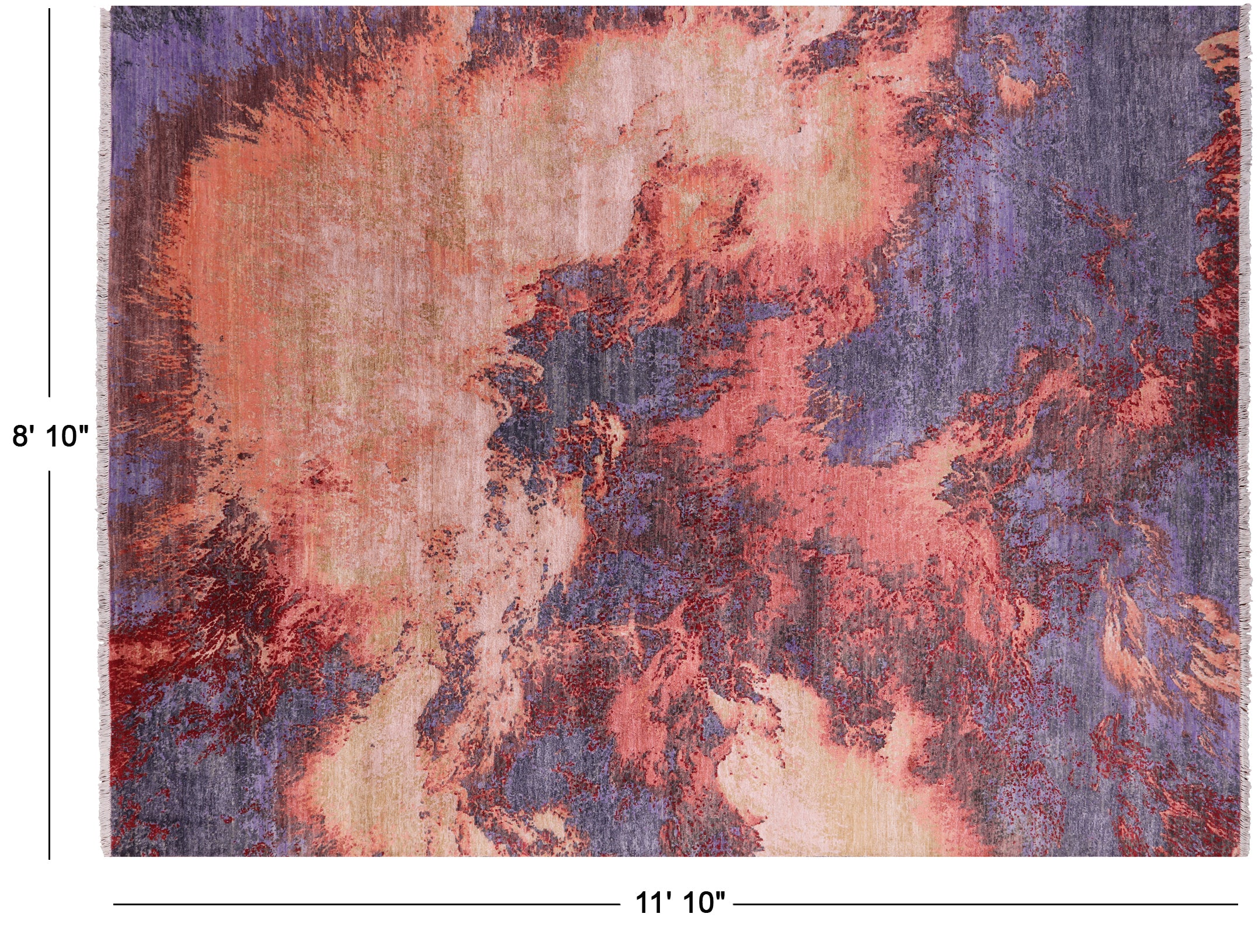 Contemporary Hand Knotted Wool & Silk Area Rug 8' 10" X 11' 10" - Q4110