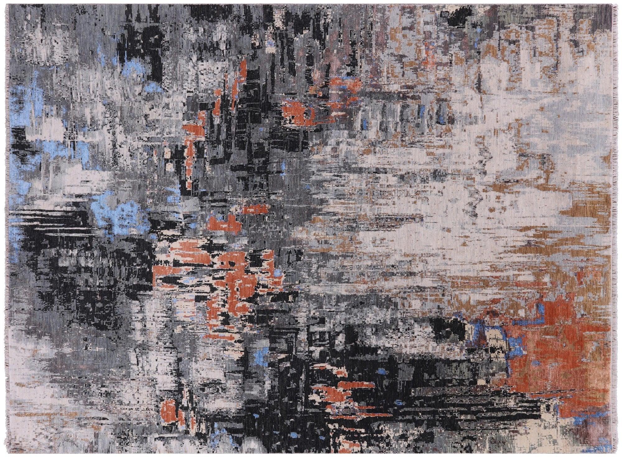 9' 0" X 12' 0" Contemporary Hand Knotted Wool & Silk Rug - Q3845