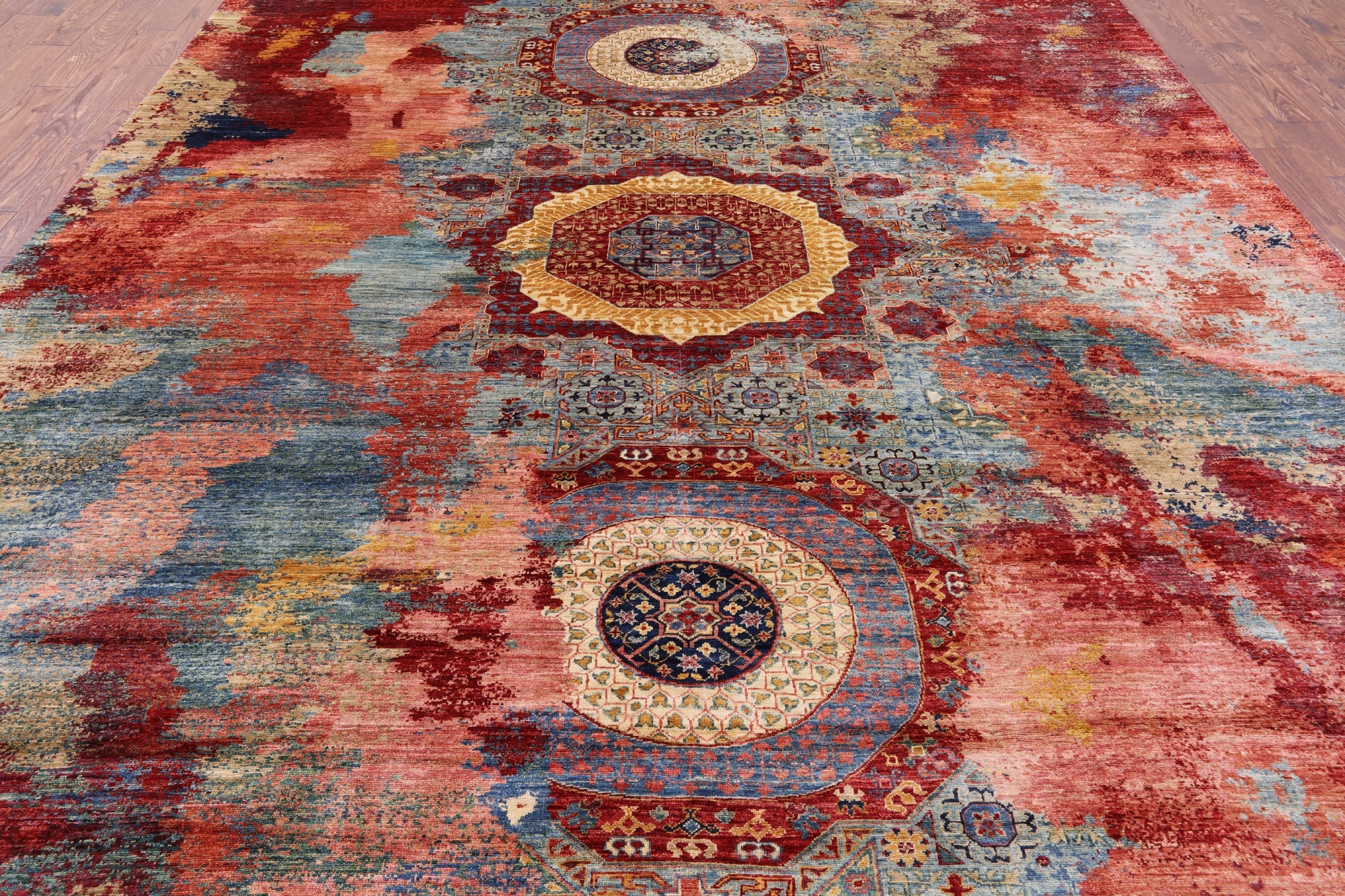 Originating in Cairo, Egypt, Mamluk rugs are prominent for their amazing ability to have extremely symmetrical designs. This creates a splendid mirror-like effect. The medallions can be seen as interlacing stars and polygons, with other geometric patterns surrounding. The colors commonly used for these traditional rugs are blues, rich reds, ivory, and greens.