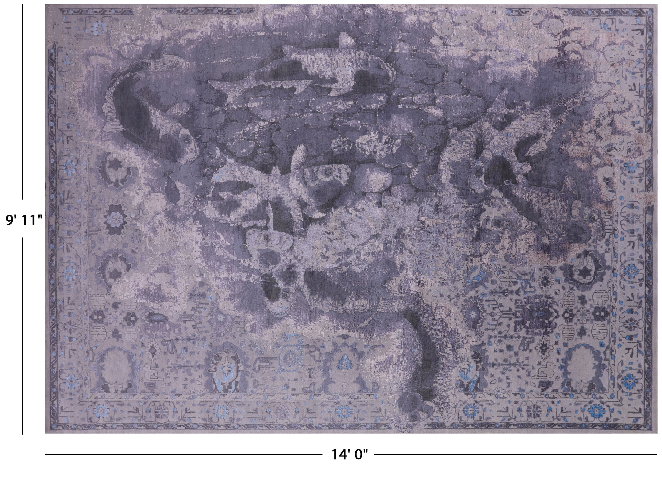 Fish Design Wool & Silk Modern Hand Knotted Rug 9' 11" X 14' 0"- Q7245