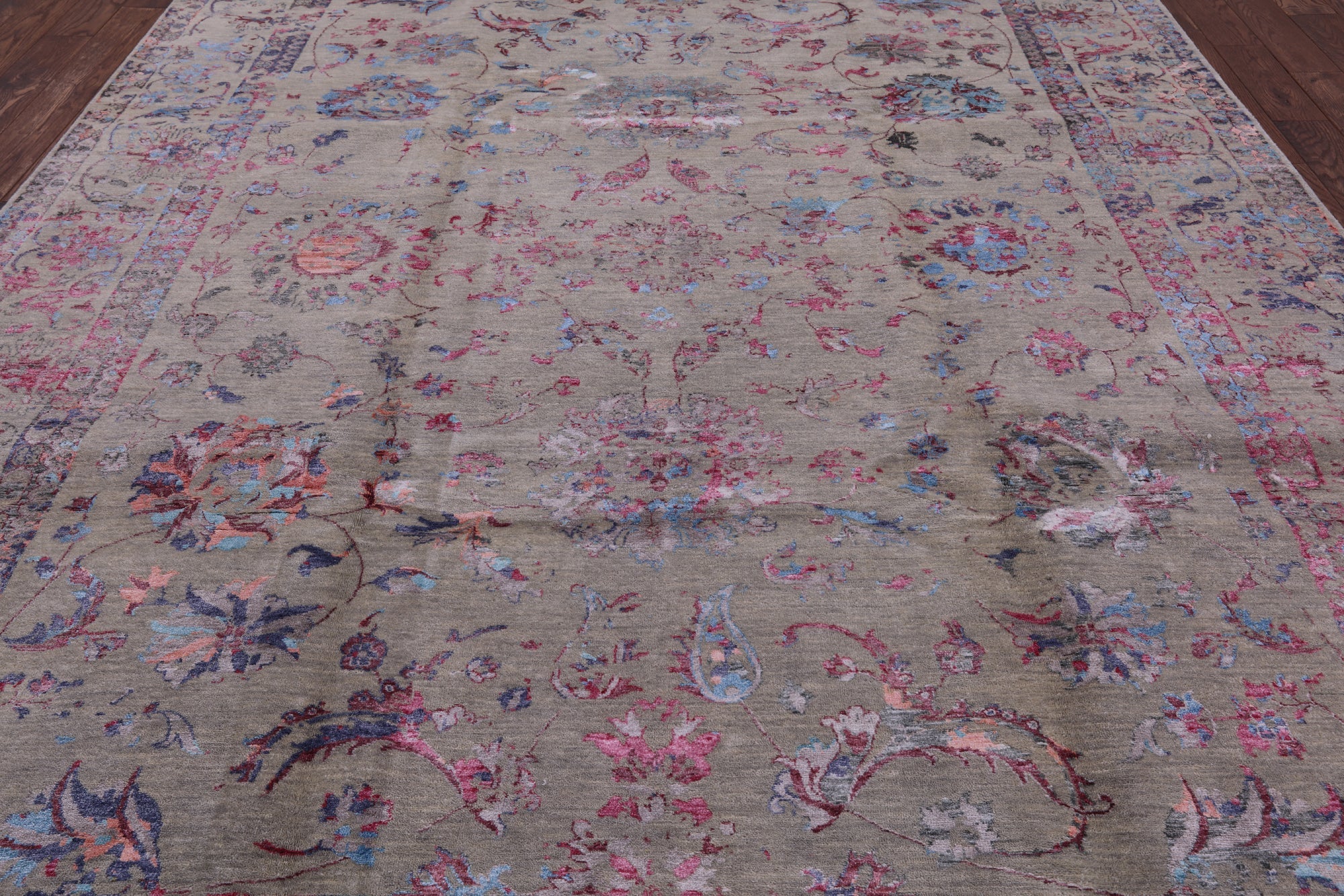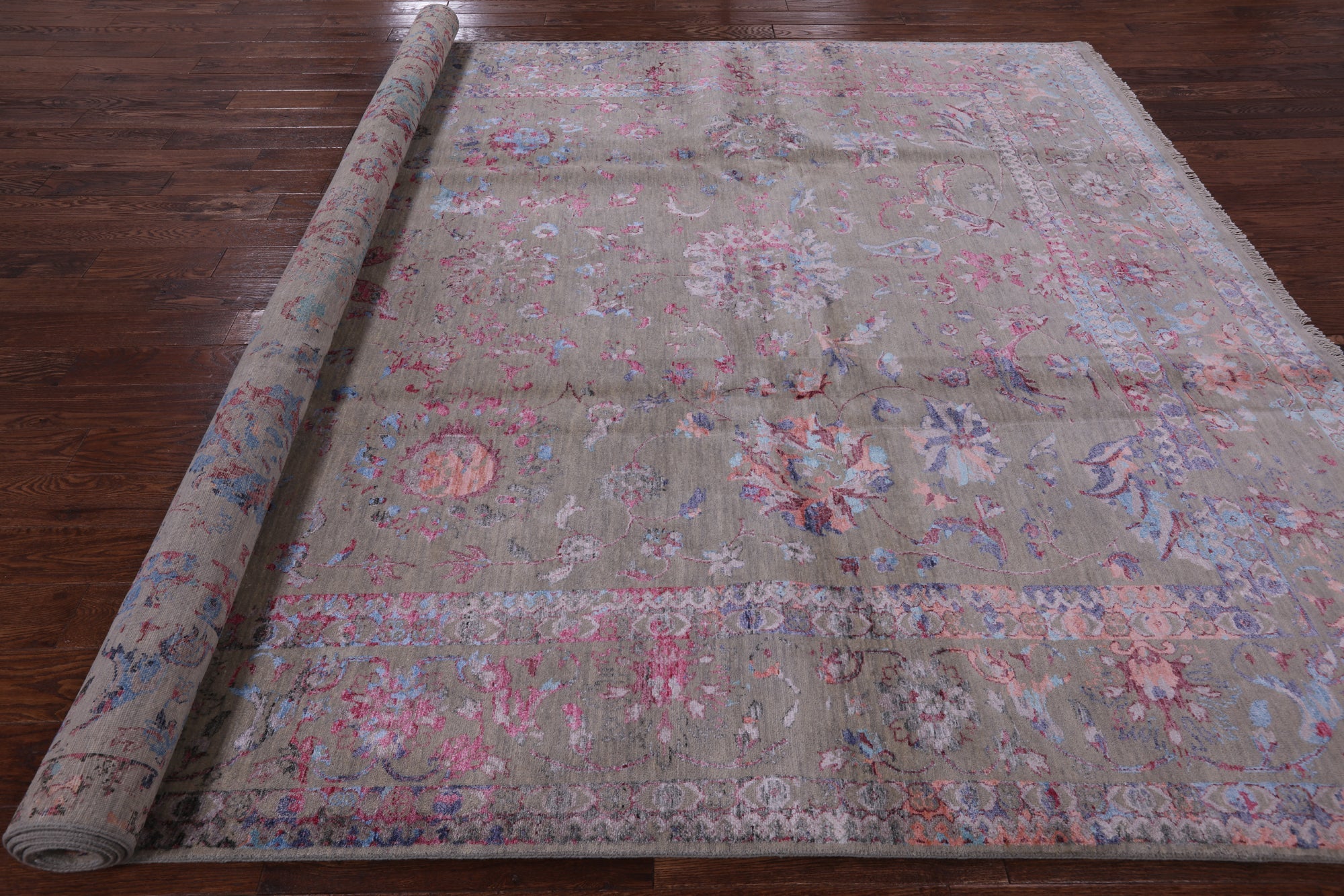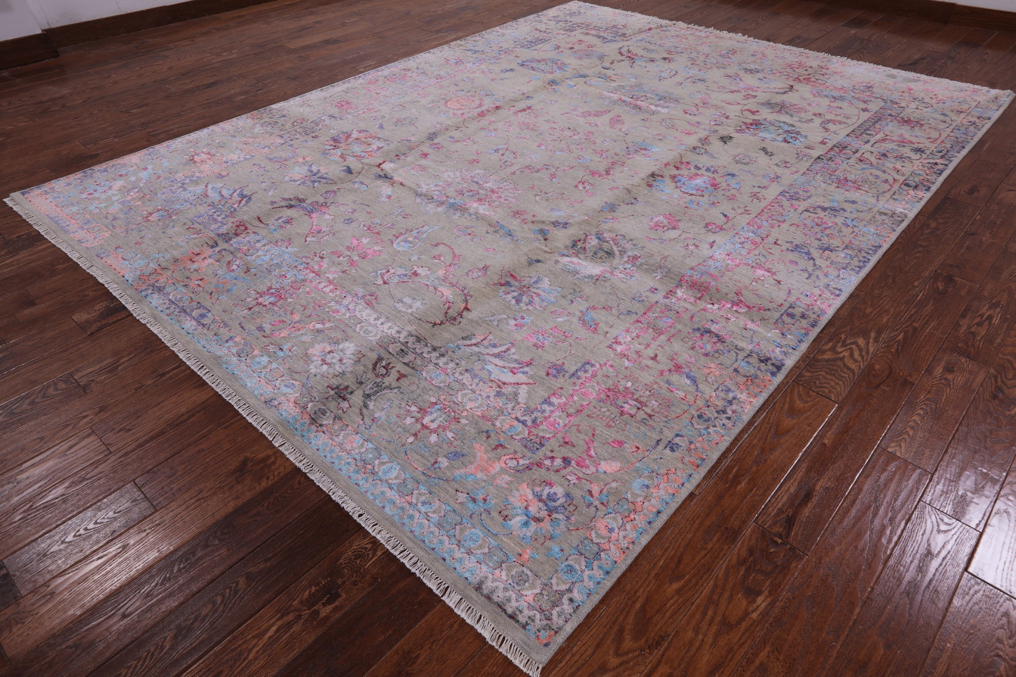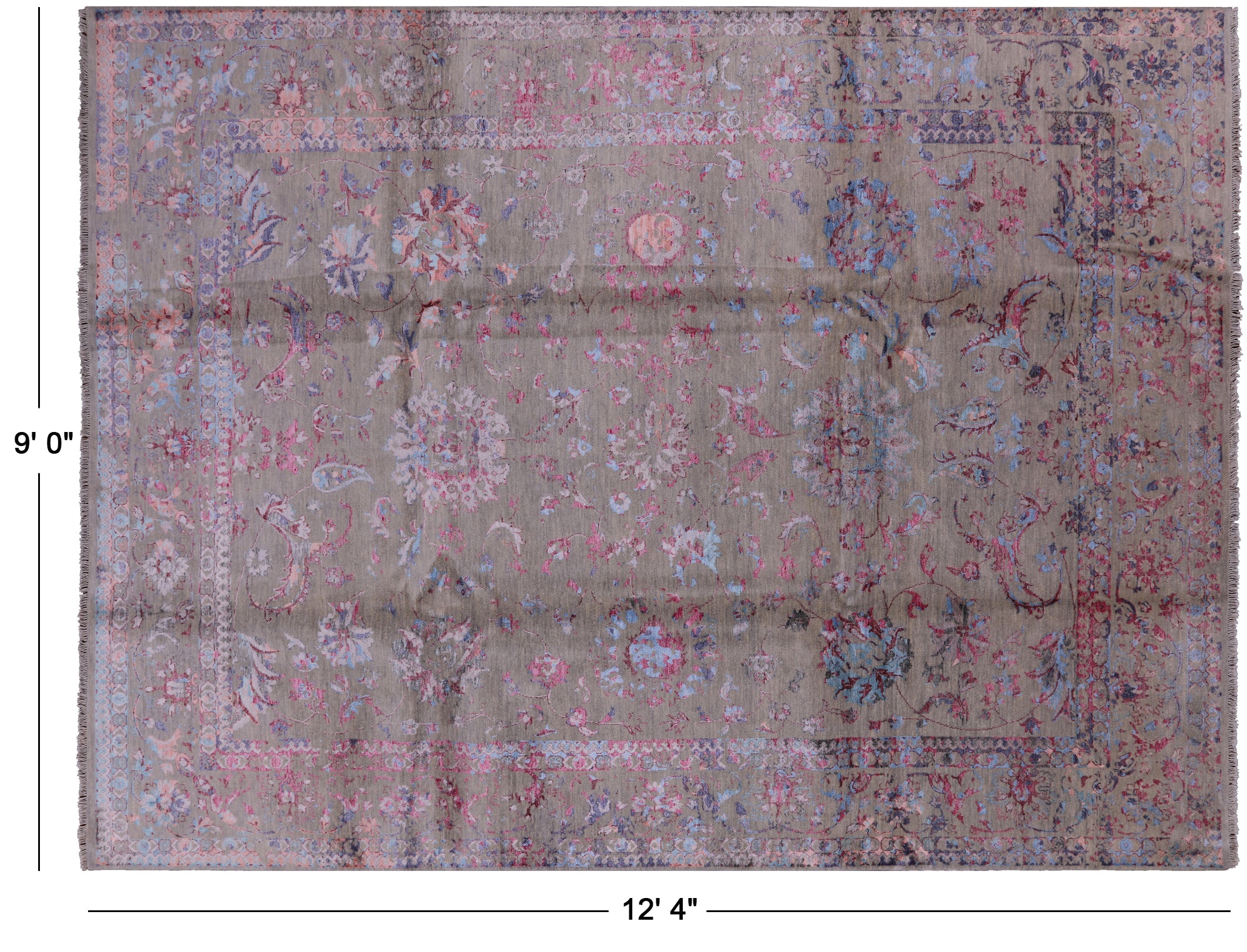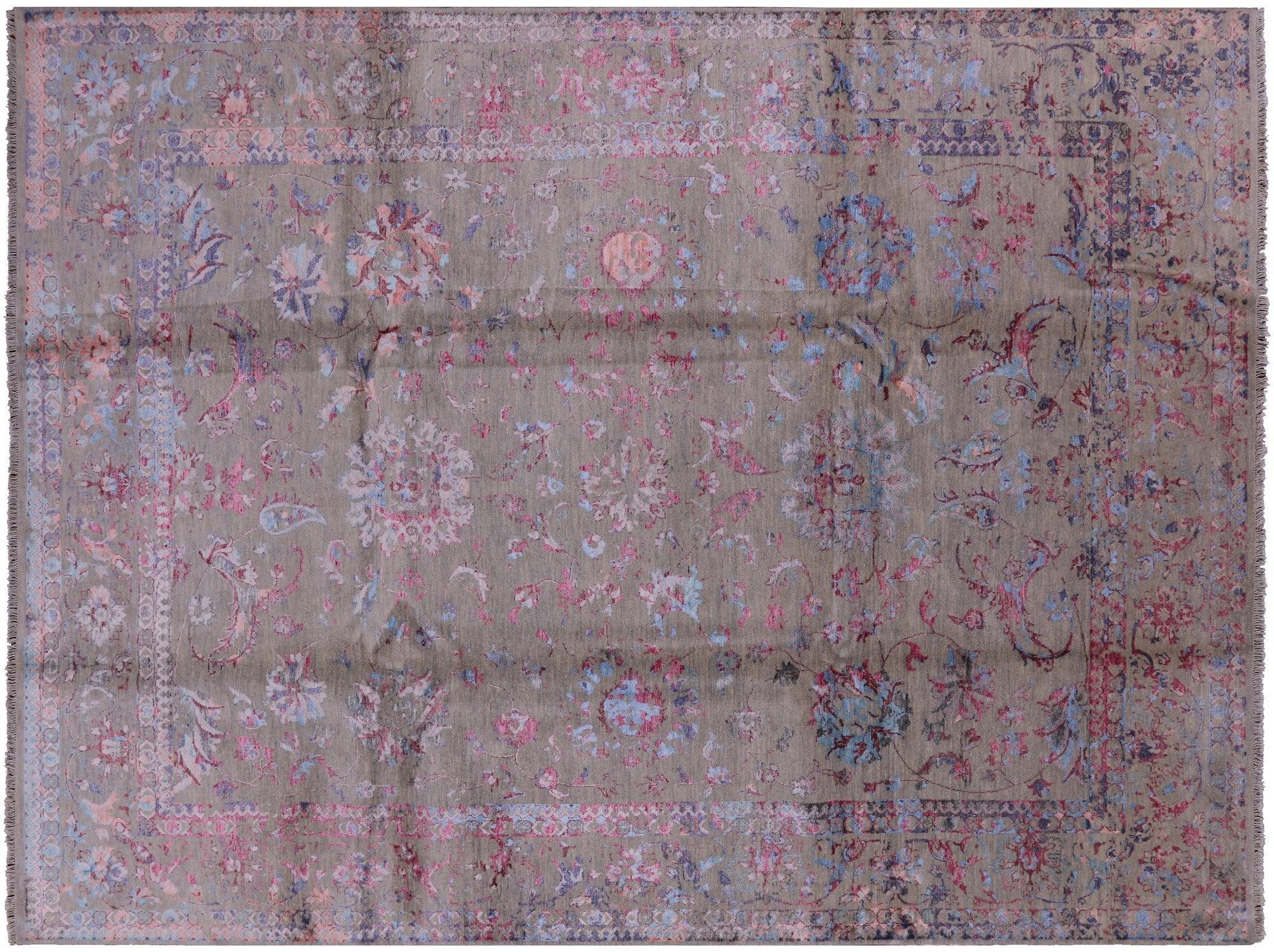 Grey 9' 0" X 12' 4" Hand Knotted Persian Wool & Silk Rug - P8195