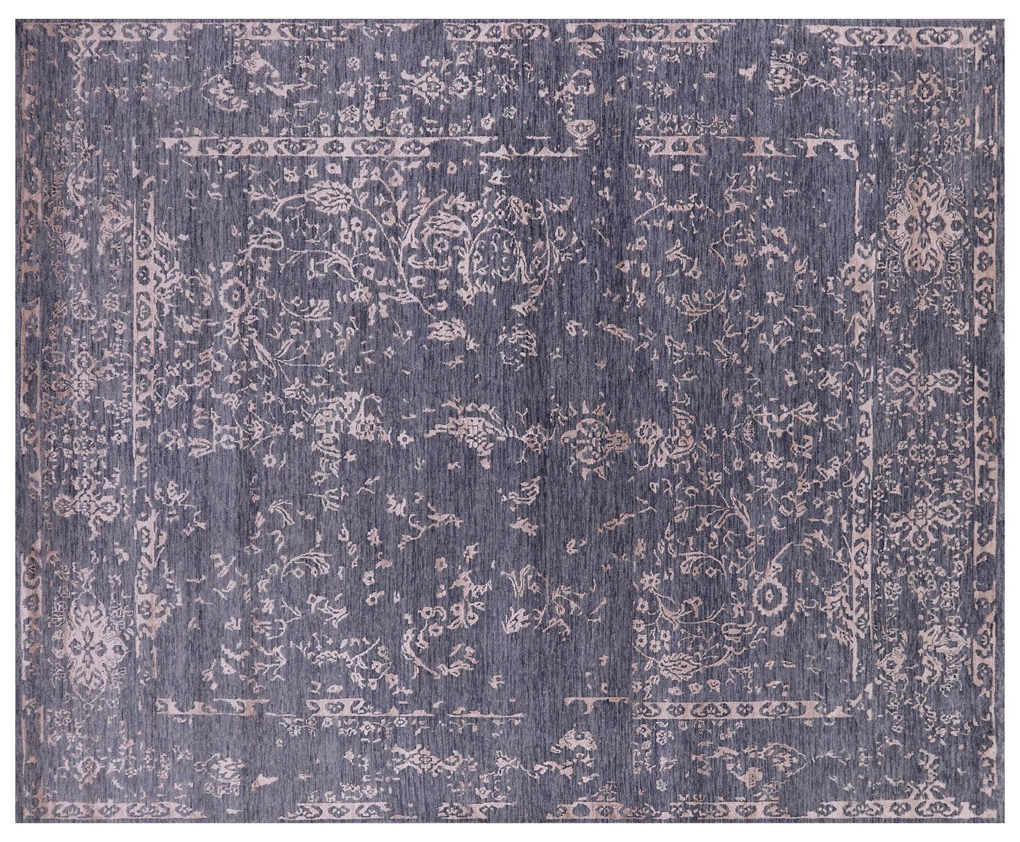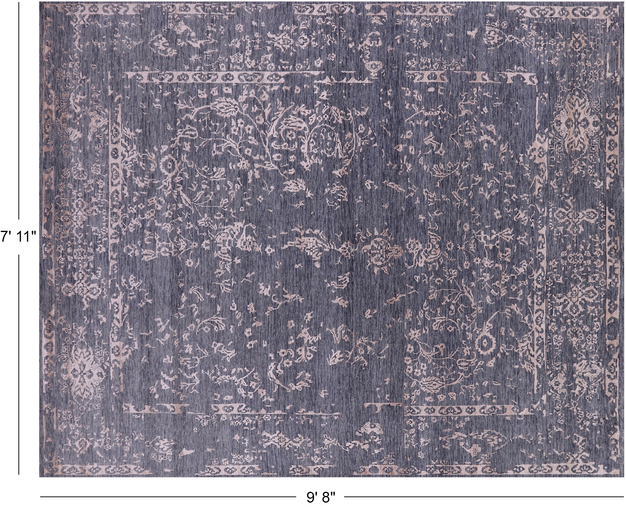 Grey 7' 11" X 9' 8" Hand-Knotted Persian Wool & Silk Rug - Q7048