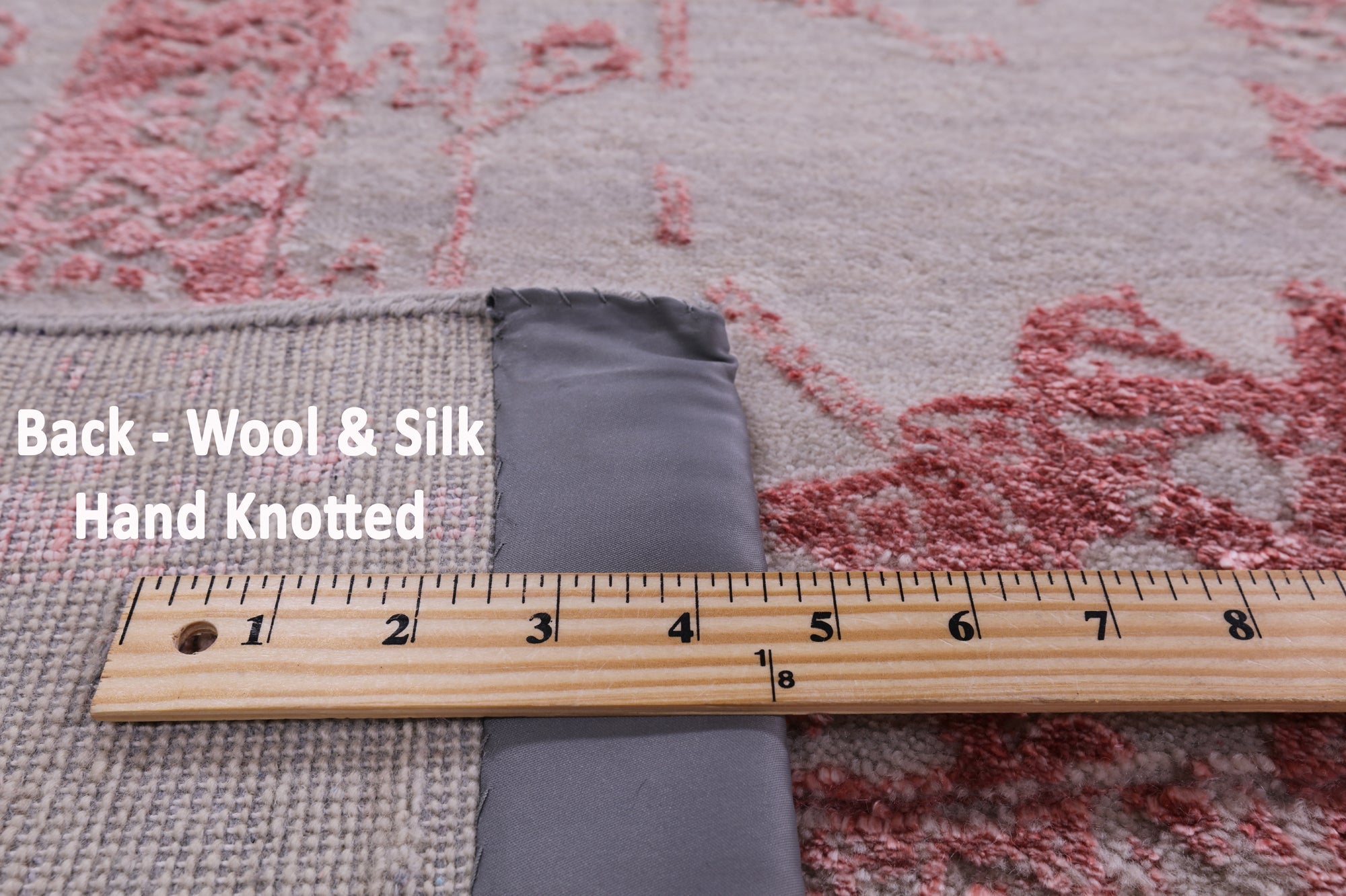Grey Hand Knotted Wool & Silk Persian Tabriz Rug 10' 0" X 13' 11" - Q6289