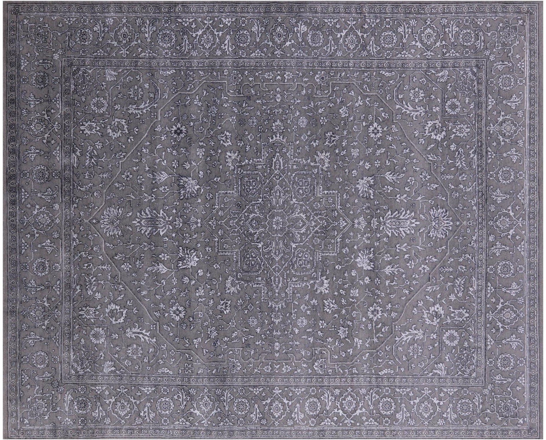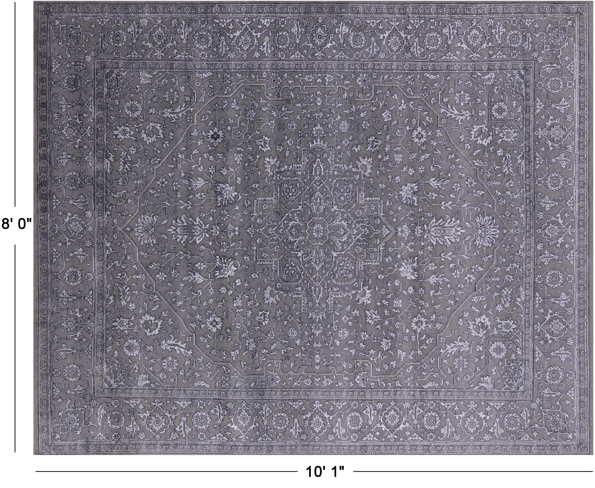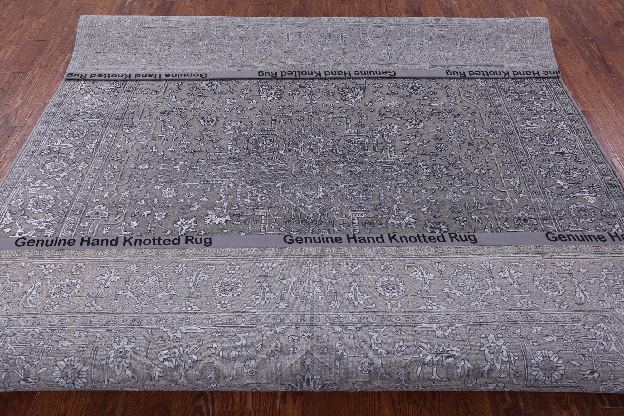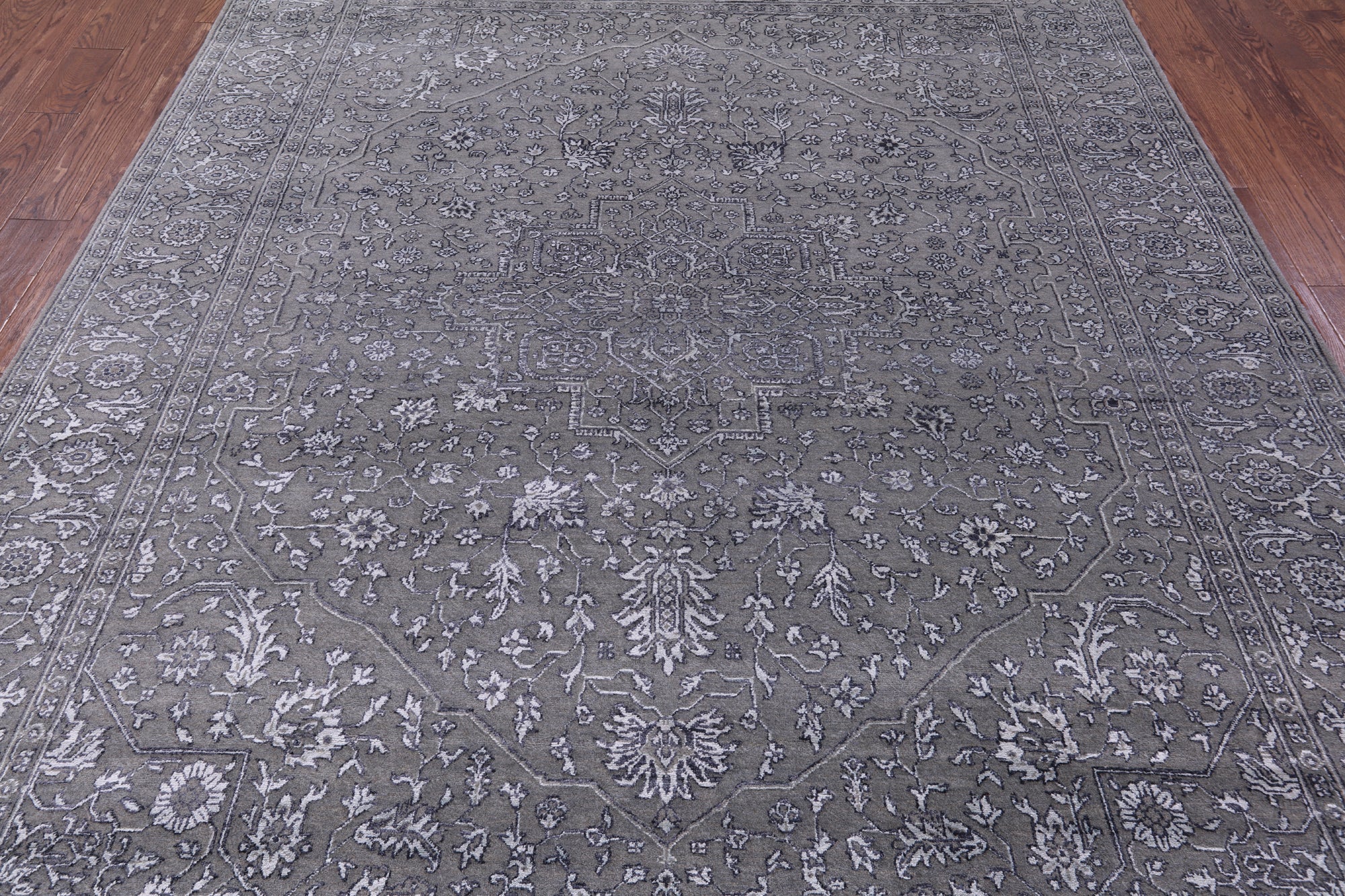 Grey 8' 0" X 10' 1" Handmade Persian Heriz Serapi Wool & Silk Rug - Q15522