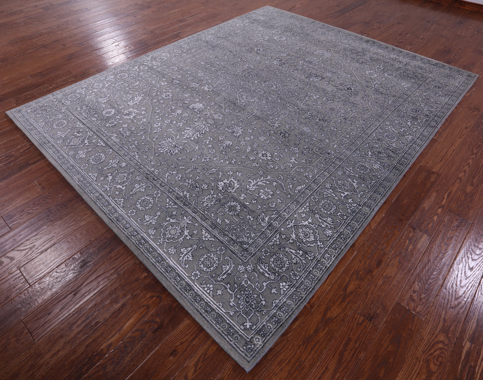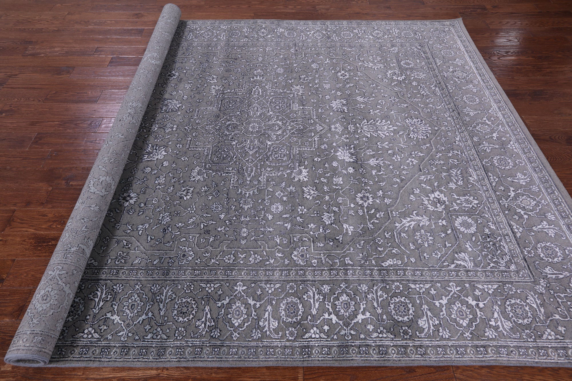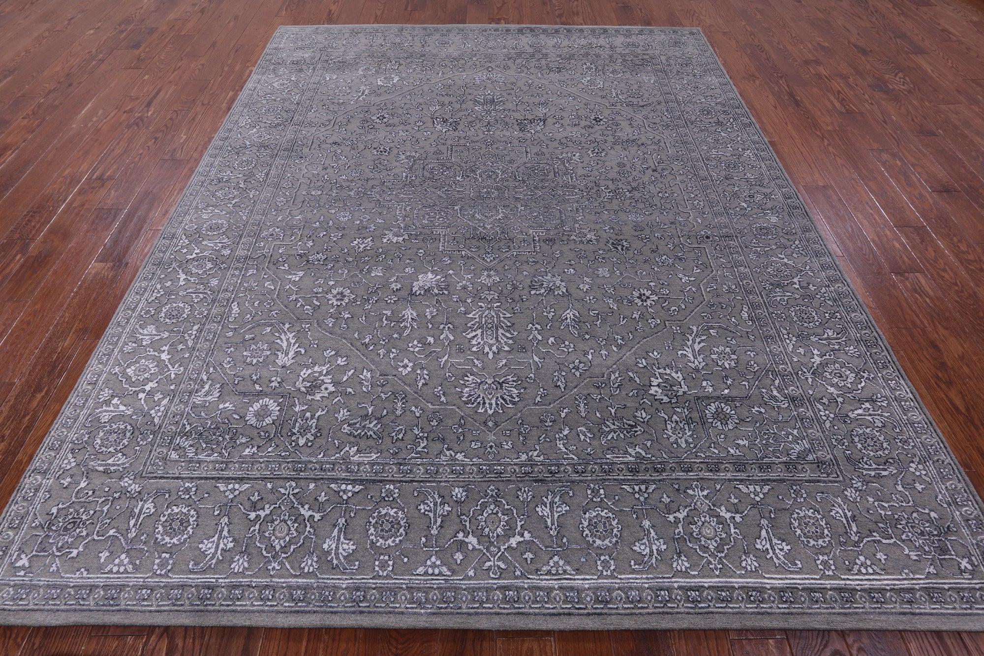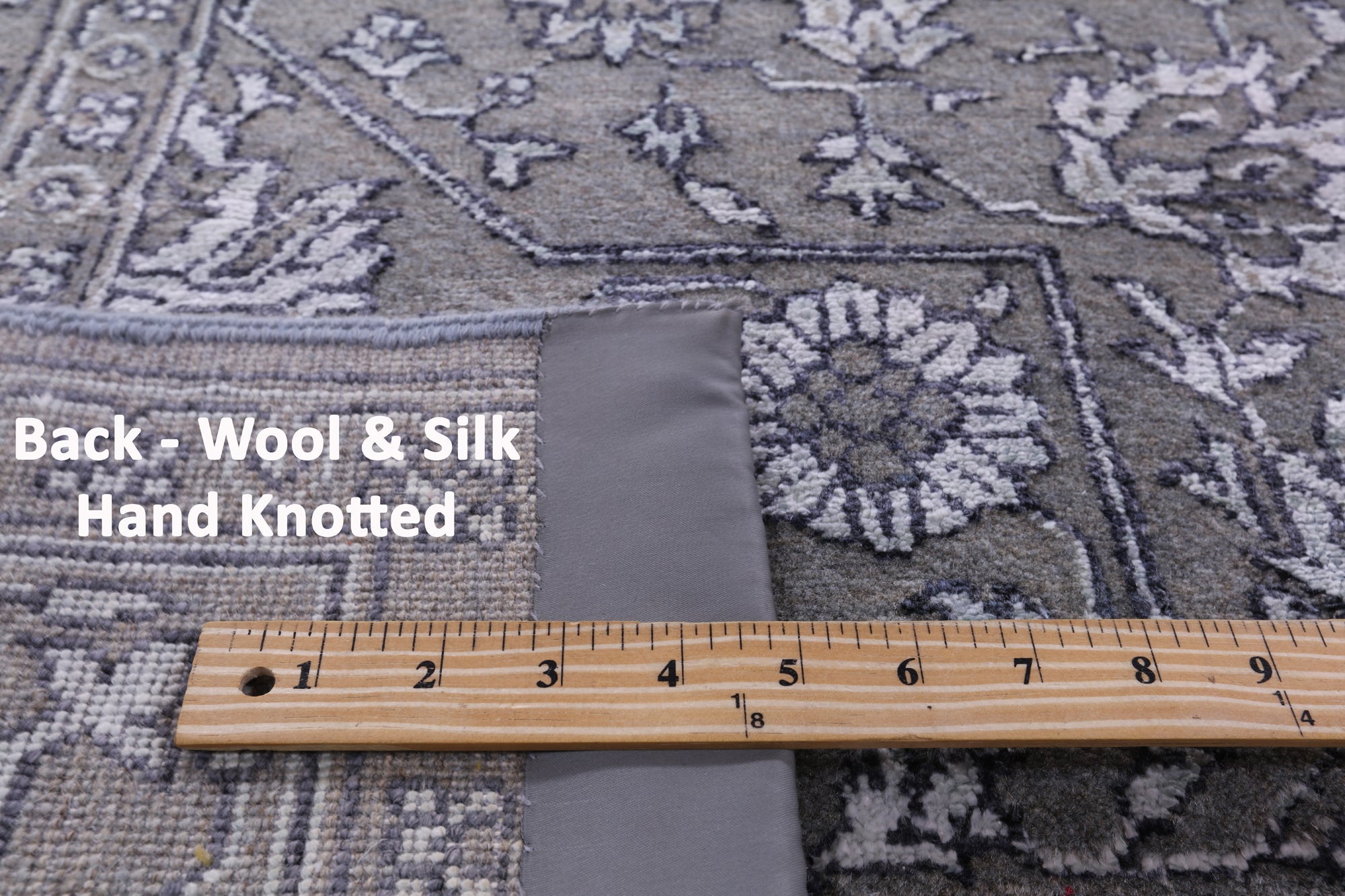 Grey 8' 0" X 10' 1" Handmade Persian Heriz Serapi Wool & Silk Rug - Q15522