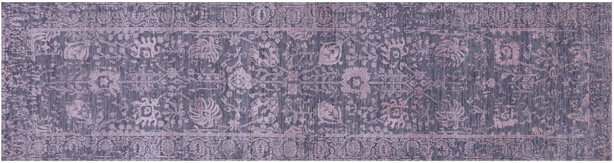 Grey 2' 7" X 10' 2" Handmade Persian Tabriz Wool & Silk Runner Rug - Q21519