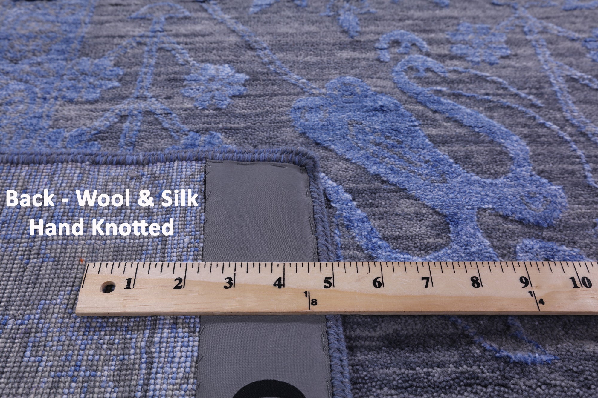Grey 9' 0" X 12' 2" Handmade Wool & Silk Persian Tabriz Rug - Q15827