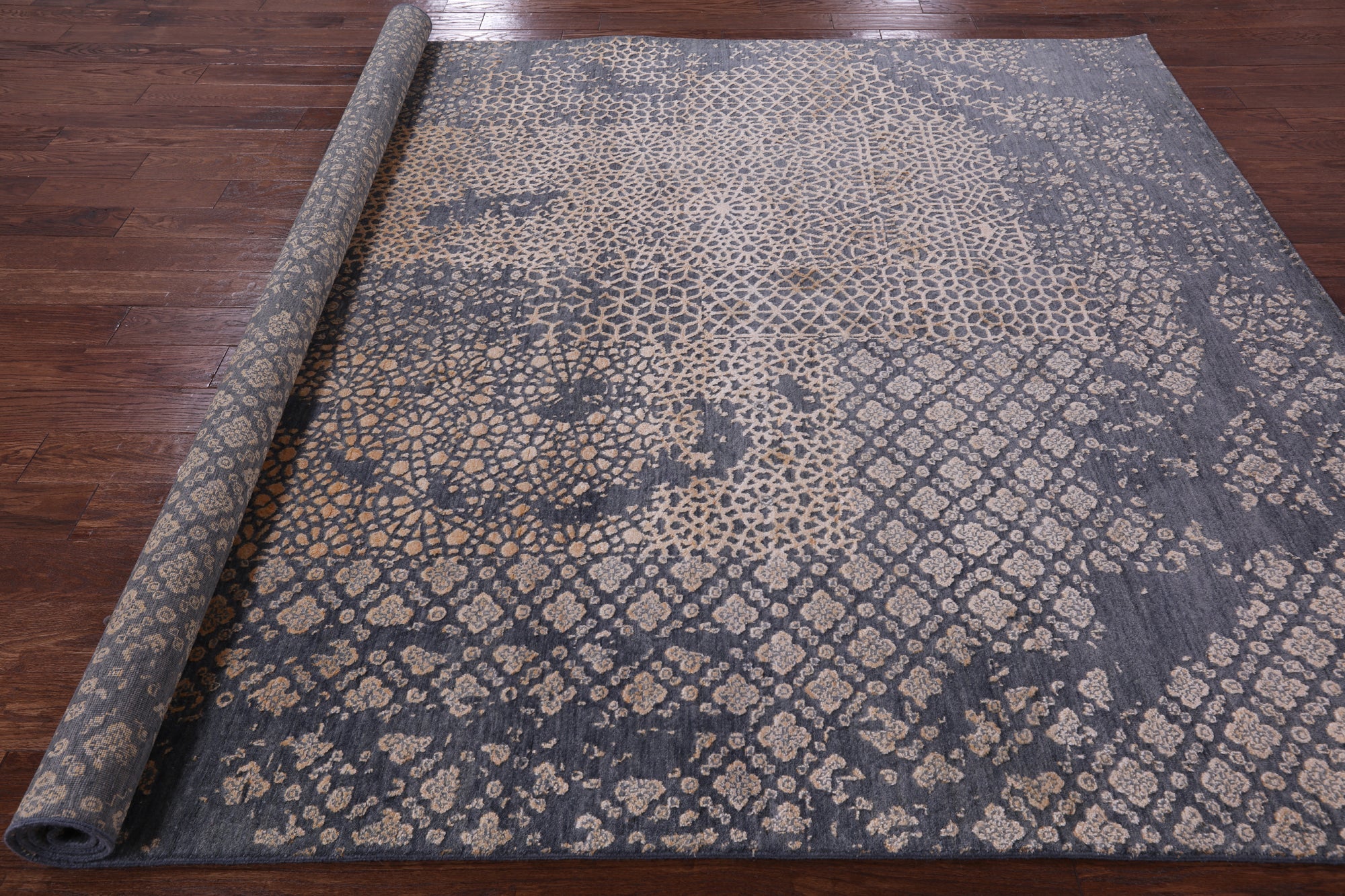 Grey 8' 2" X 10' 0" Modern Hand-Knotted Wool & Silk Rug - Q7046 is backordered and will ship as soon as it is back in stock.