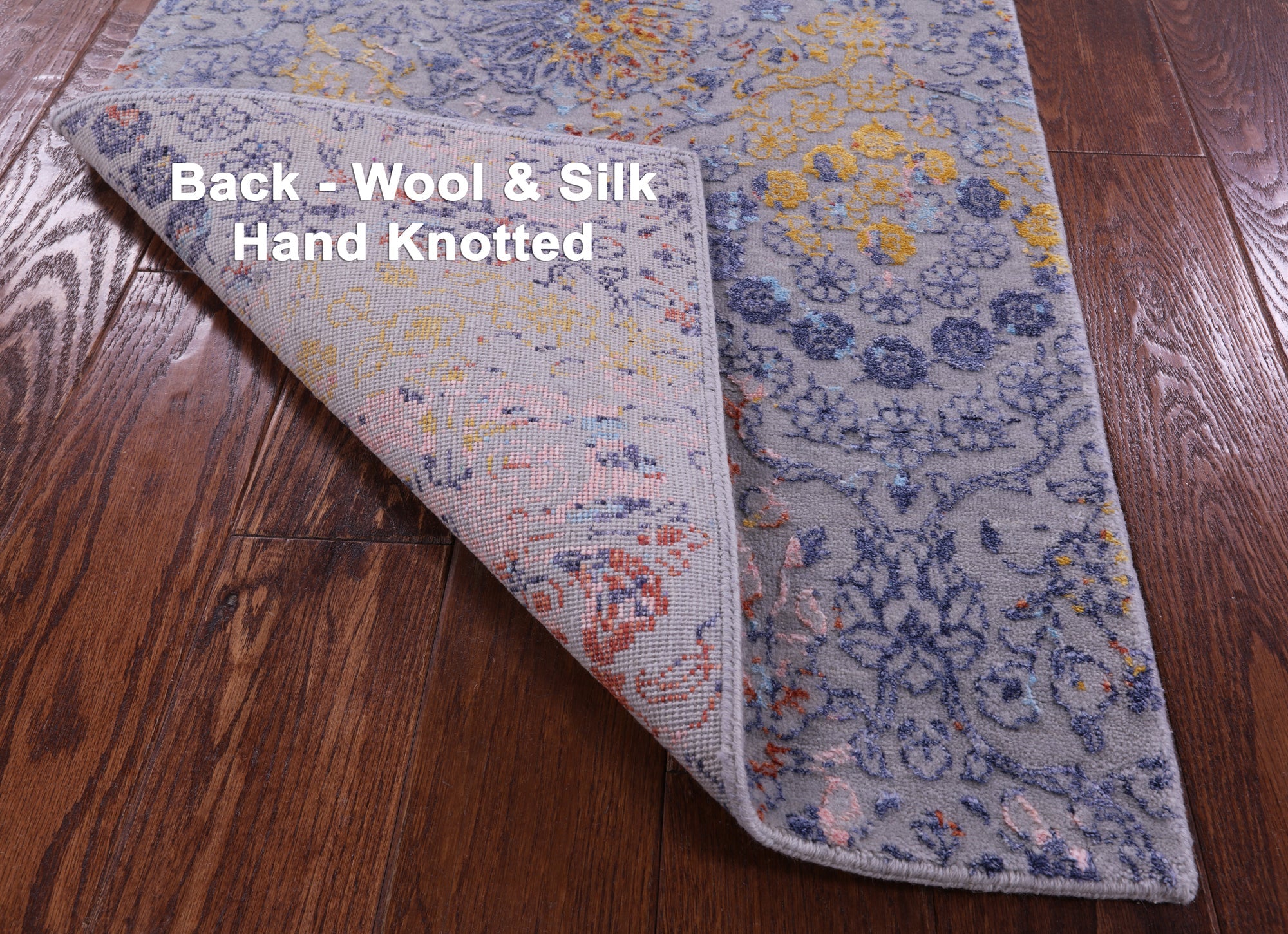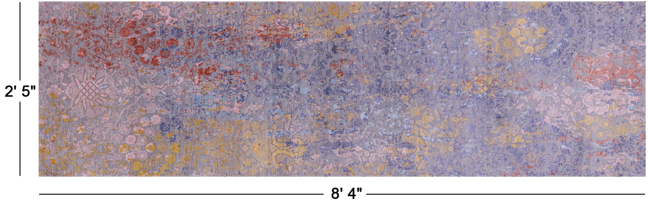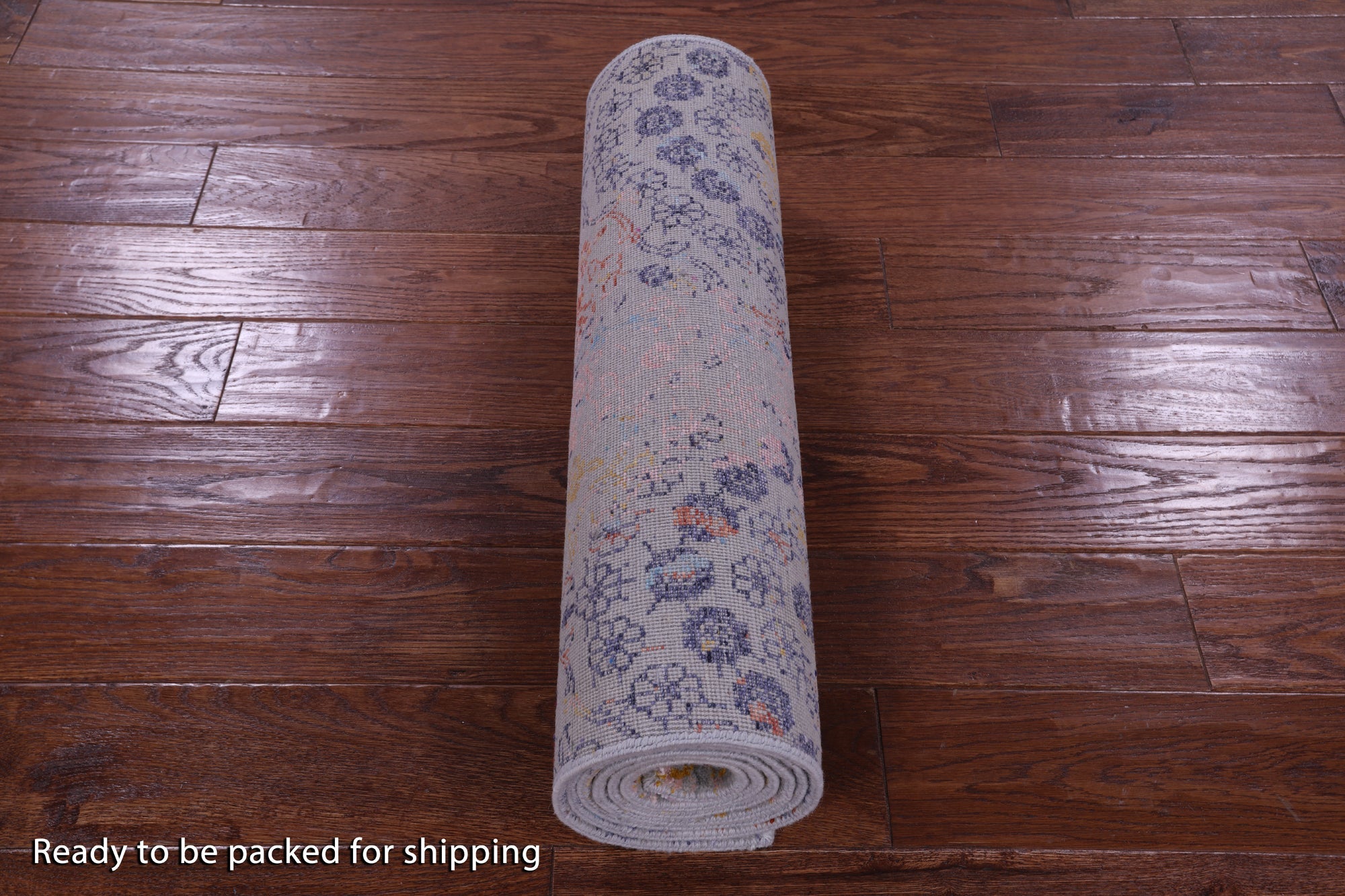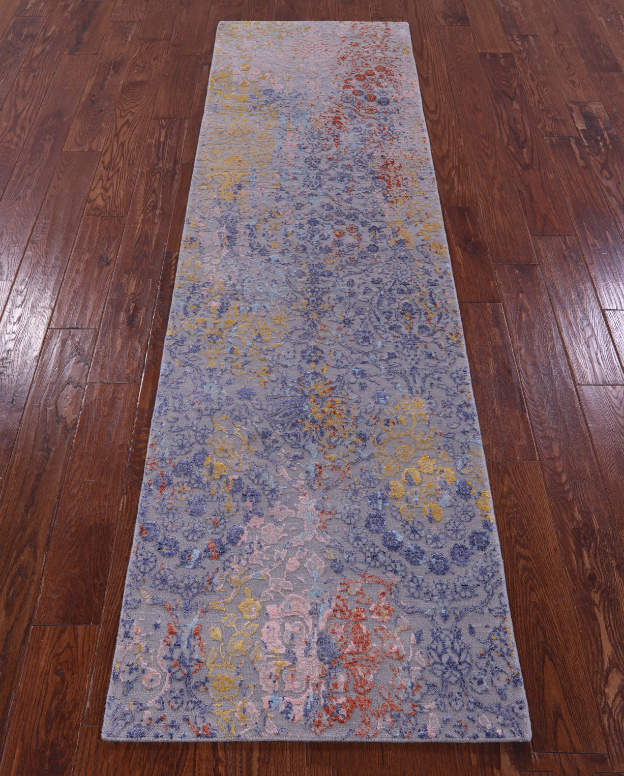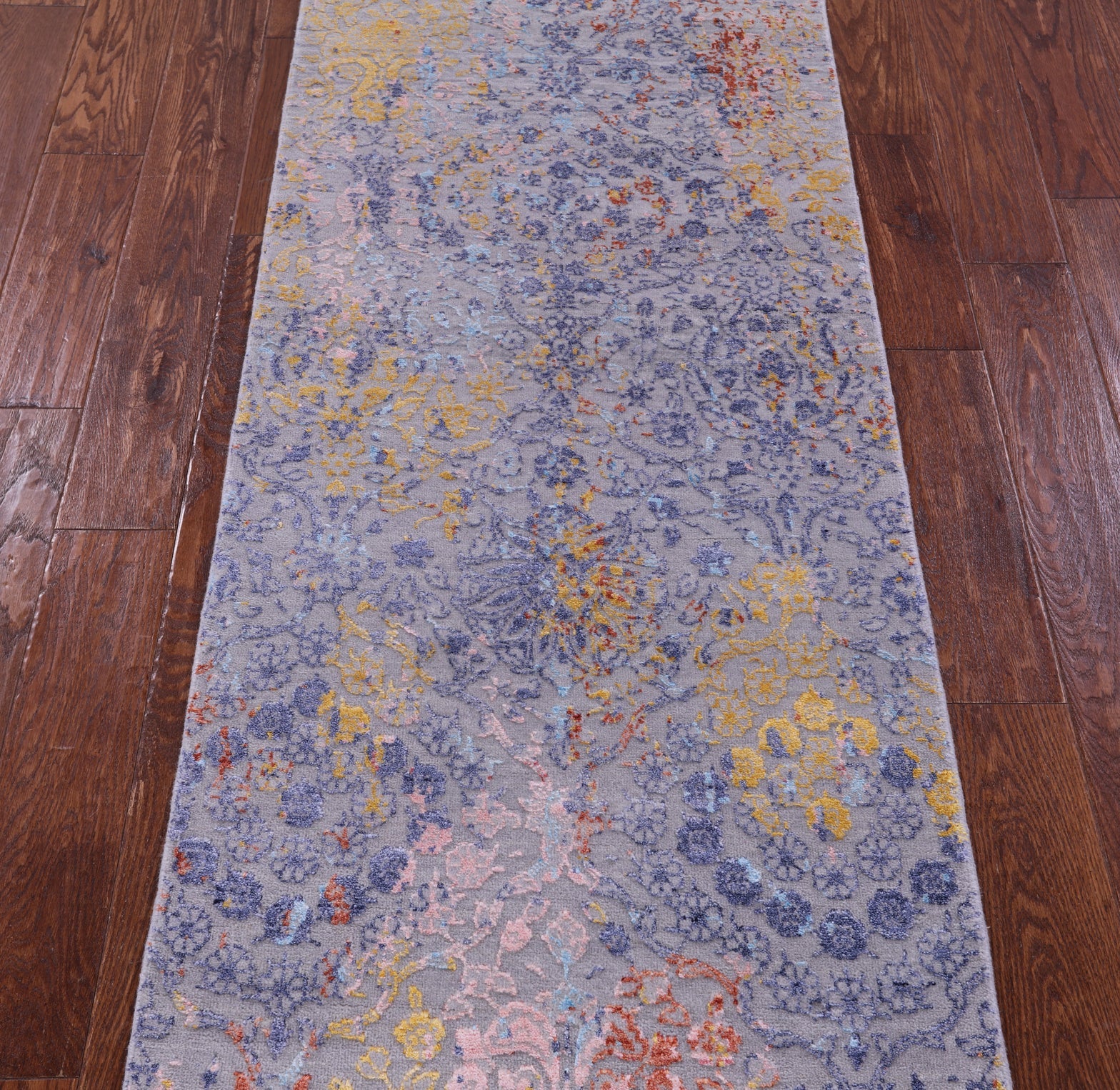 Grey 2' 5" X 8' 4" Modern Runner Handmade Wool & Silk Rug - Q22513