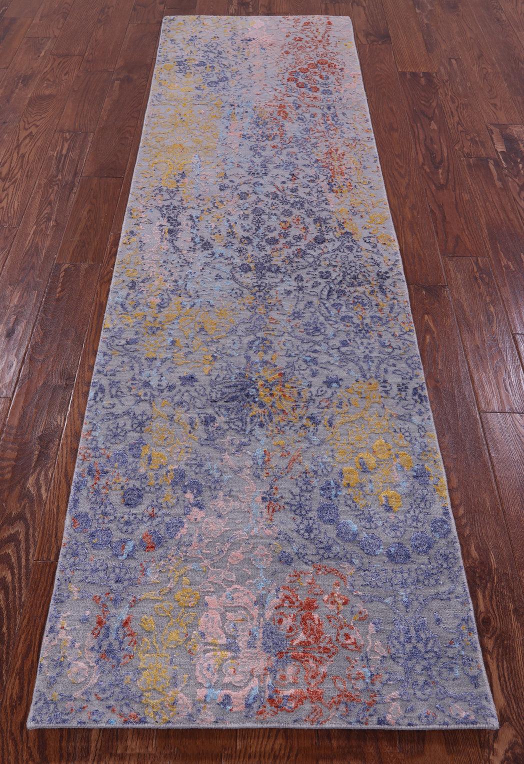 Grey Modern Wool & Silk Handmade Runner Rug 2' 5" X 8' 8" - Q22484 is backordered and will ship as soon as it is back in stock.