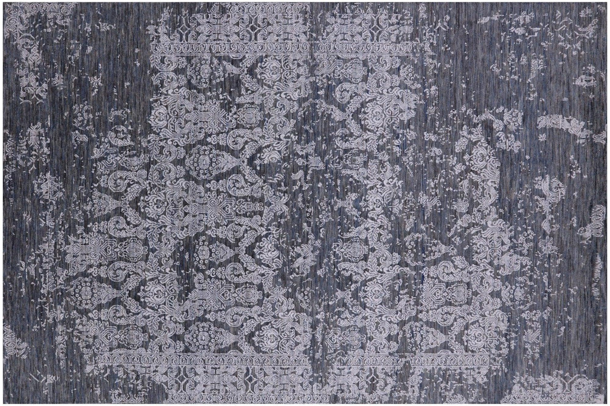 Grey 5' 11" X 9' 0" Persian Hand Knotted Wool & Silk Rug - Q6278
