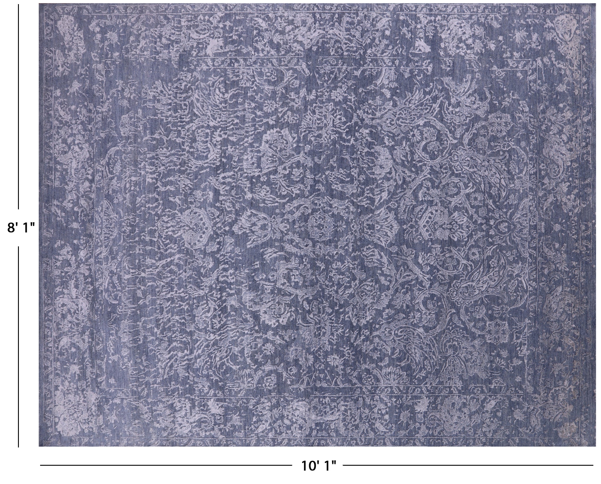 Grey 8' 1" X 10' 1" Persian Handmade Wool & Silk Rug - Q6205