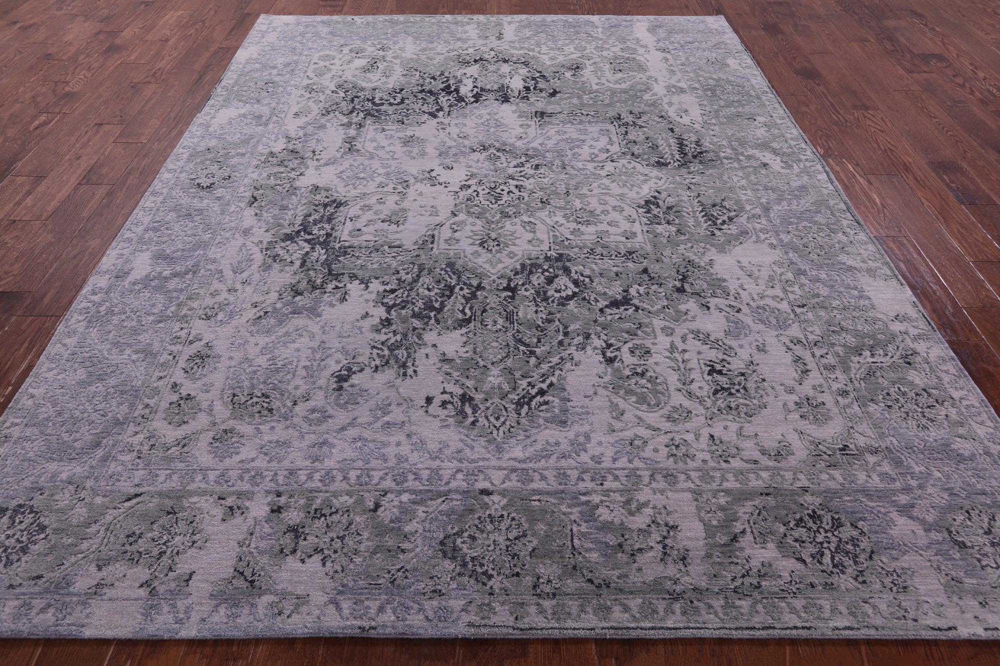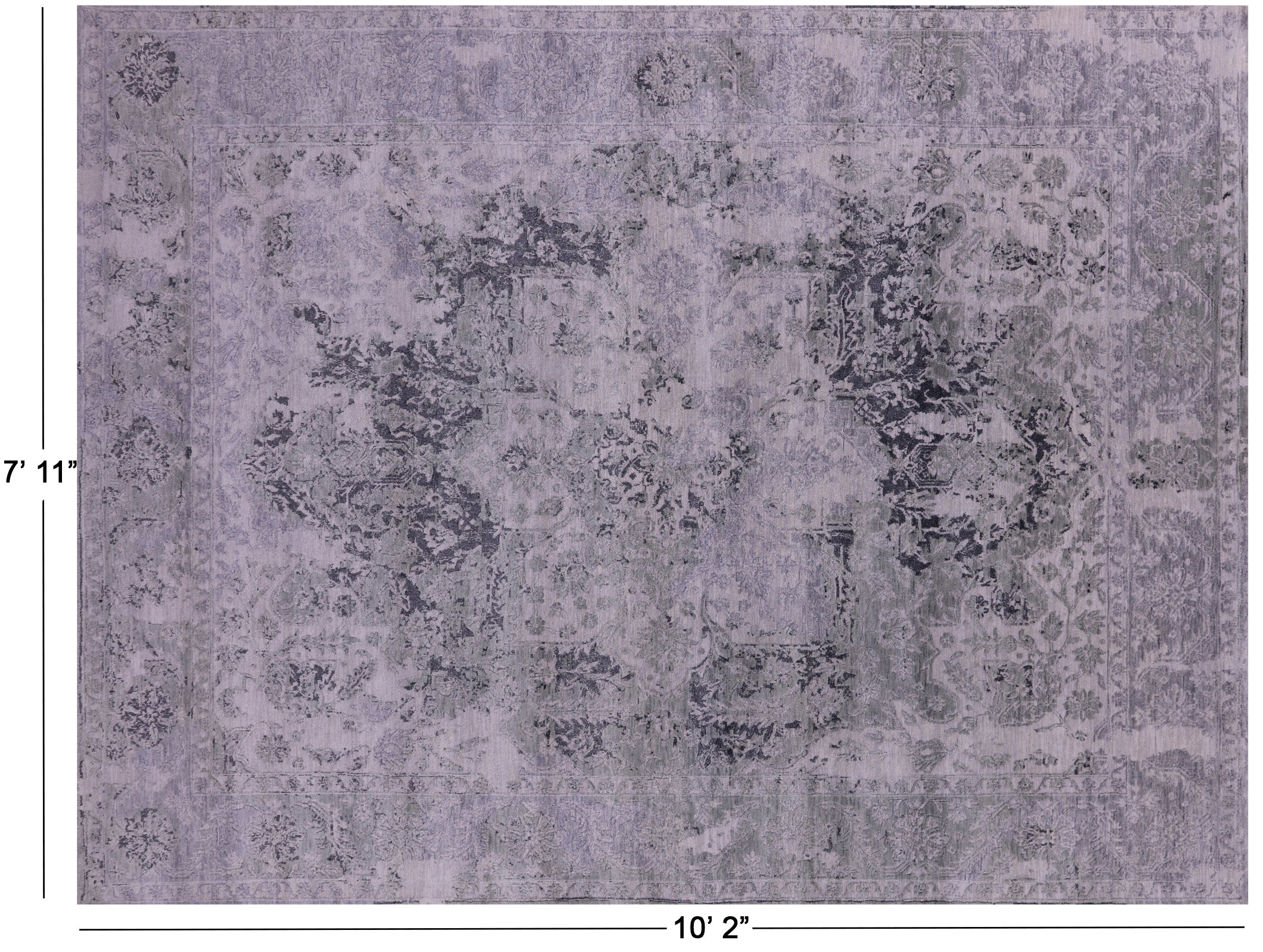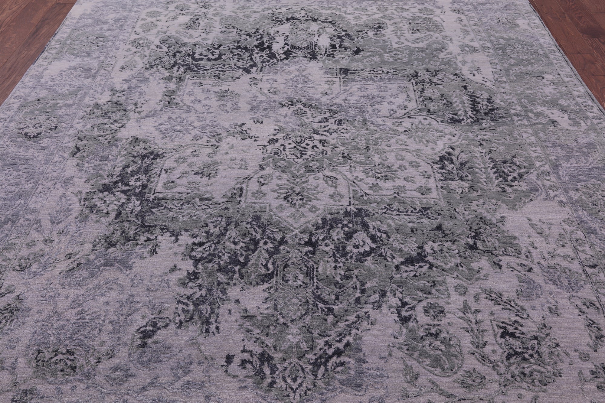 Grey Persian Heriz Serapi Hand Knotted Wool & Silk Rug 7' 11" X 10' 2" - Q21626