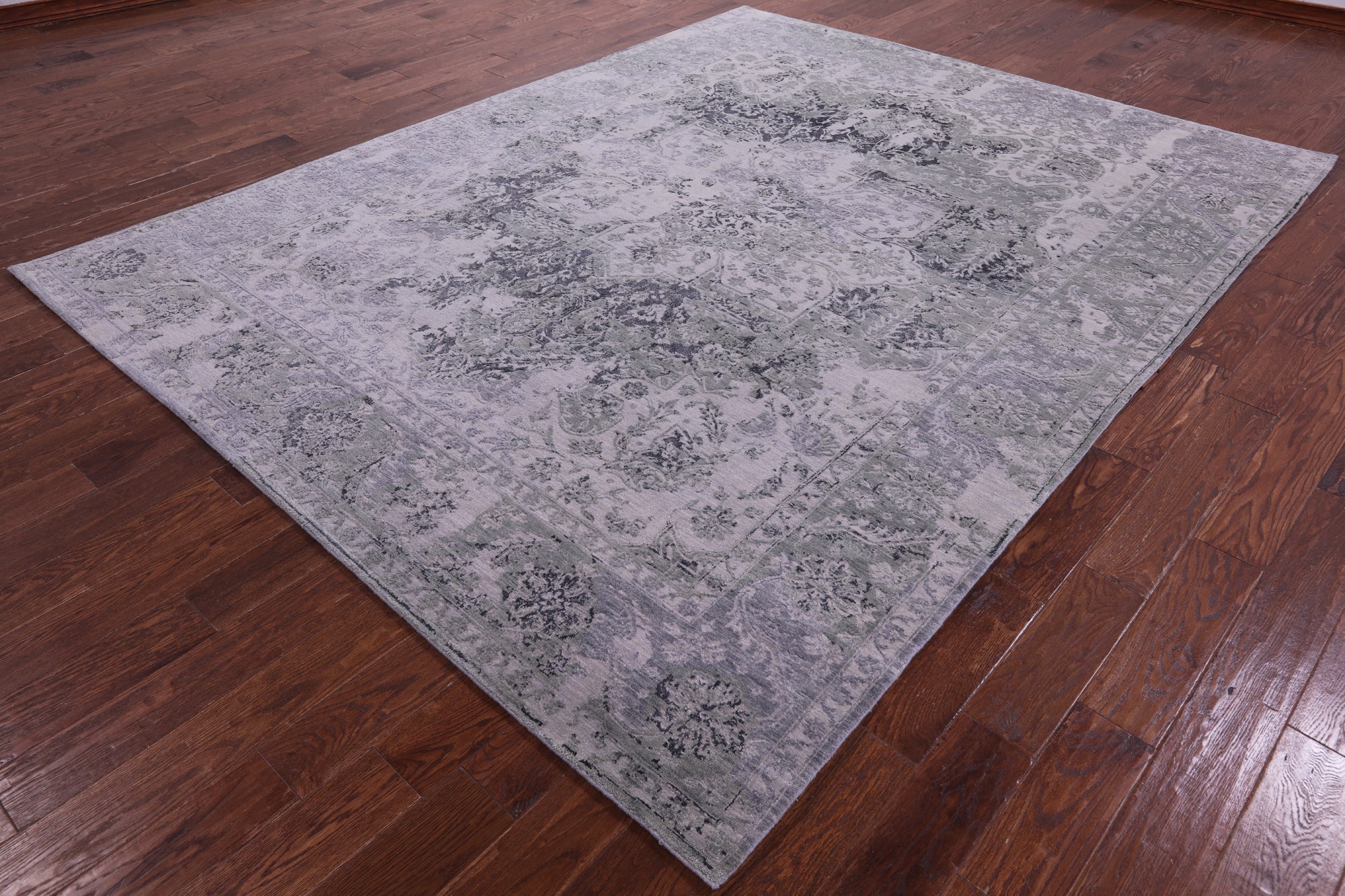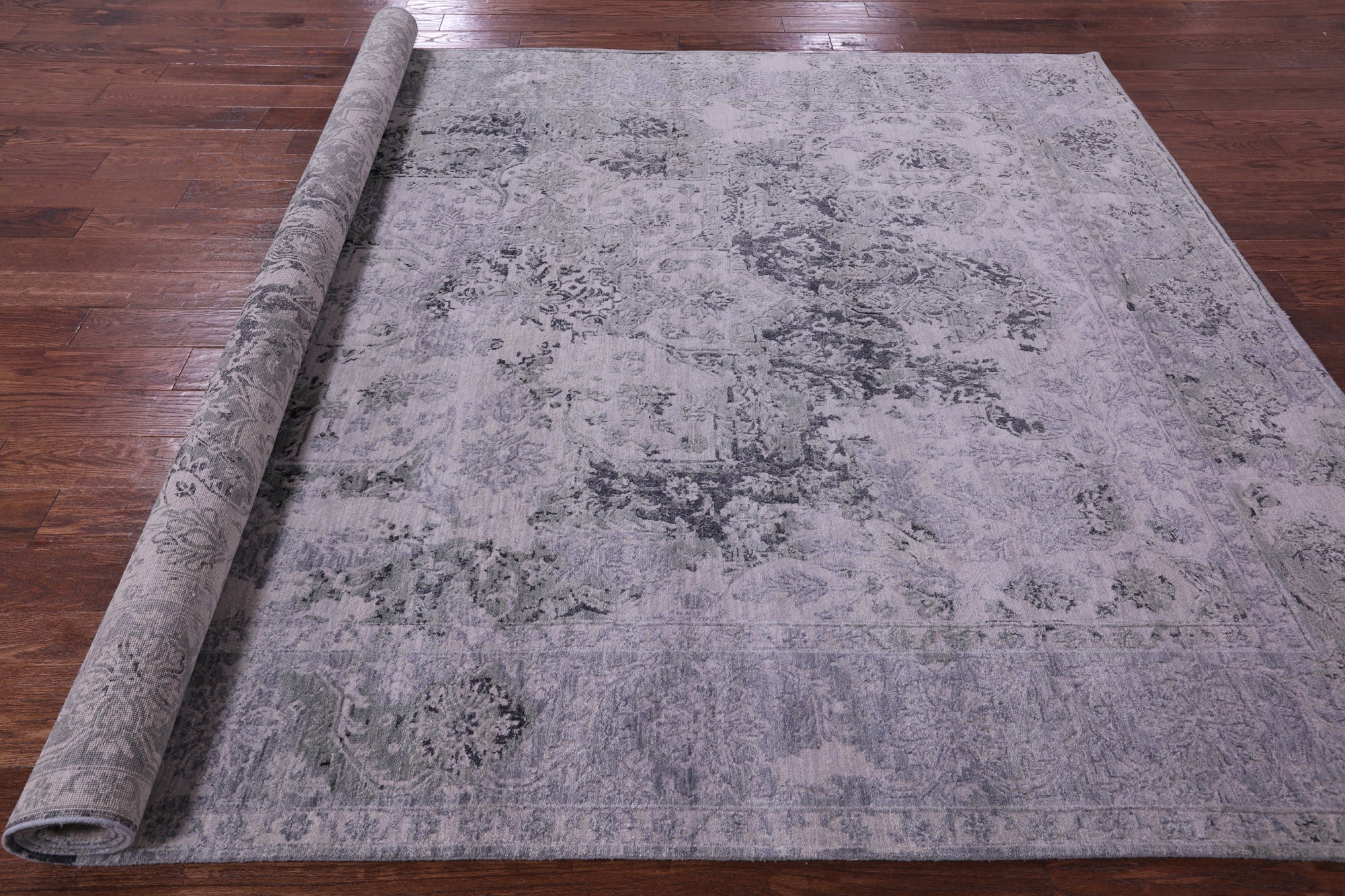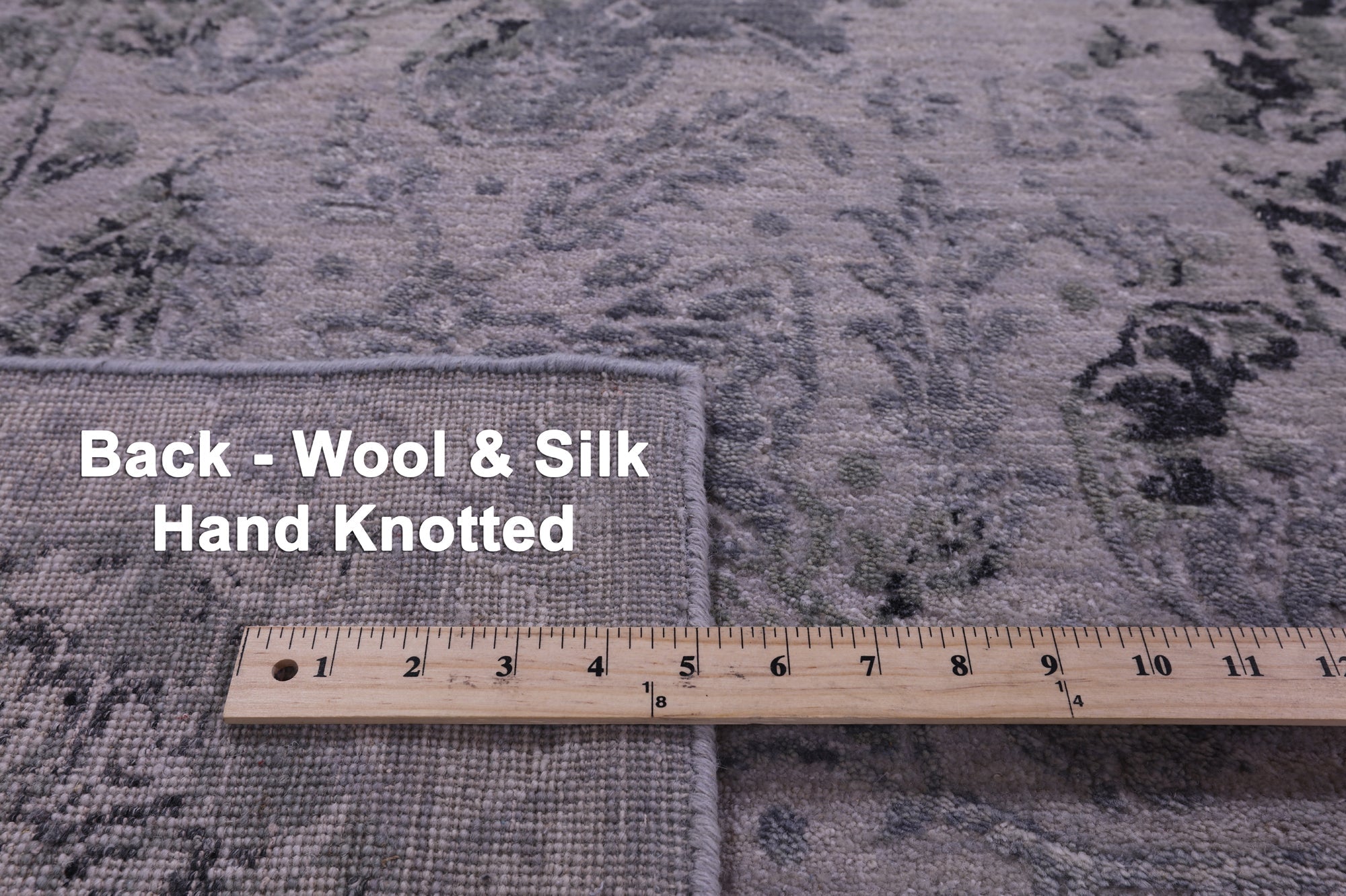 Grey Persian Heriz Serapi Hand Knotted Wool & Silk Rug 7' 11" X 10' 2" - Q21626