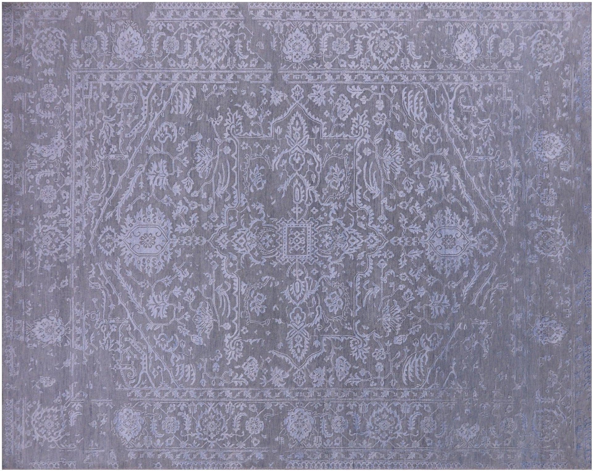 Grey Persian Heriz Serapi Handmade Wool & Silk Rug 8' 1" X 10' 2" - Q21638