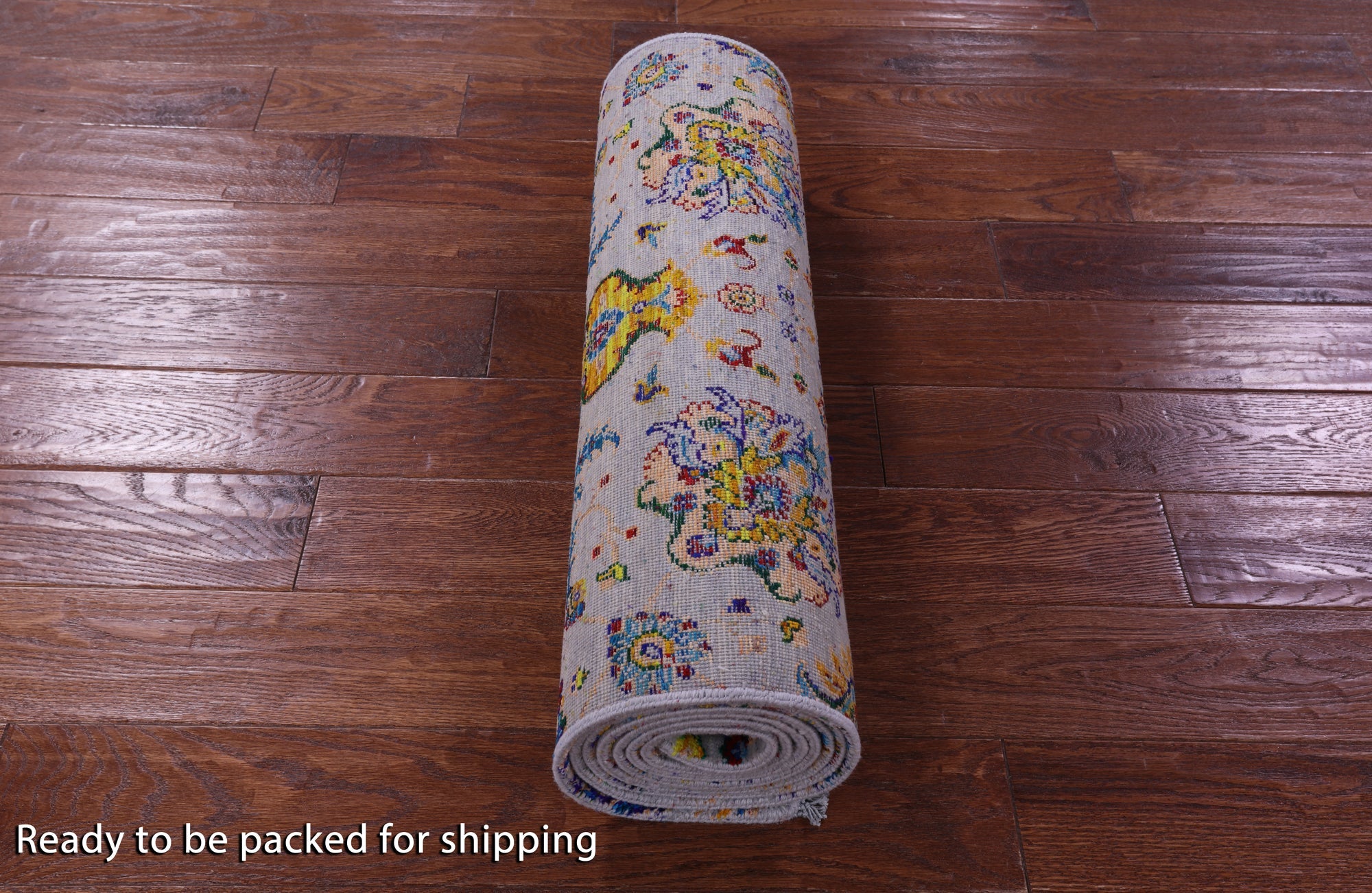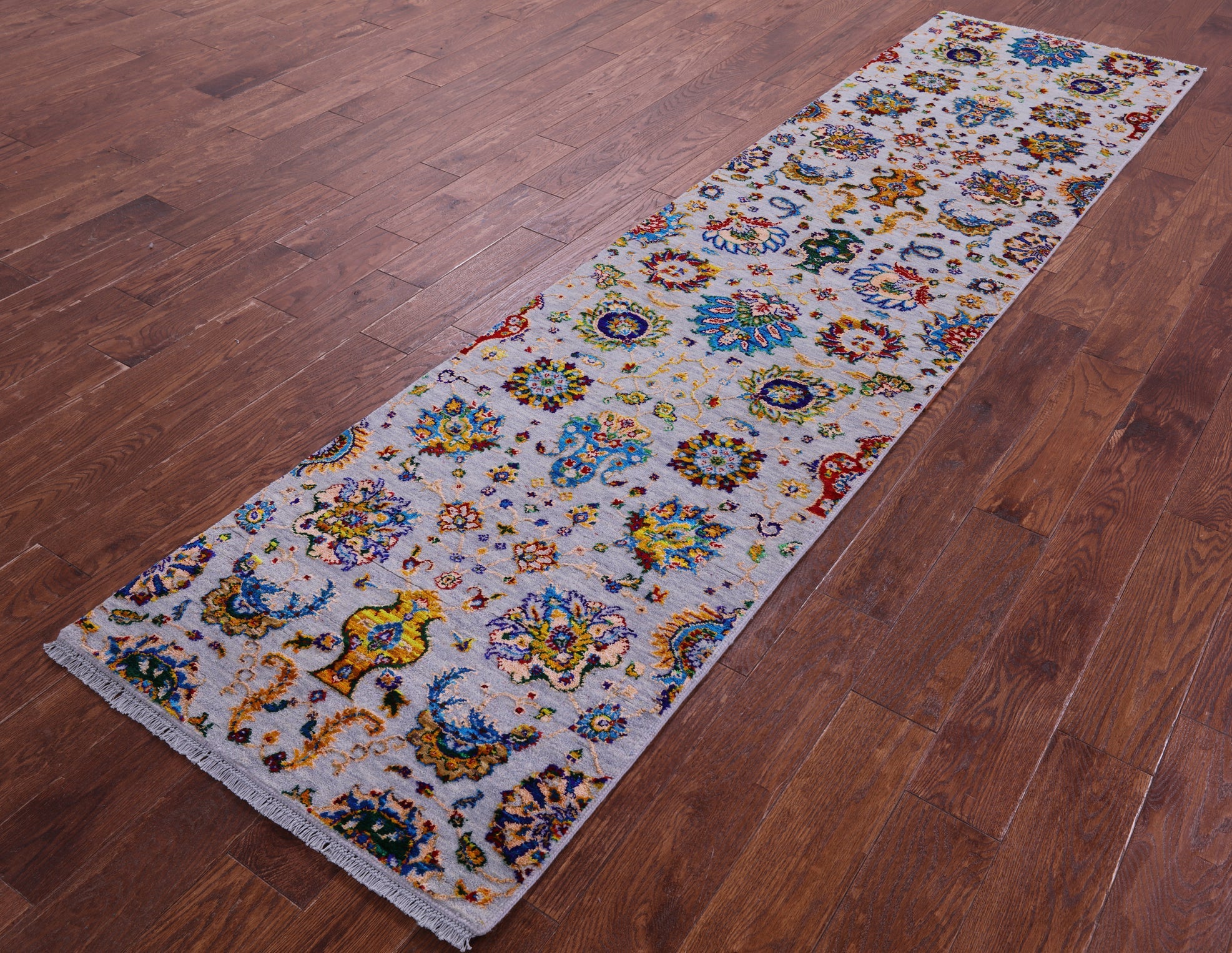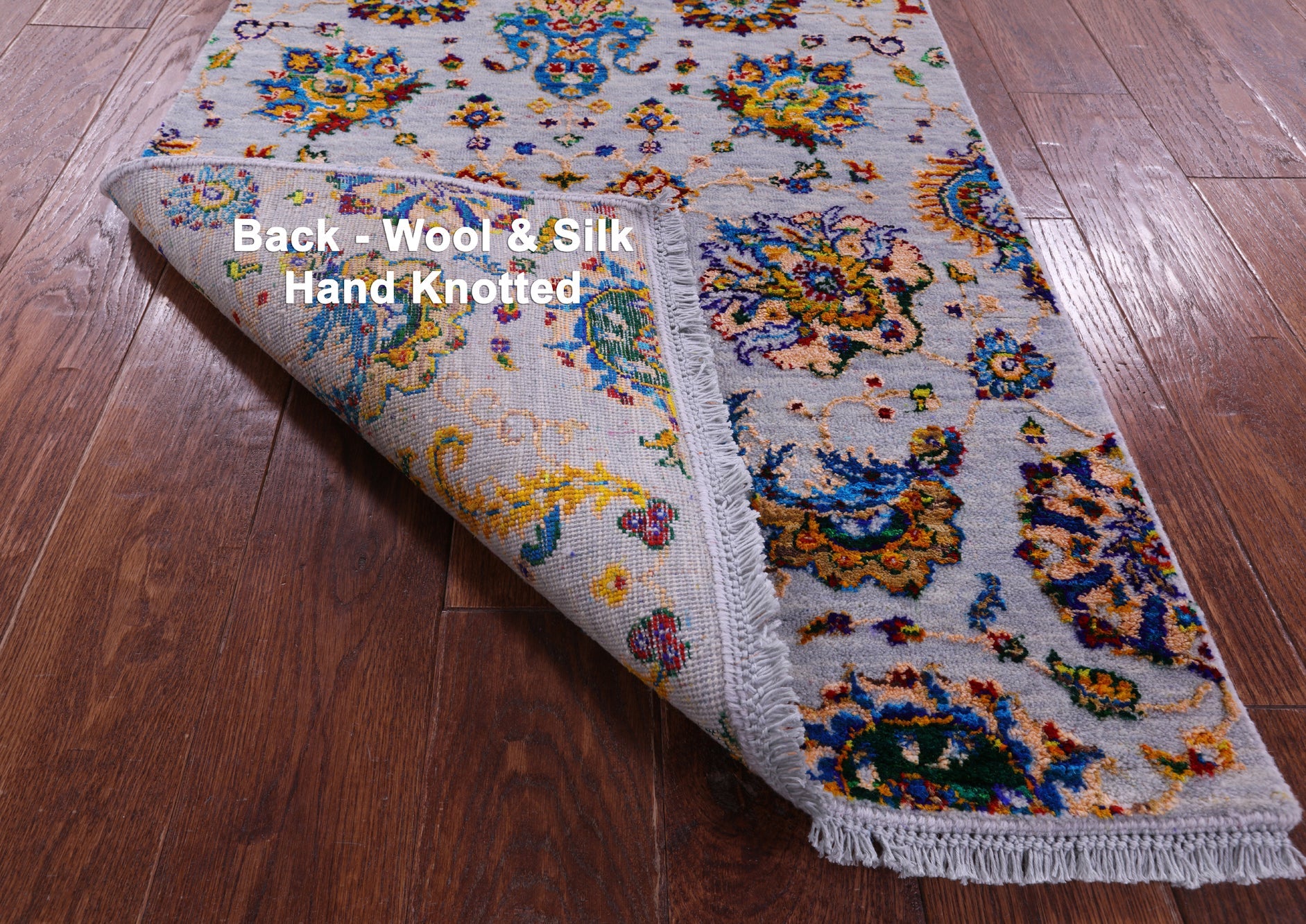 Grey Persian Tabriz Hand Knotted Wool & Silk Runner Rug 2' 6" X 10' 2" - Q22554 is backordered and will ship as soon as it is back in stock.