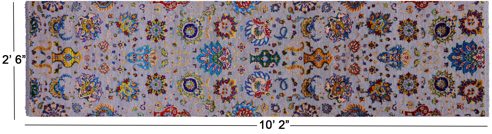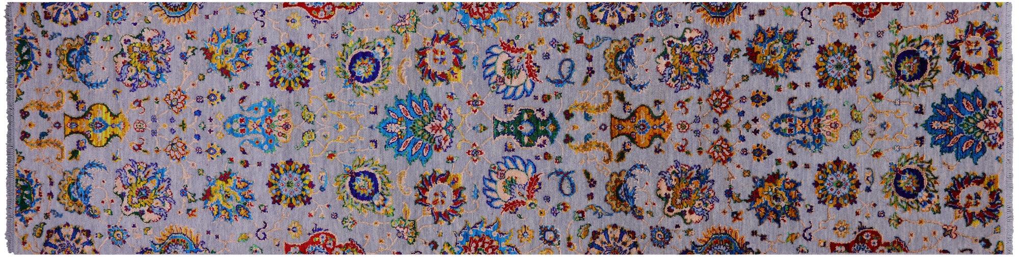 Grey Persian Tabriz Hand Knotted Wool & Silk Runner Rug 2' 6" X 10' 2" - Q22554
