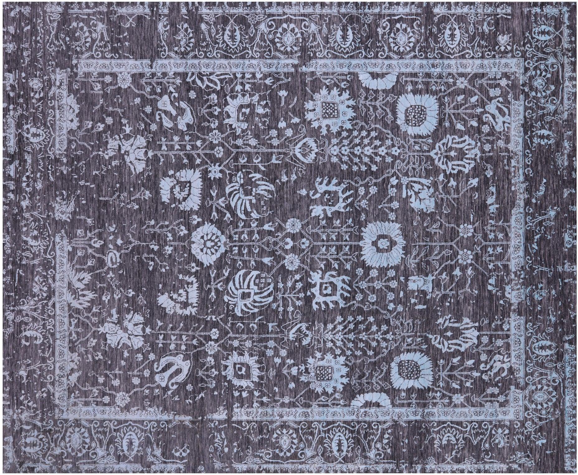 Grey Persian Tabriz Wool & Silk Hand Knotted Rug 8' 0" X 10' 1" - Q21498