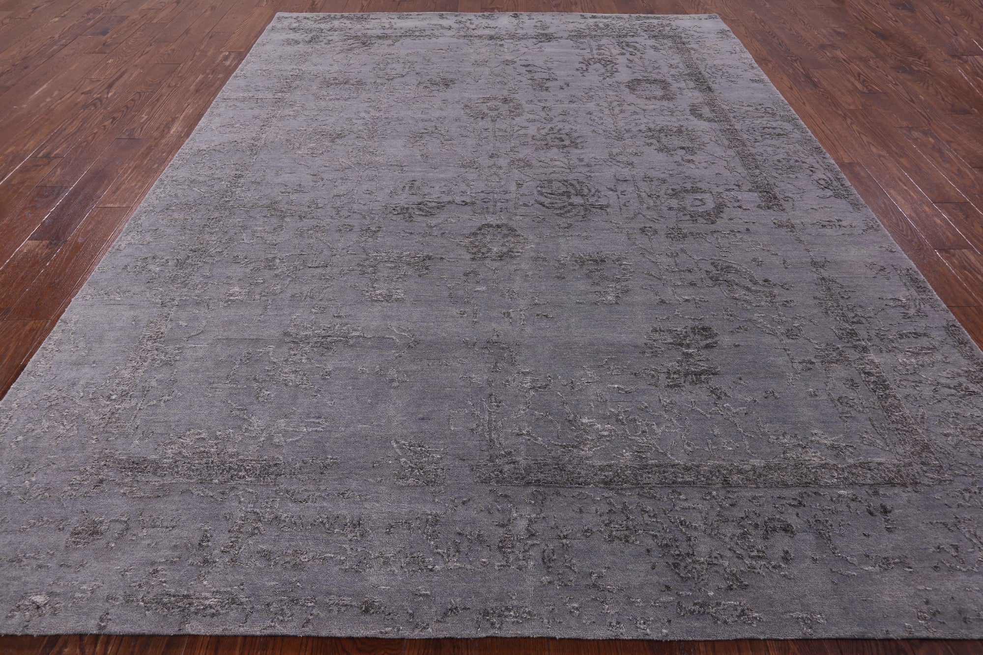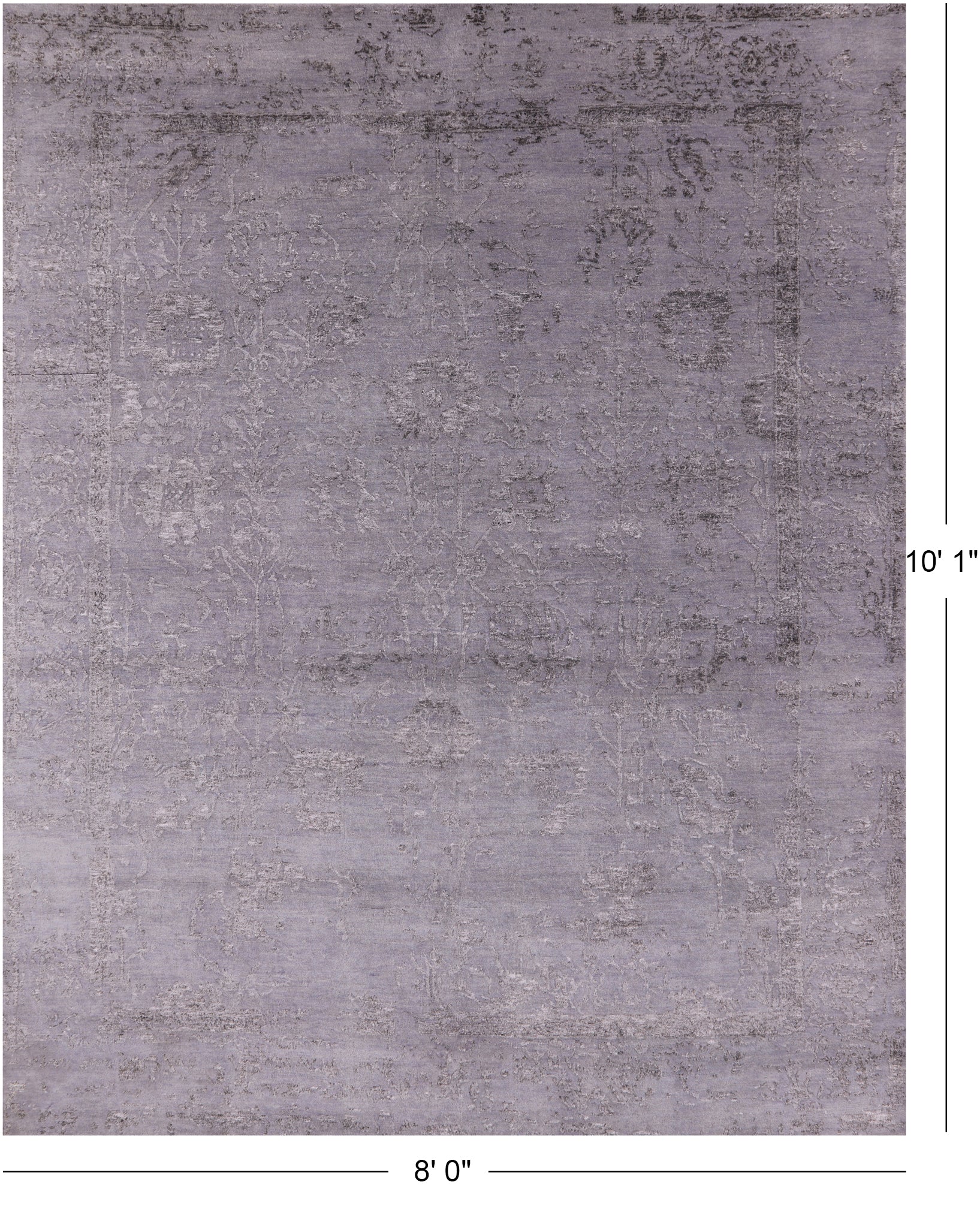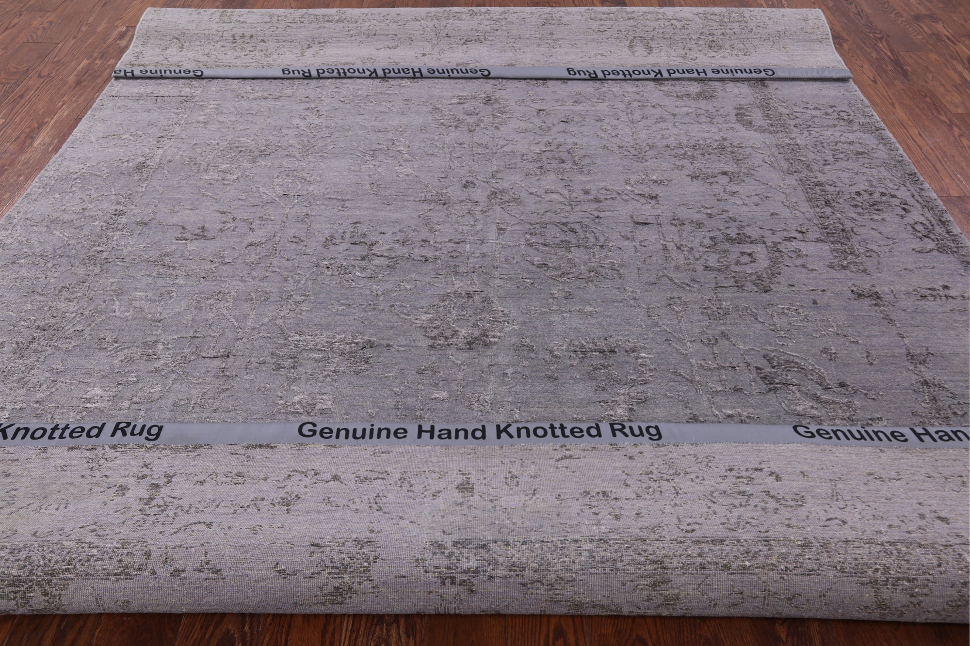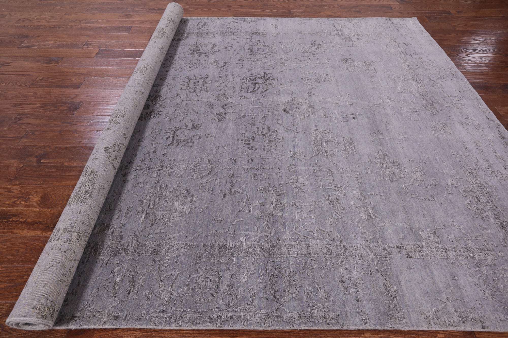 Grey 8' 0" X 10' 1" Persian Wool & Silk Hand-Knotted Rug - Q6208