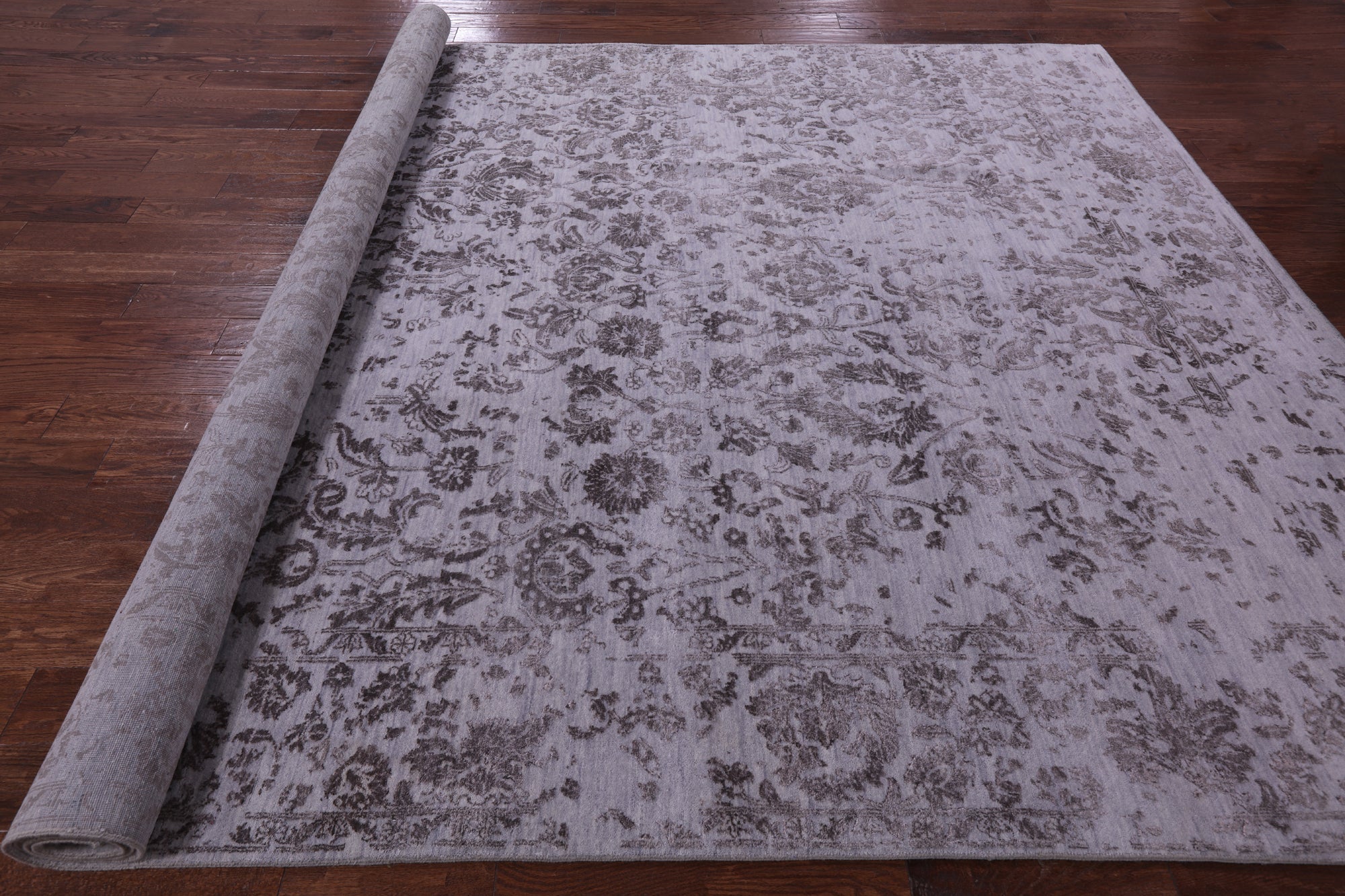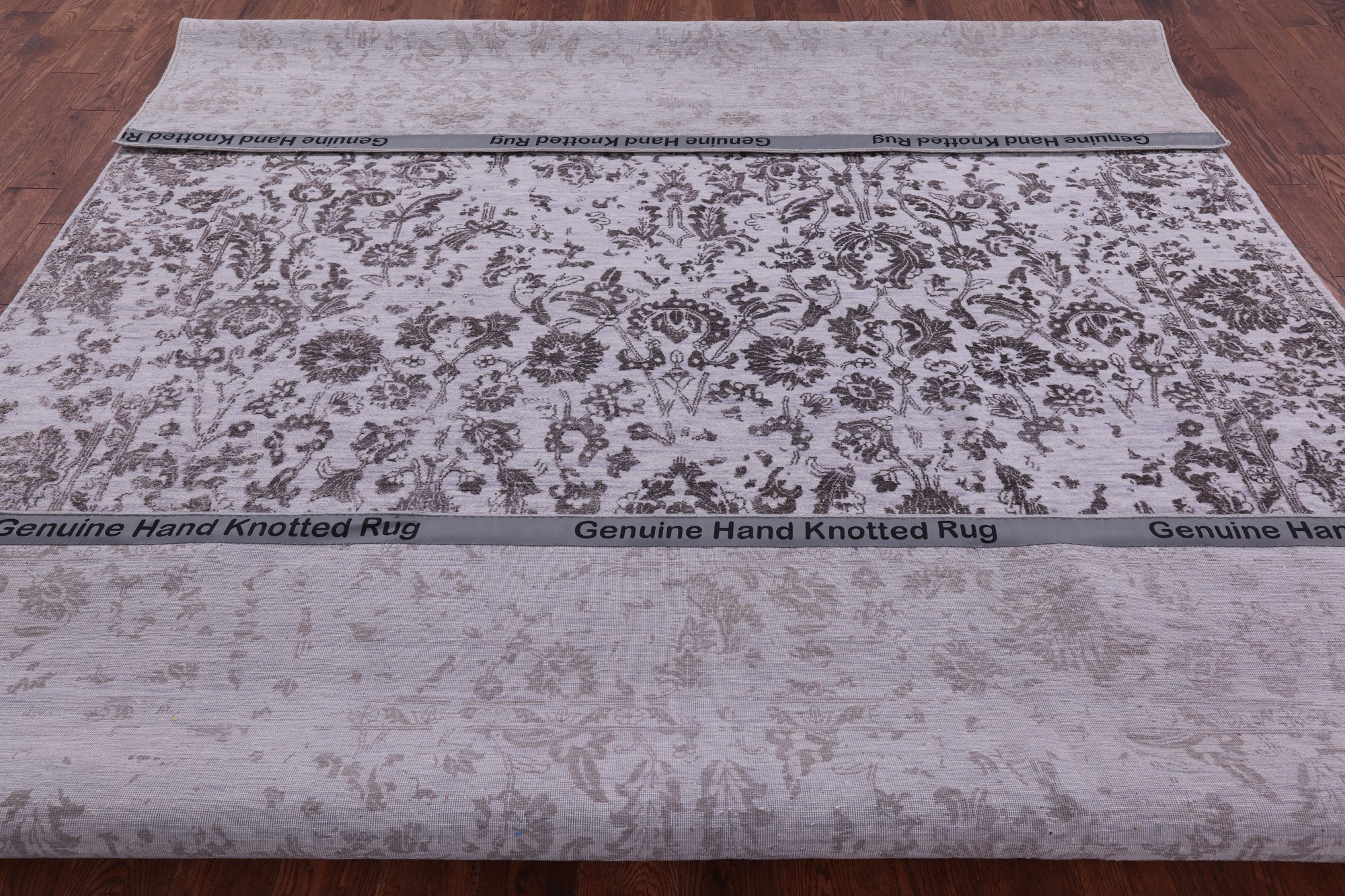Grey 8' 10" X 11' 9" Wool & Silk Handmade Persian Rug - Q15799