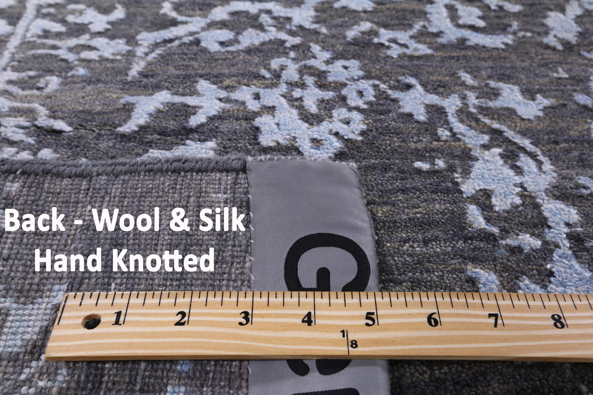 Grey 8' 0" X 10' 1" Wool & Silk Persian Hand Knotted Rug - Q7105