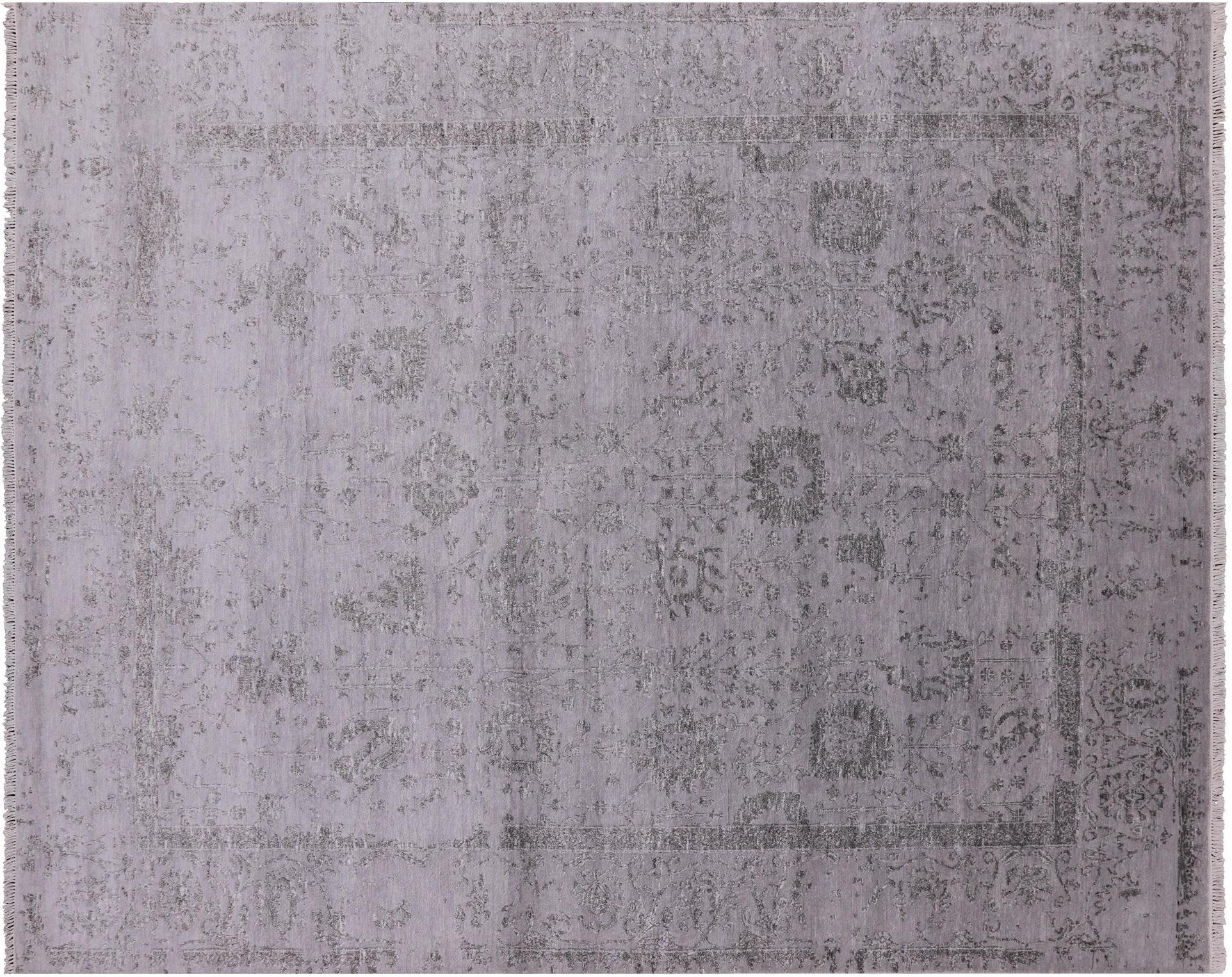 Grey 8' 0" X 10' 0" Wool & Silk Persian Tabriz Handmade Area Rug - Q4104