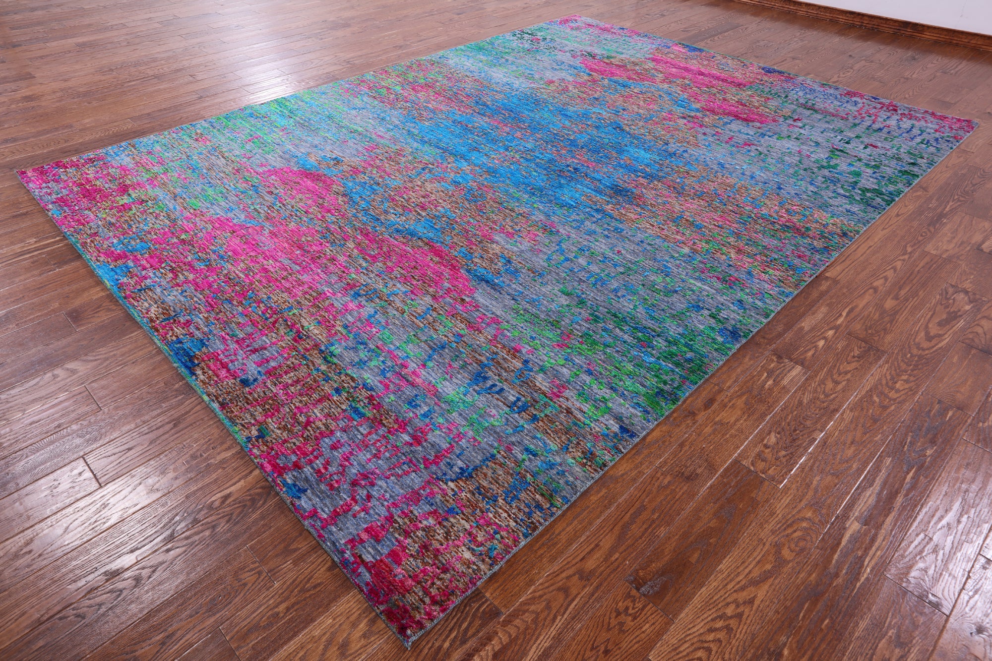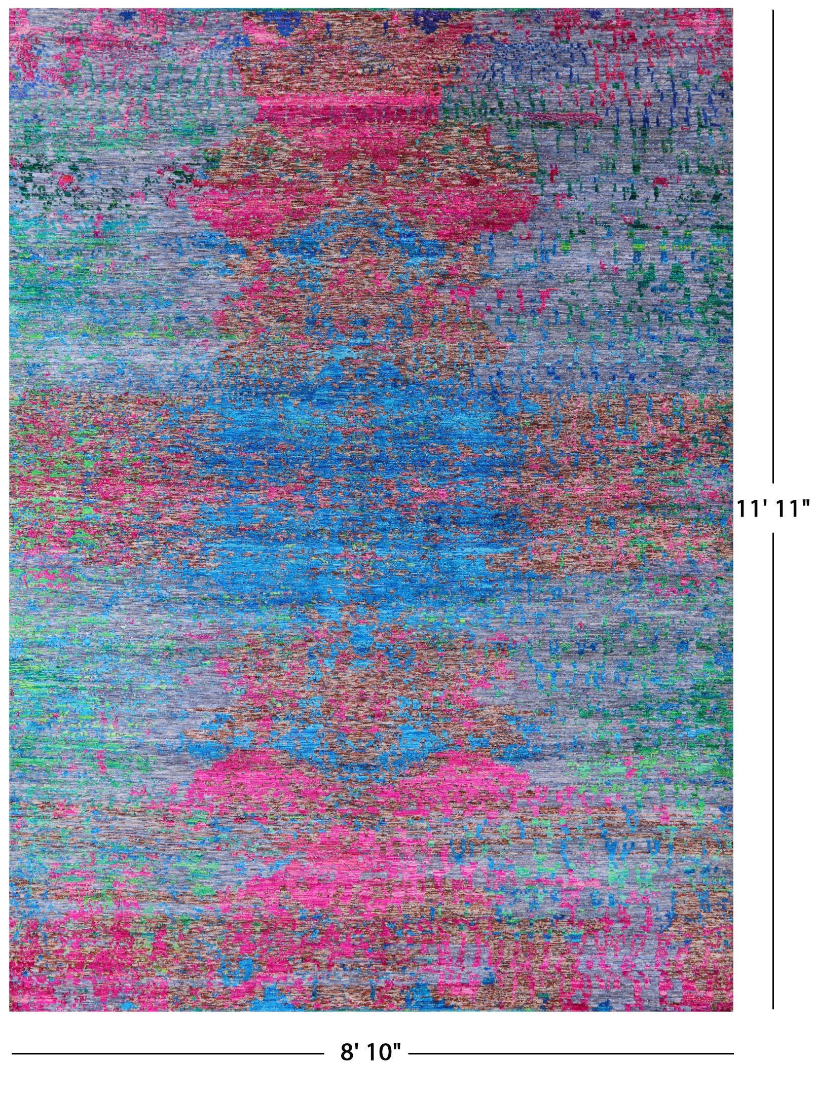 8' 10" X 11' 11" Hand Knotted Abstract Wool & Silk Rug - Q13485