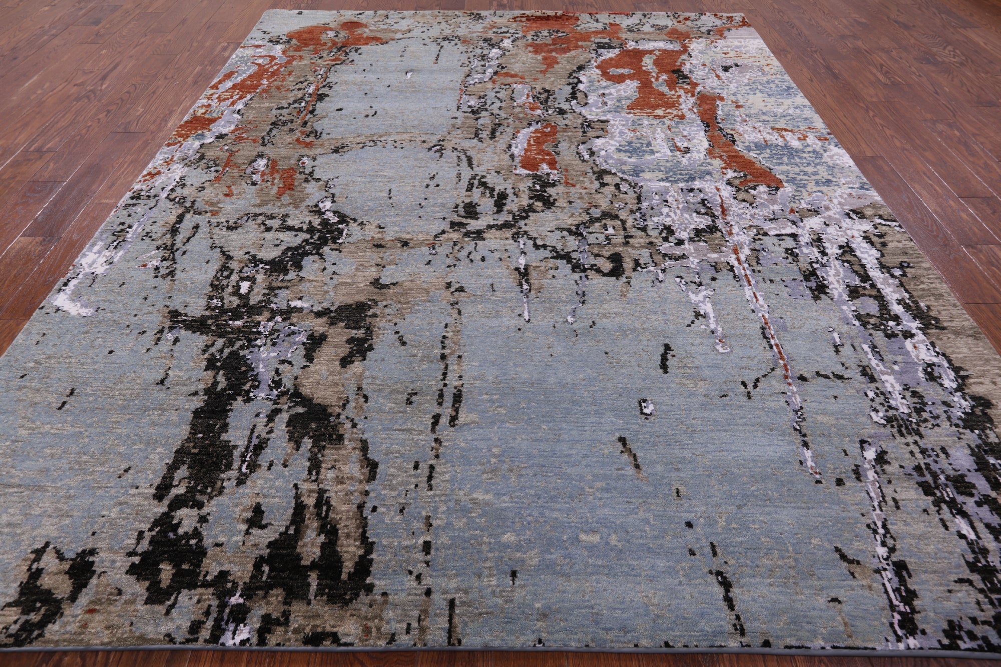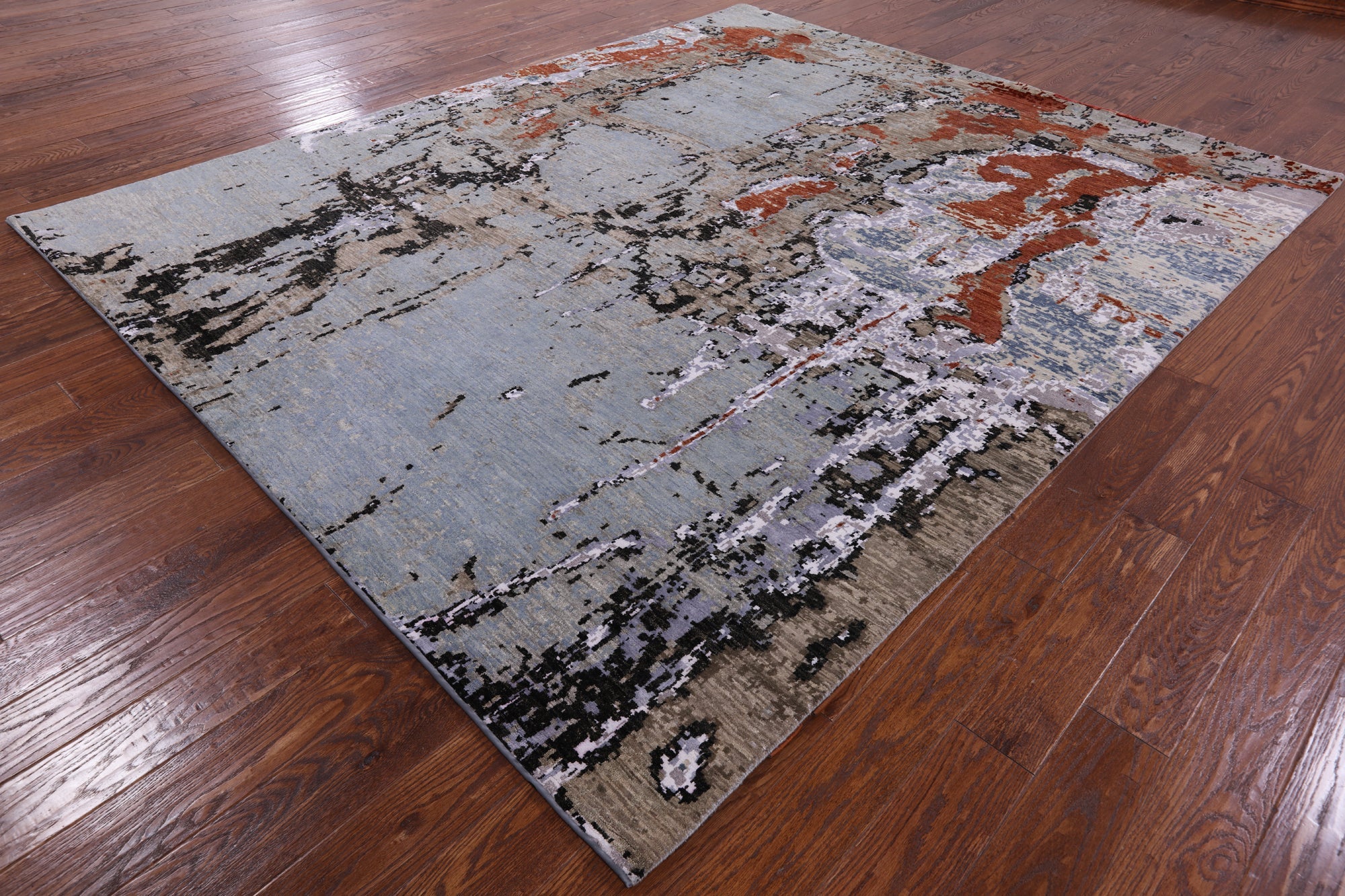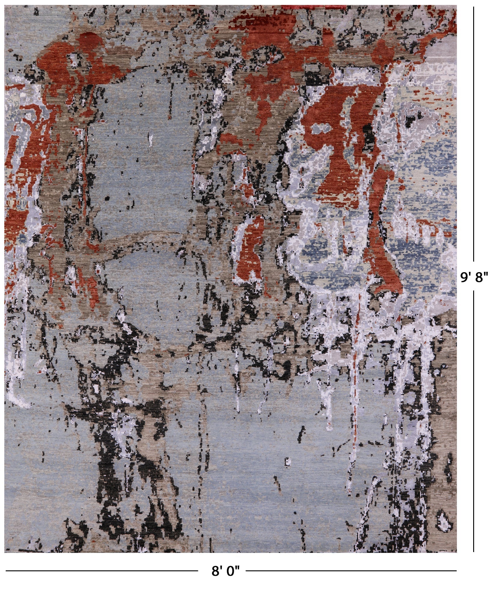 Hand Knotted Abstract Wool & Silk Rug 8' 0" X 9' 8"- Q6239