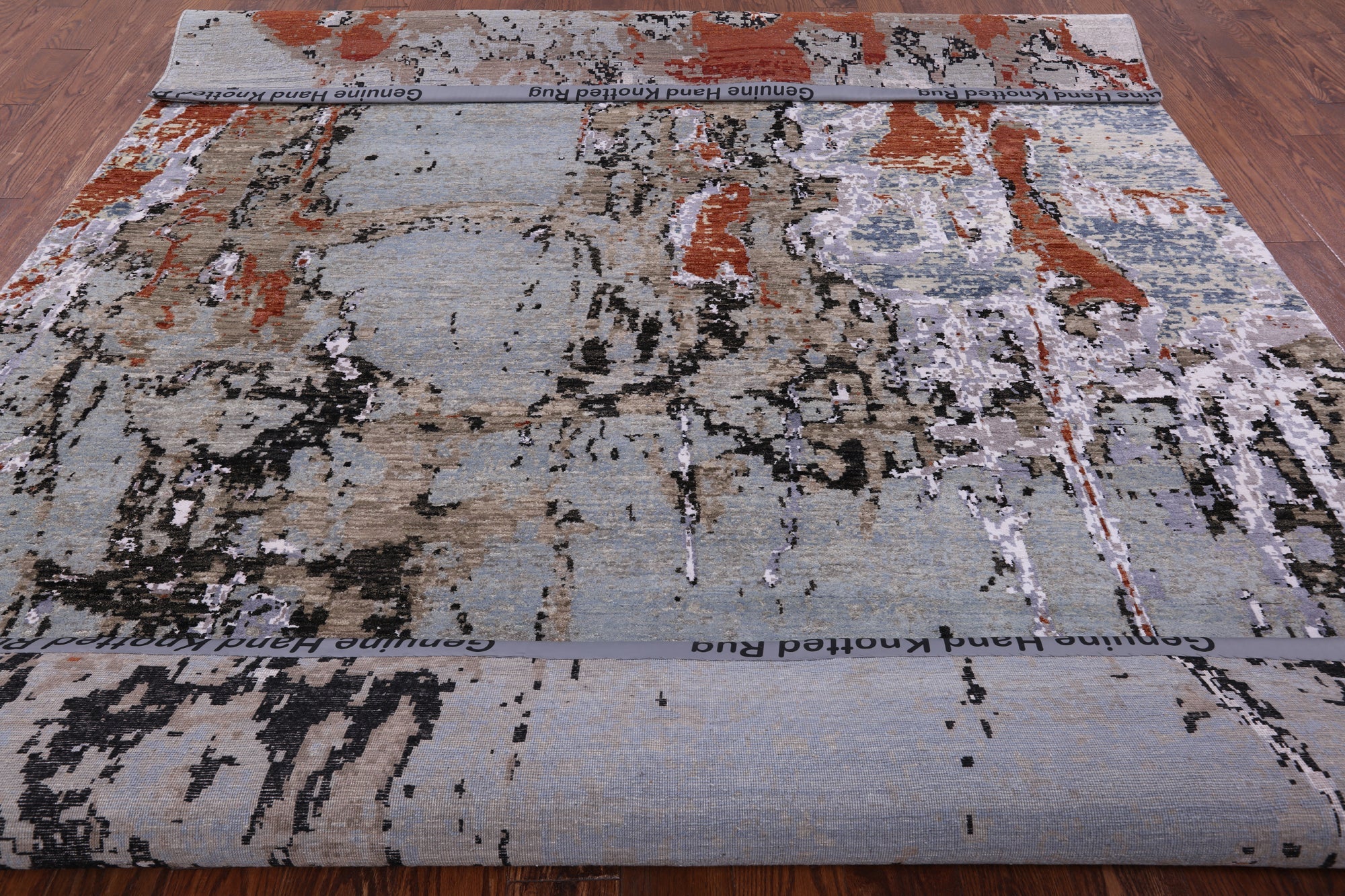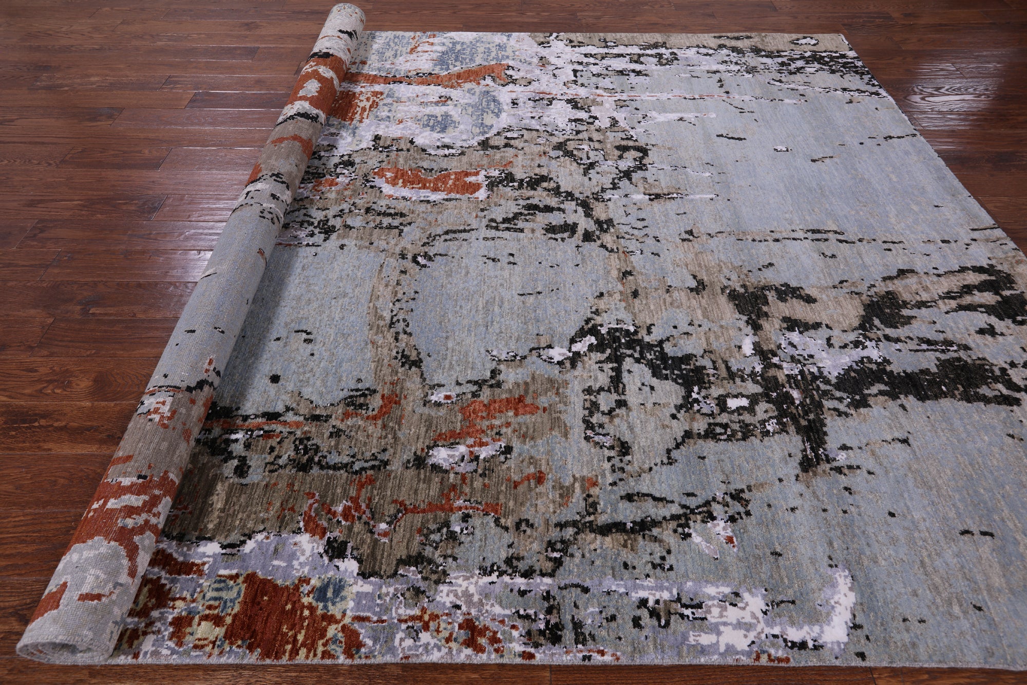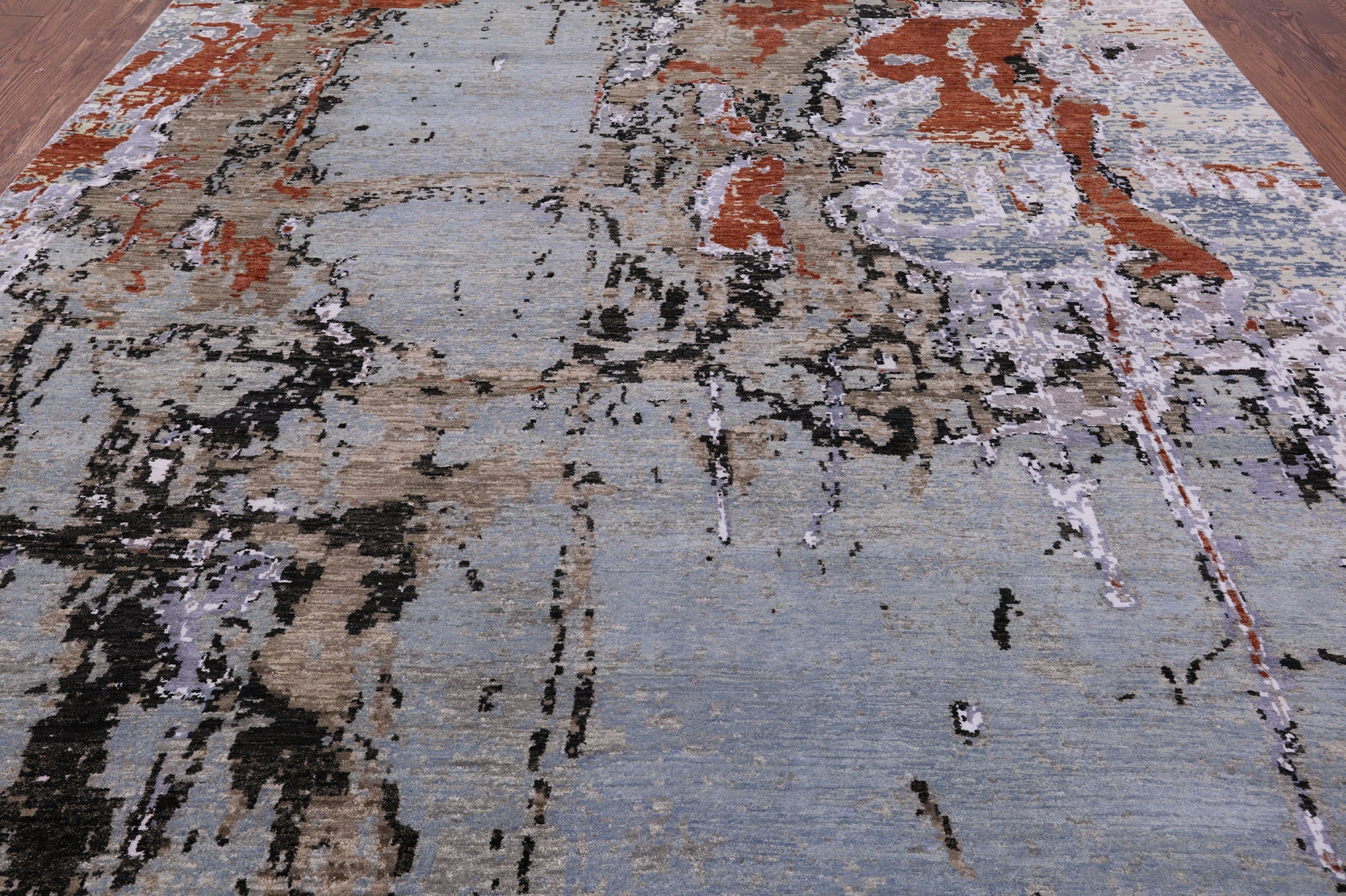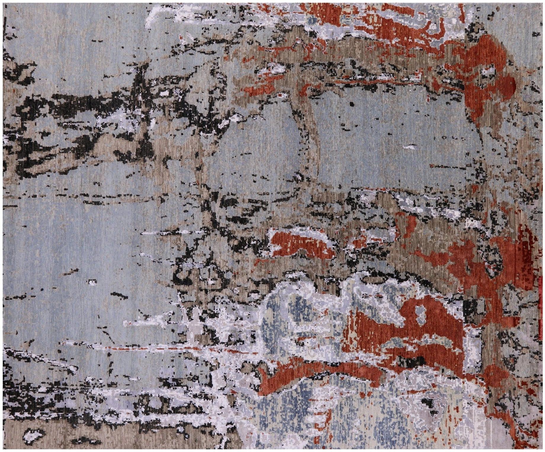 Hand Knotted Abstract Wool & Silk Rug 8' 0" X 9' 8"- Q6239