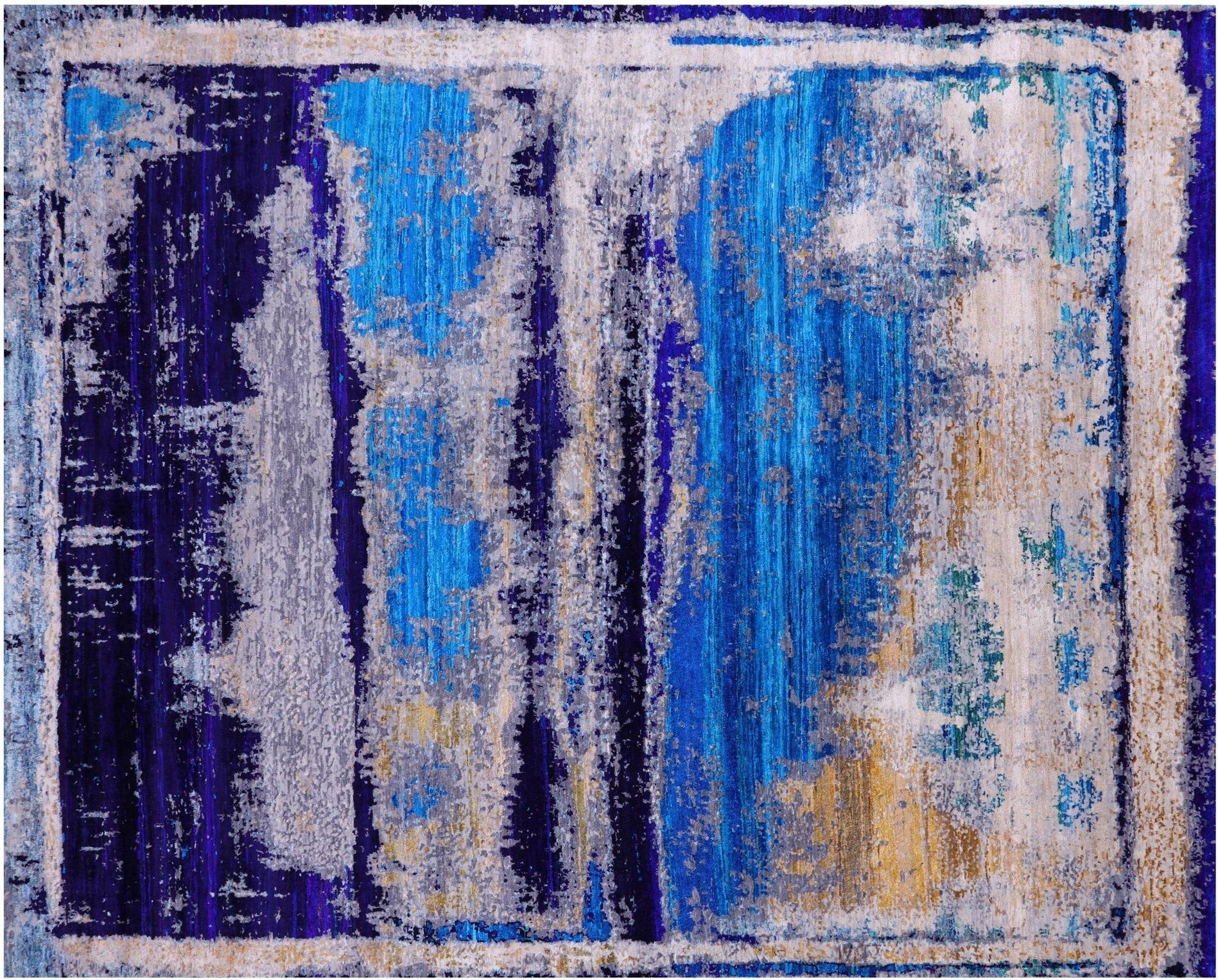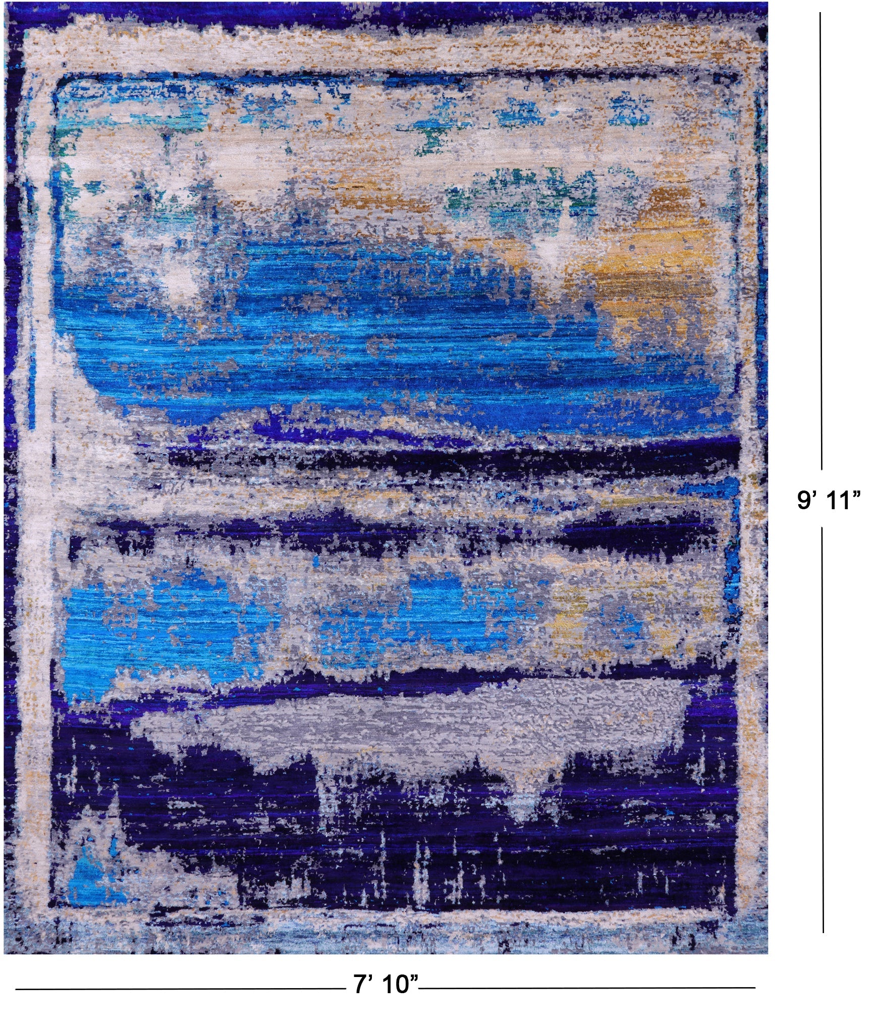 7' 10" X 9' 11" Hand-Knotted Modern Abstract Wool & Silk Rug - Q22580