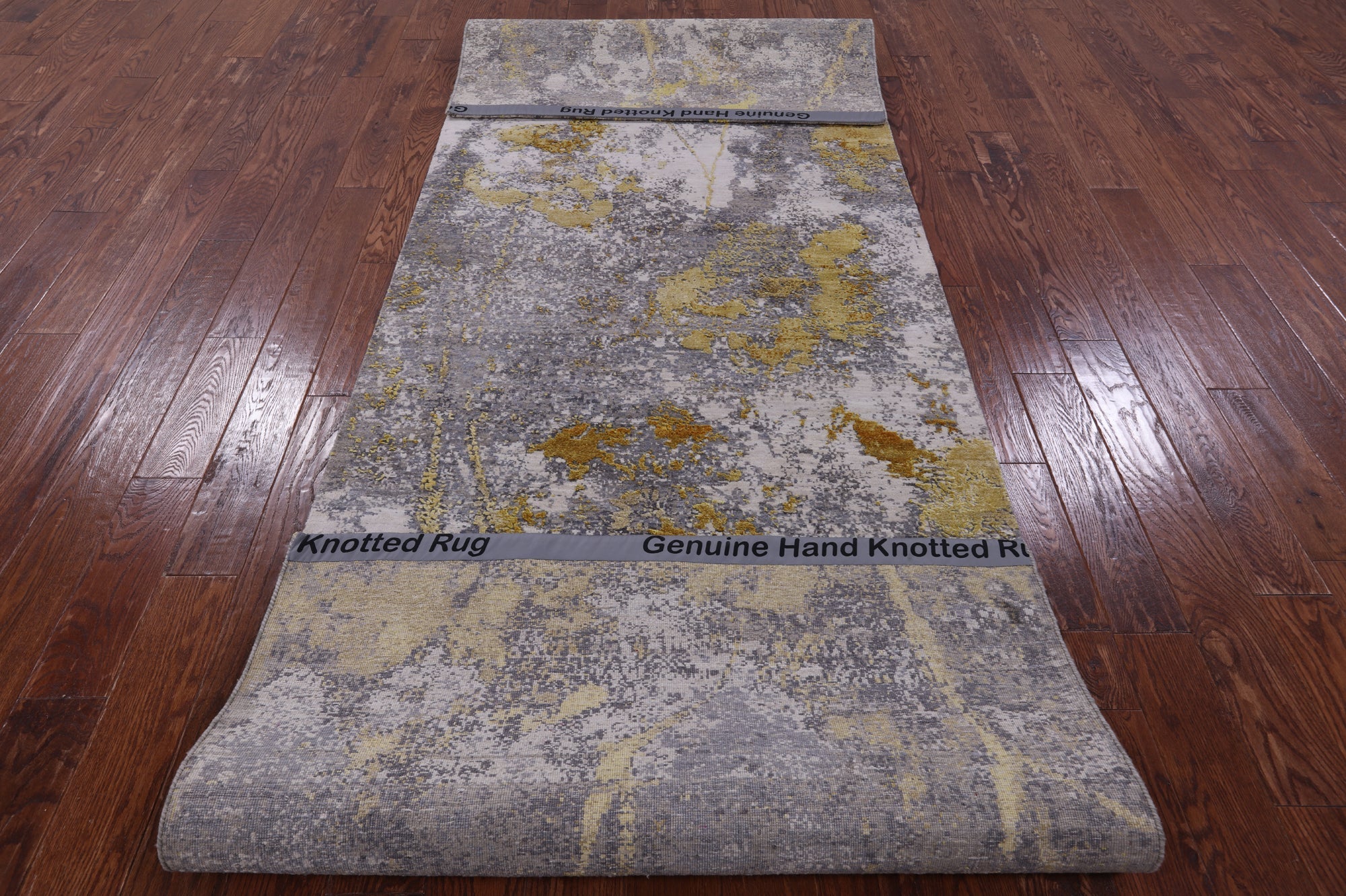 4' 0" X 12' 0" Hand Knotted Modern Wool & Silk Runner Rug - Q9064