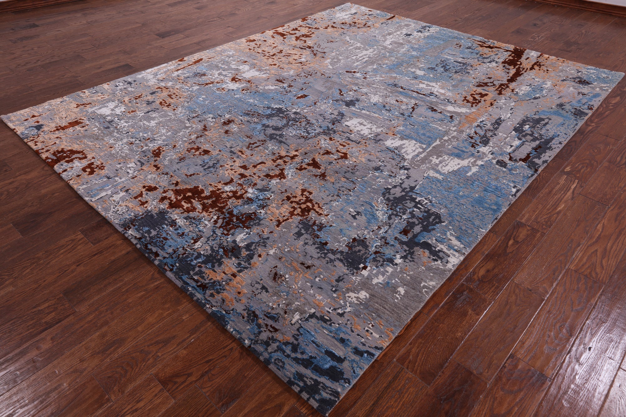 7' 11" X 10' 2" Hand-Knotted Wool & Silk Abstract Rug - Q6237