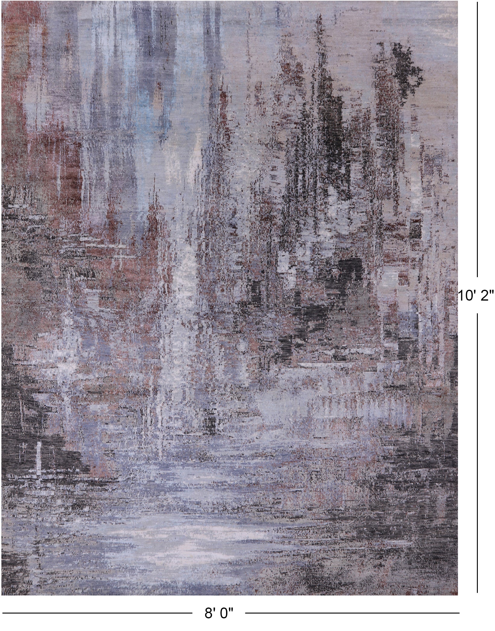 Hand Knotted Wool & Silk Abstract Rug 8' 0" X 10' 2" - Q8554 is backordered and will ship as soon as it is back in stock.