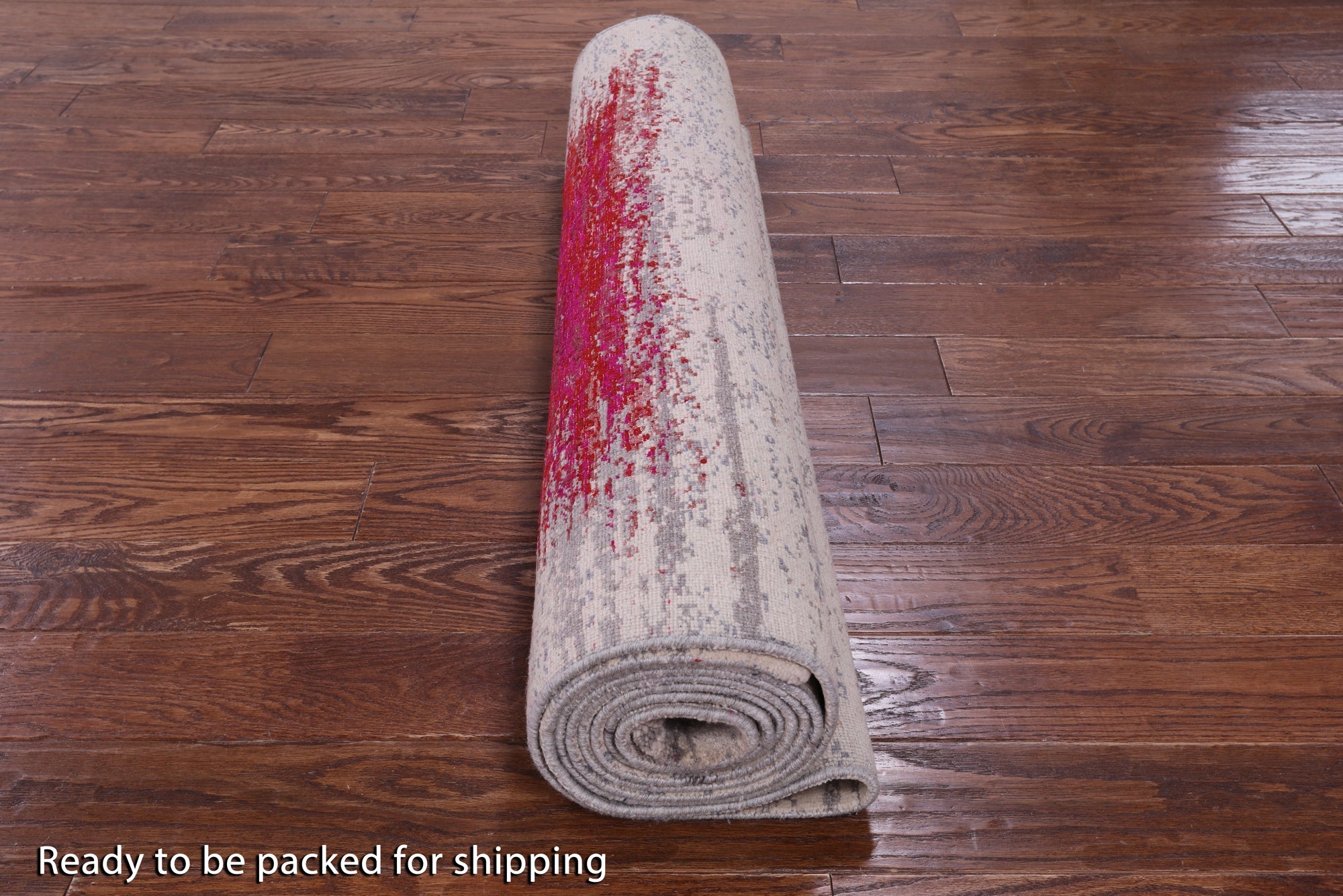 4' 0" X 12' 5" Hand-Knotted Wool & Silk Modern Runner Rug - Q9074