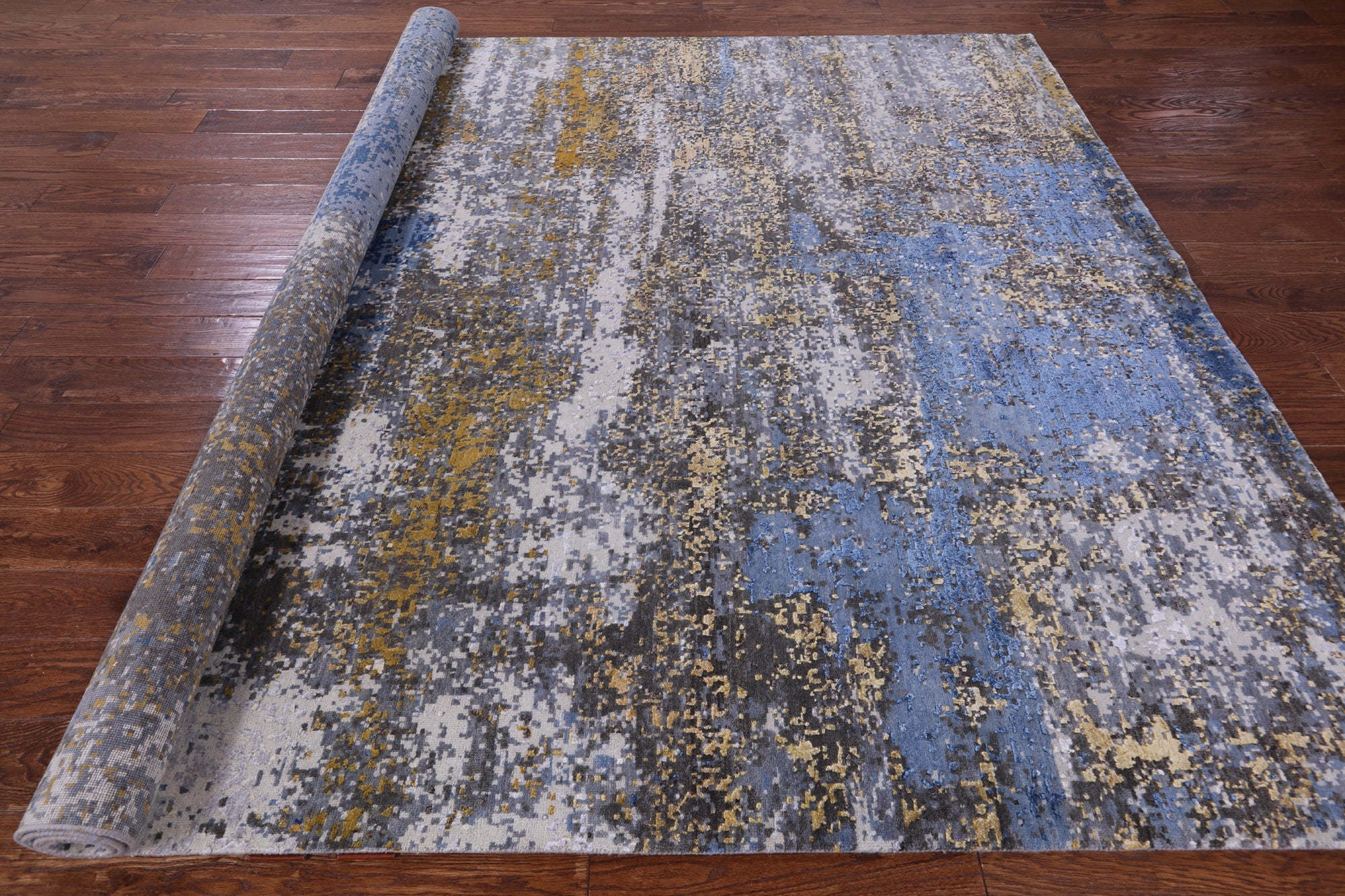 7' 11" X 10' 3" Handmade Abstract Wool & Silk Rug - Q13077
