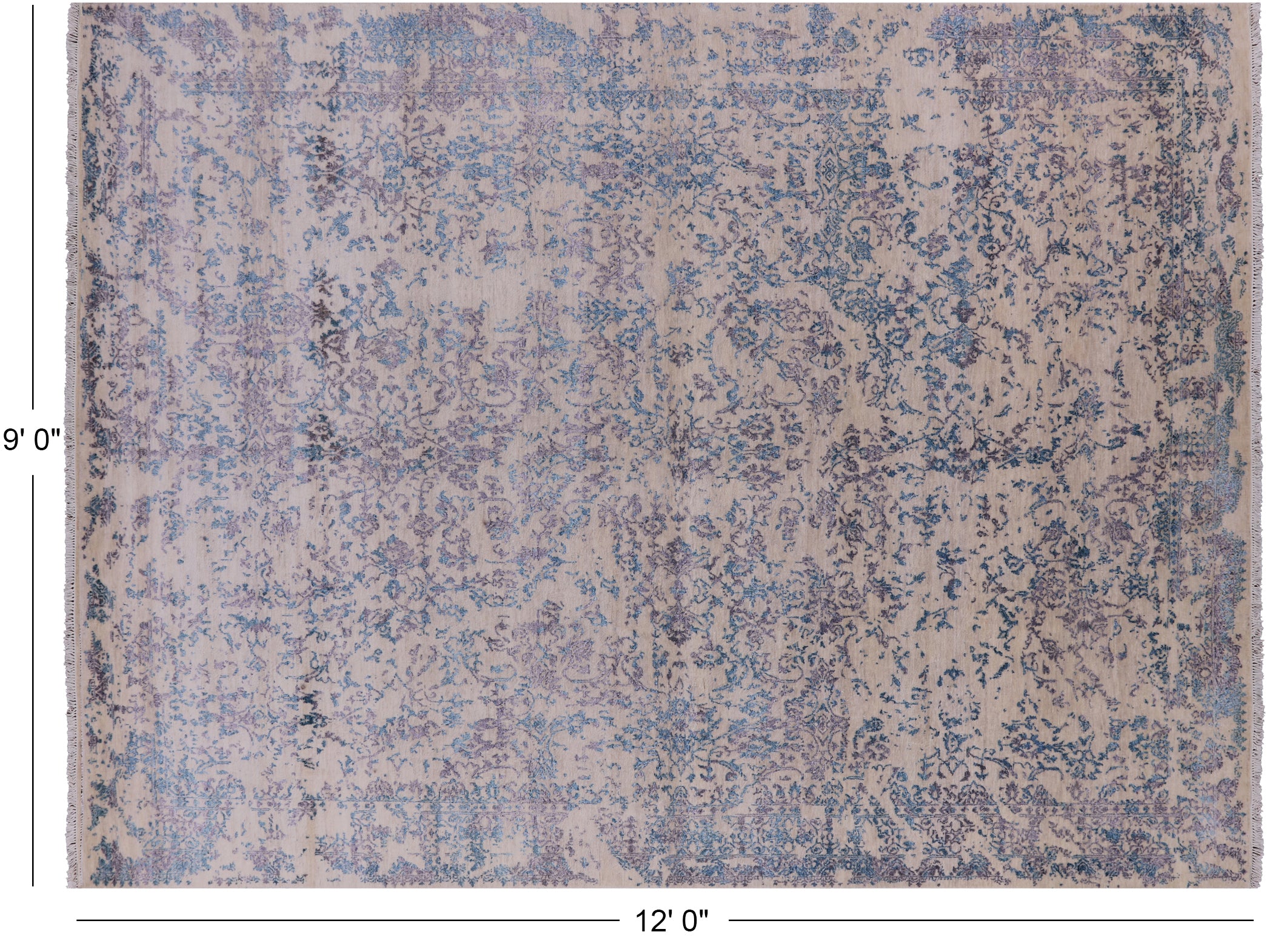 Ivory 9' 0" X 12' 0" Hand Knotted Persian Wool & Silk Area Rug - Q3976