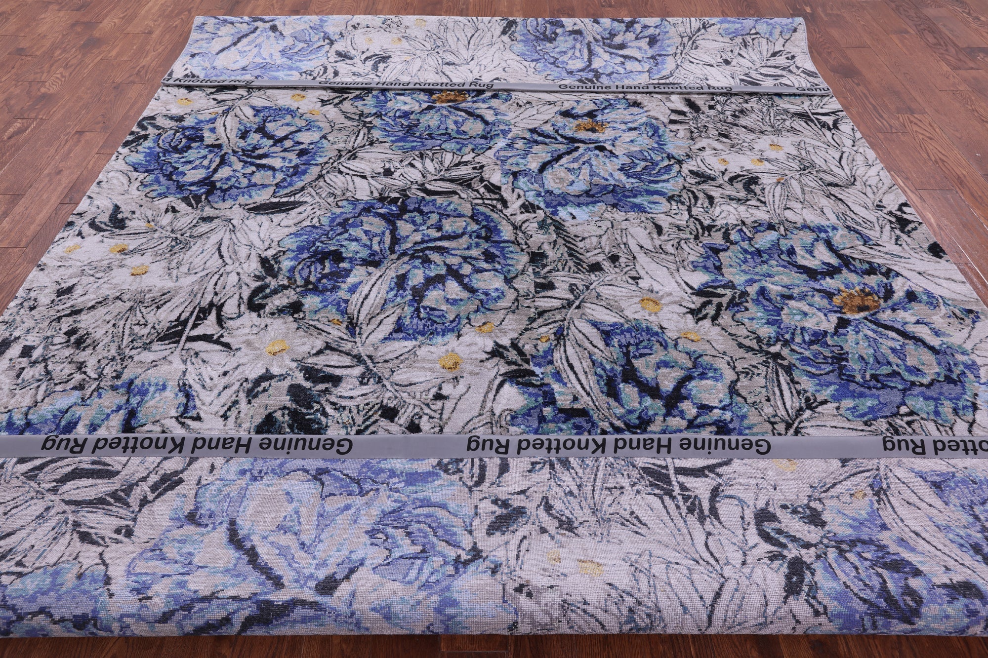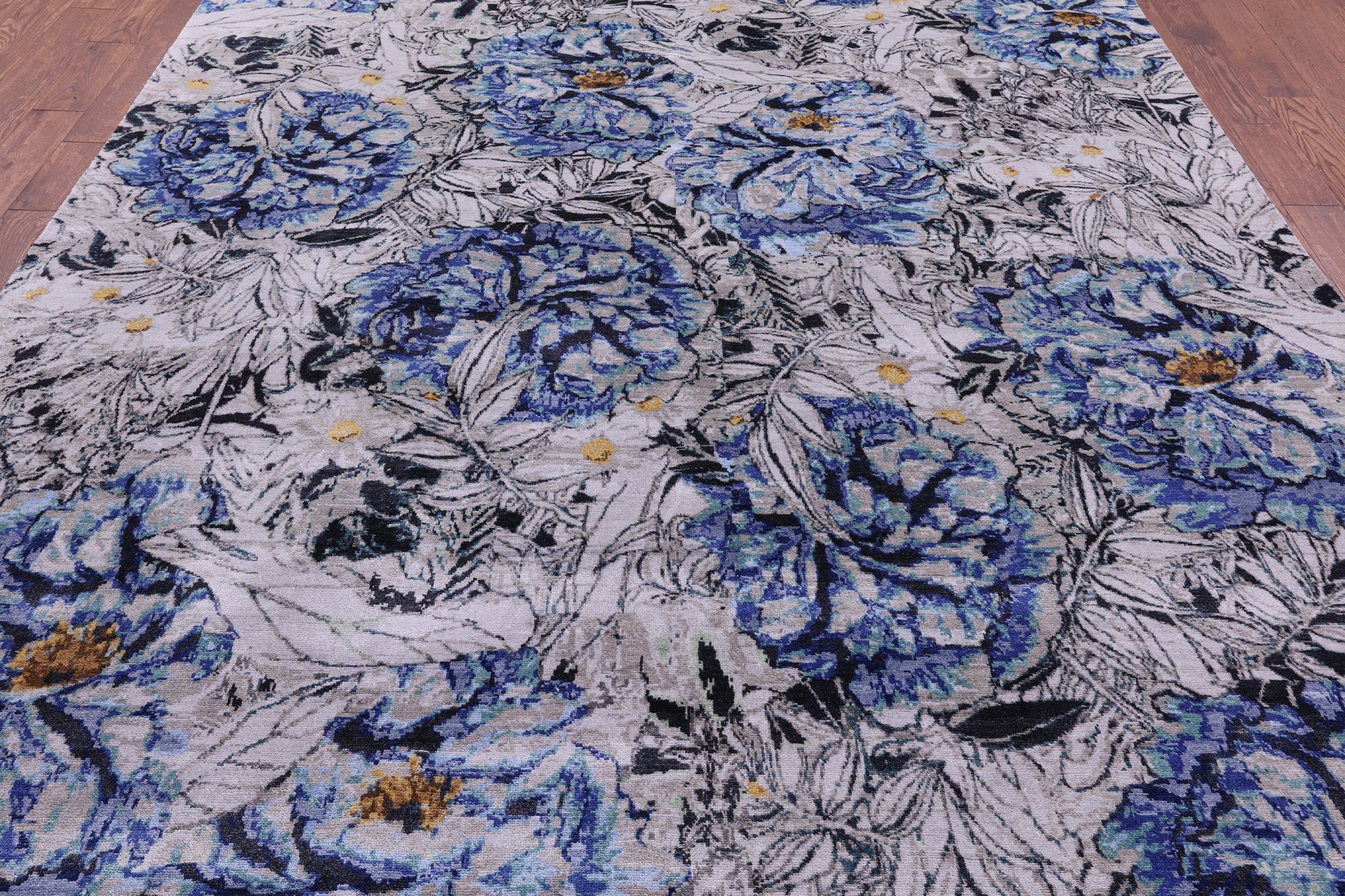 8' 9" X 12' 2" Modern Hand Knotted Silk Rug - Q11598