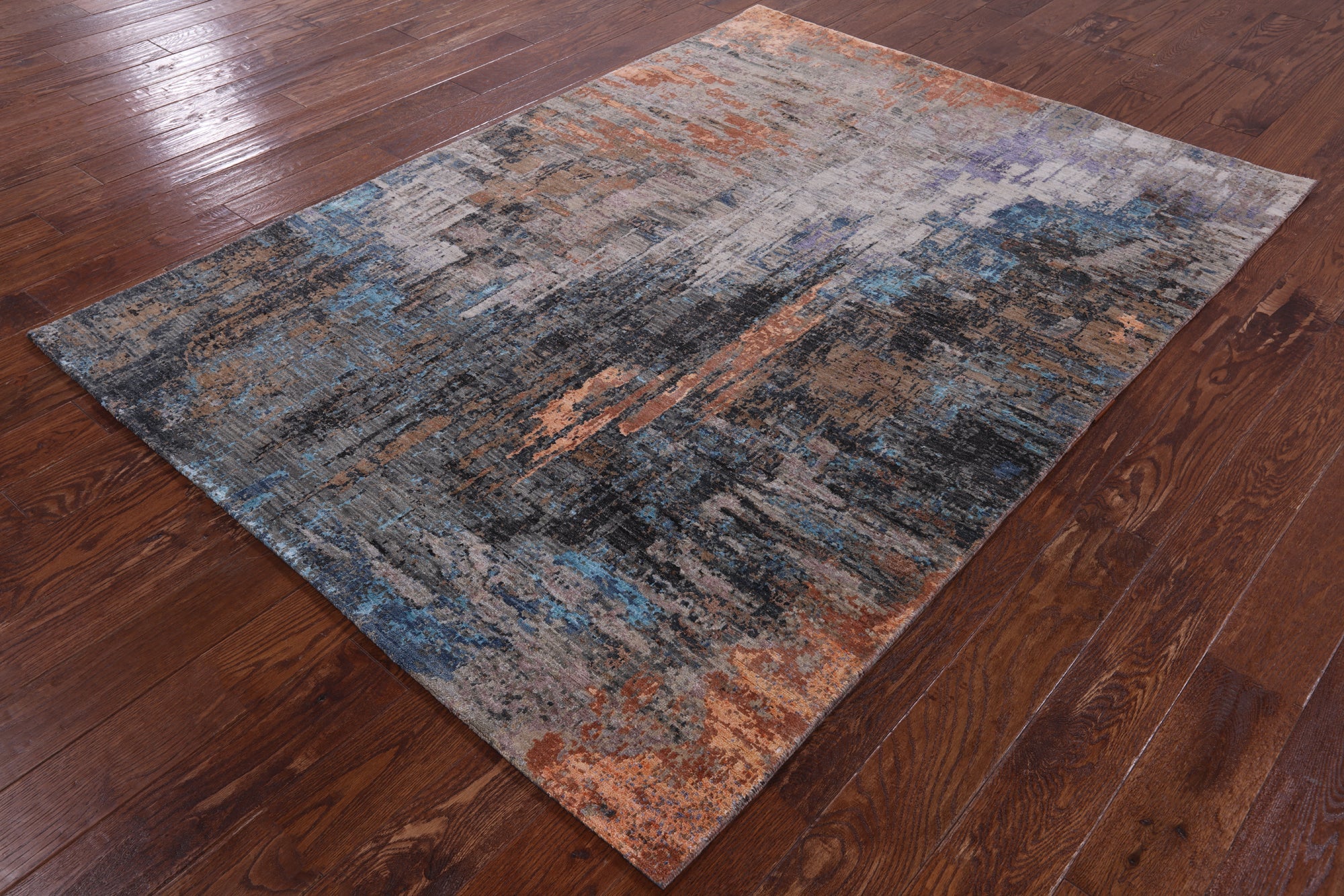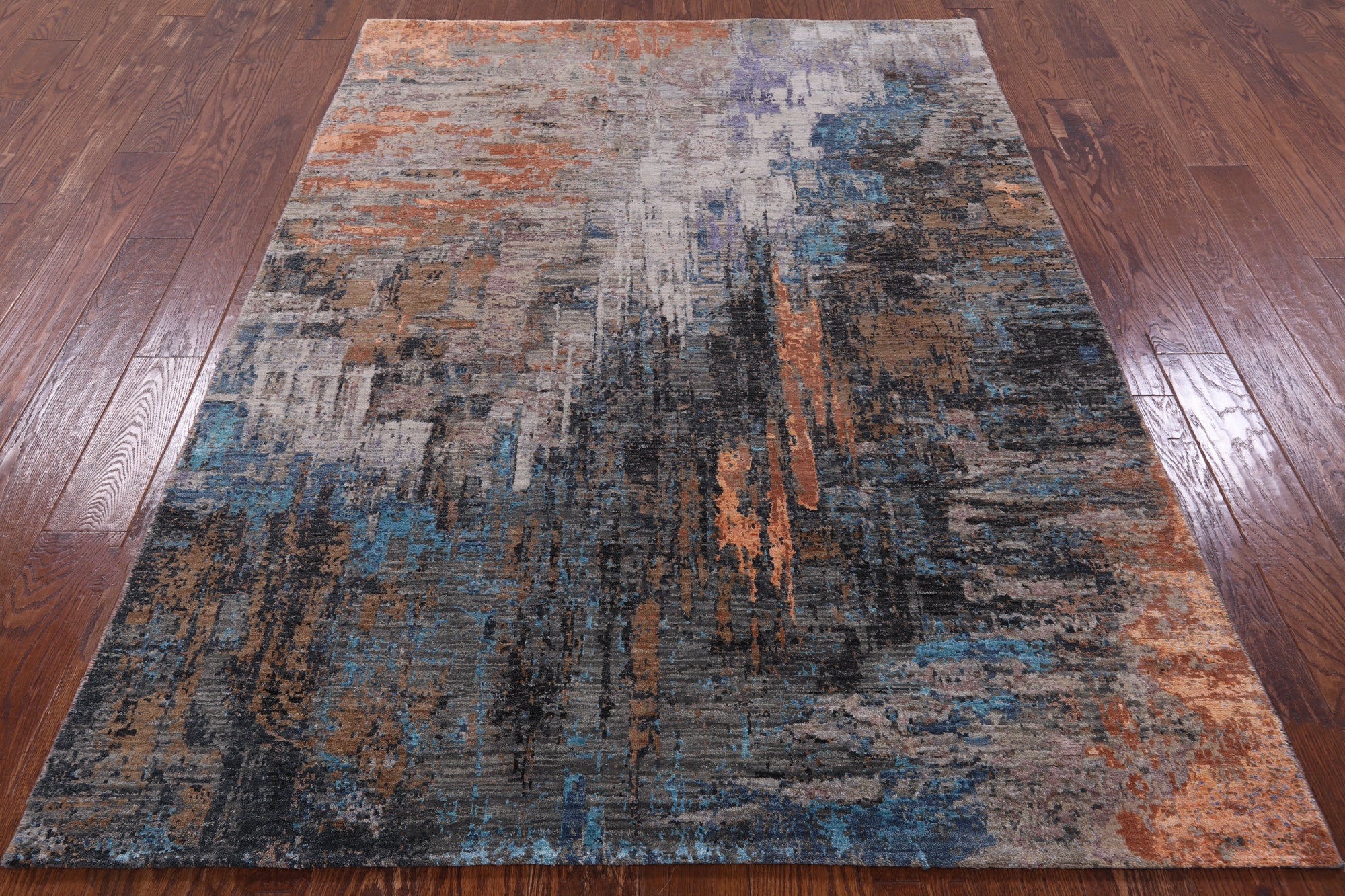5' 1" X 6' 11" Modern Handmade Wool & Silk Rug - Q8561