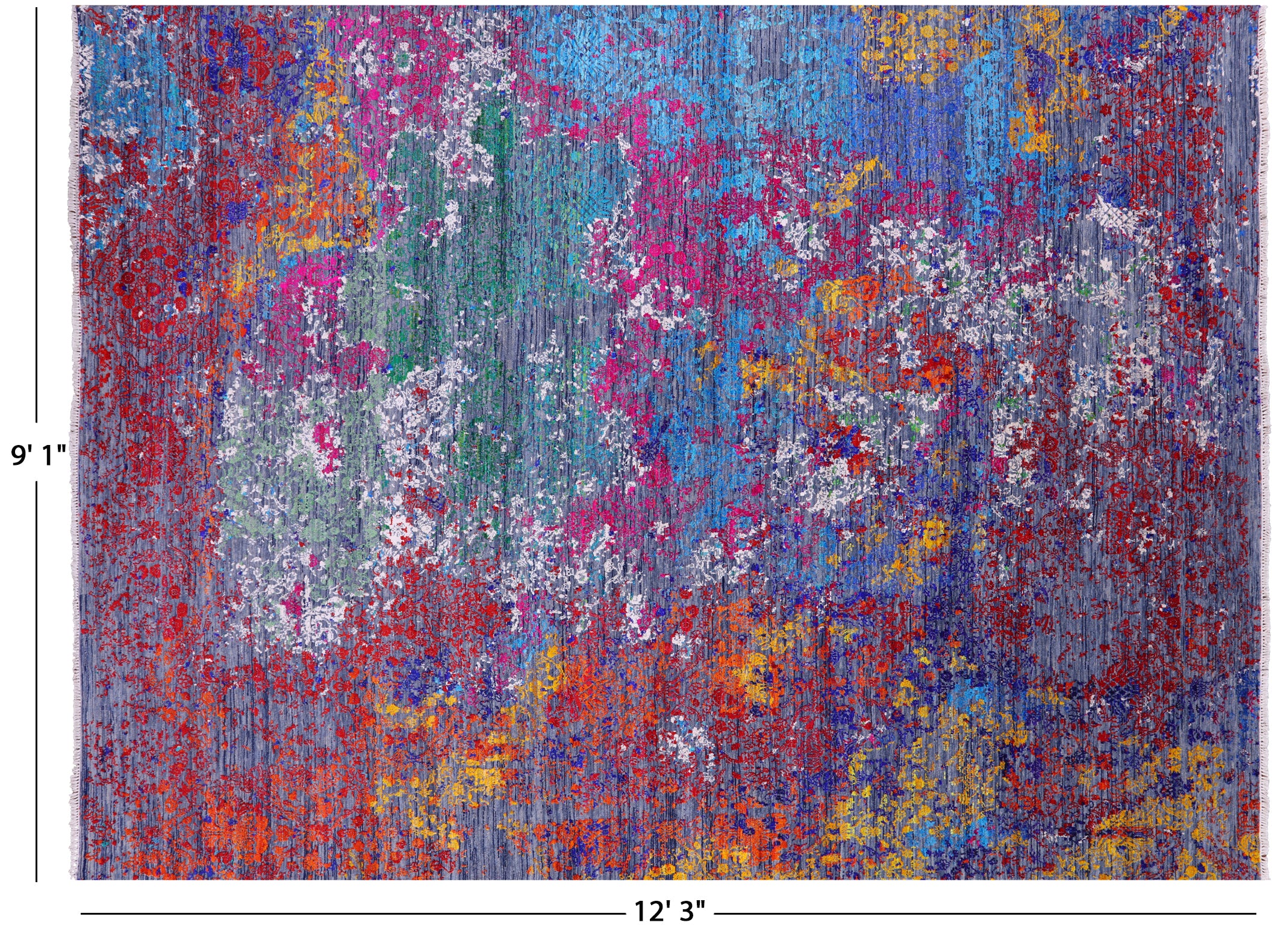 Modern Wool & Silk Hand Knotted Rug 9' 1" X 12' 3" - Q13483
