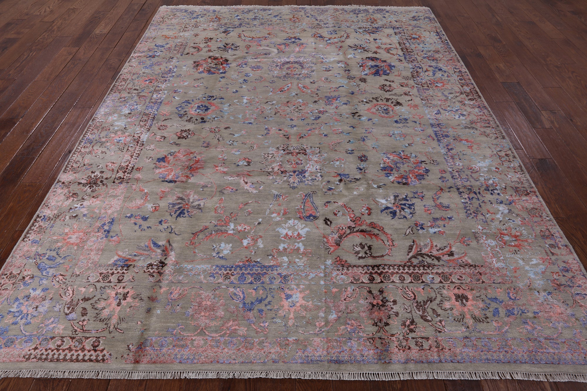8' 1" X 10' 2" Persian Wool & Silk Hand Knotted Rug - P8507