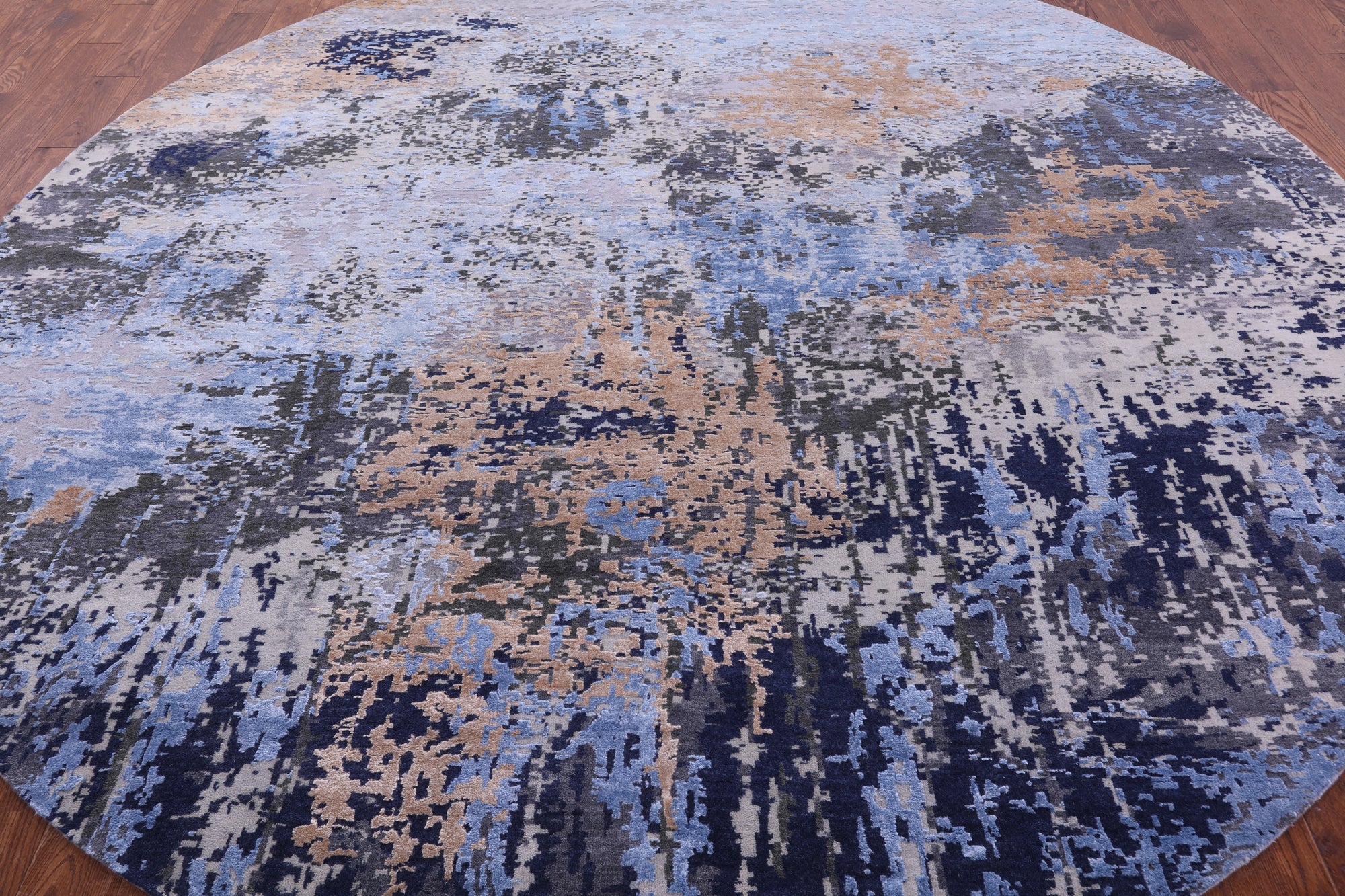 10' Round Wool & Silk Abstract Hand Knotted Rug - Q19887