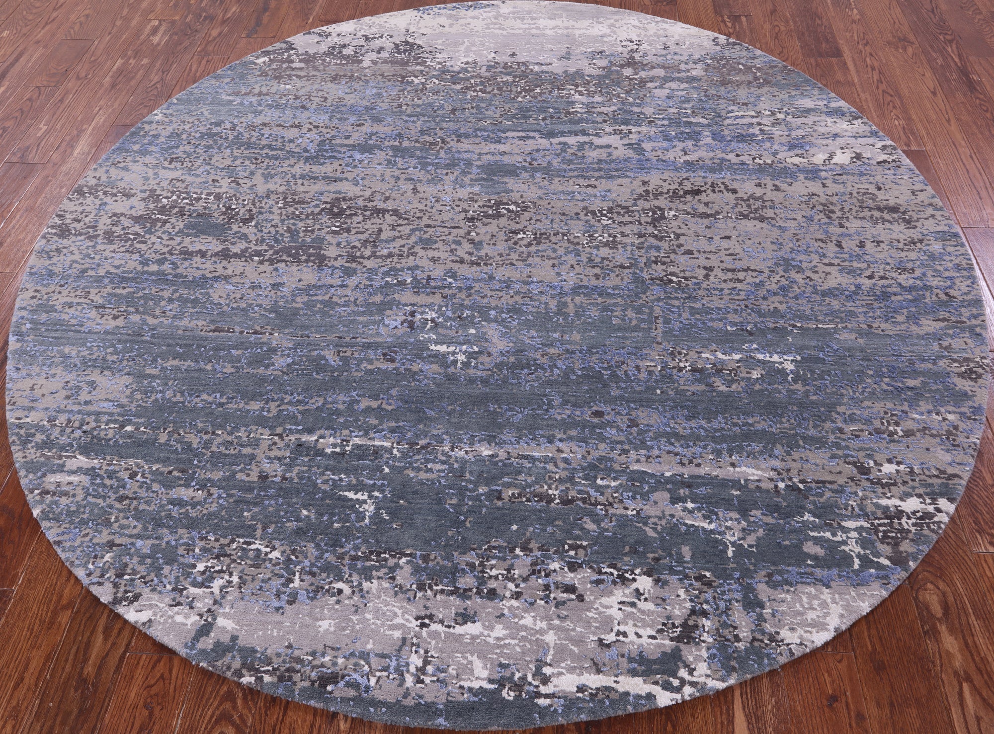 8' Round Wool & Silk Modern Abstract Hand Knotted Rug - Q20140
