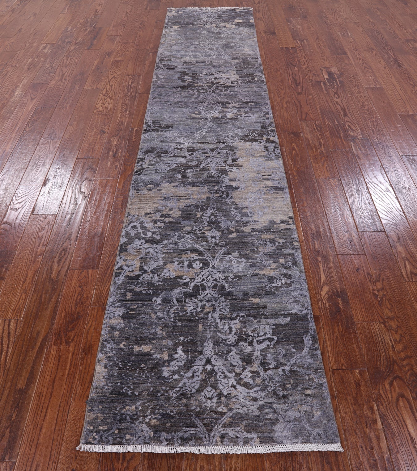 Runner Wool & Silk Modern Hand-Knotted Rug 2' 7" X 11' 10" - Q10333