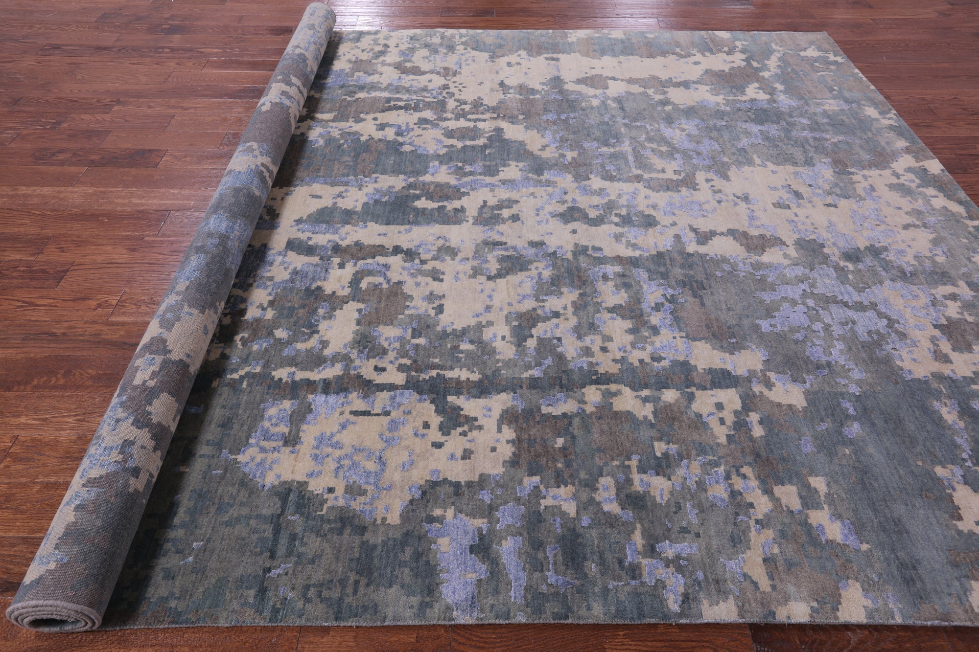 9' 2" X 12' 1" Wool & Silk Abstract Hand Knotted Rug - Q20167