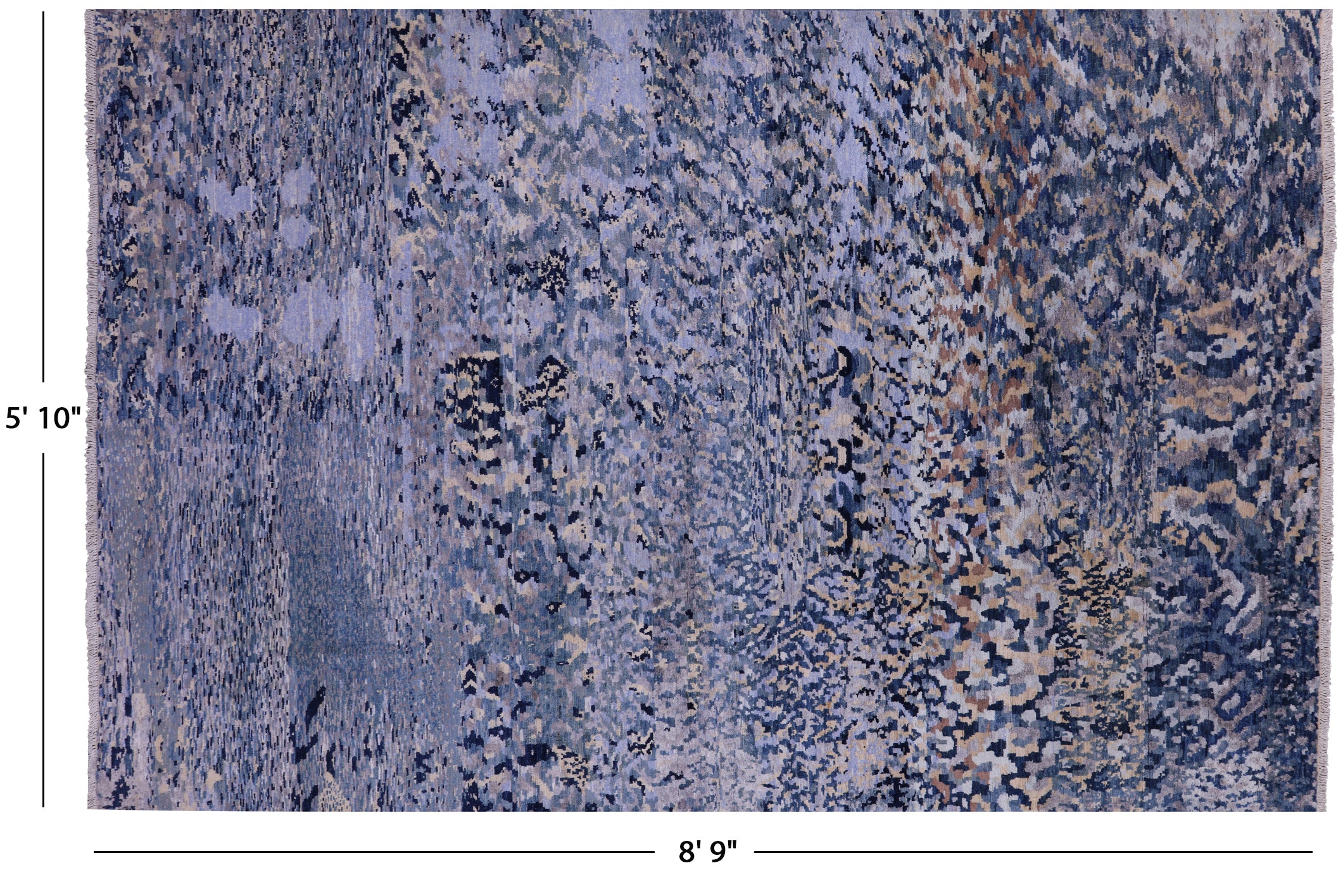 5' 10" X 8' 9" Wool & Silk Hand Knotted Abstract Rug - Q10325